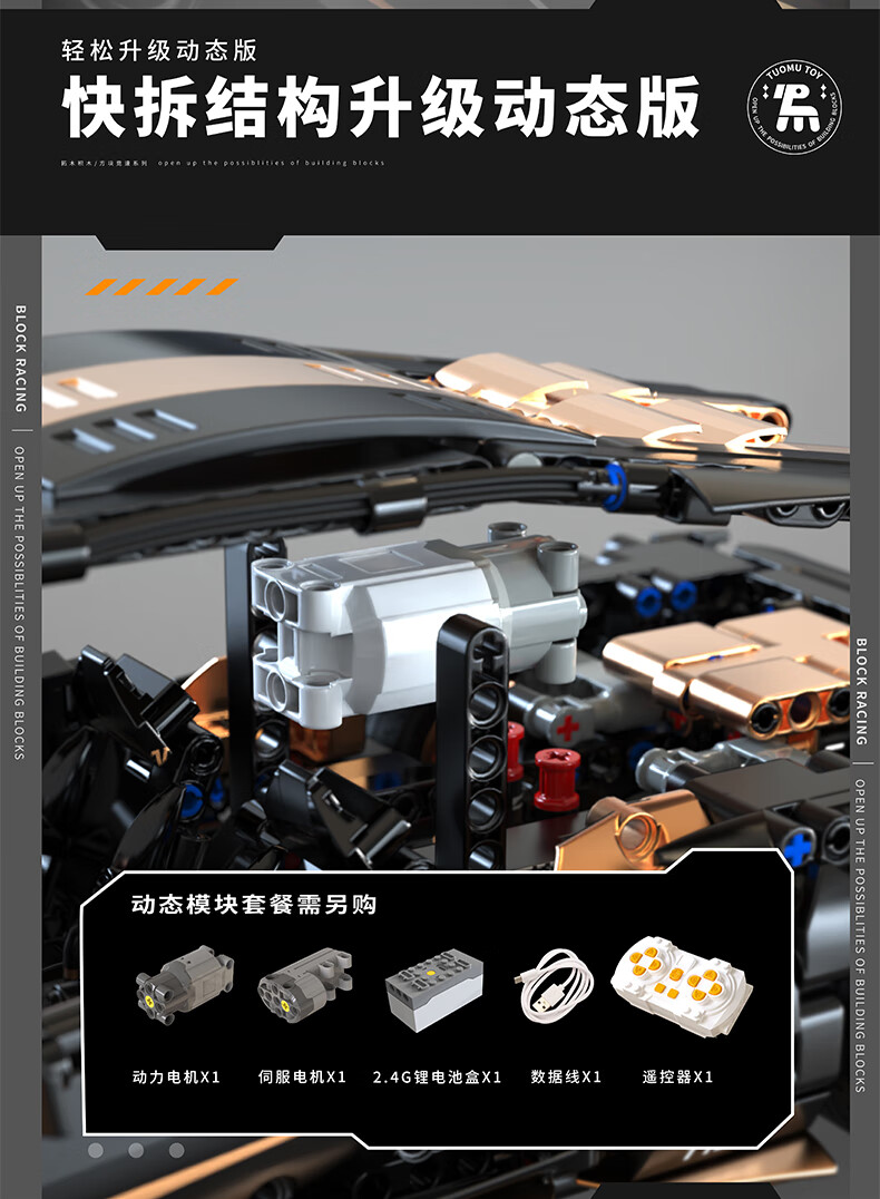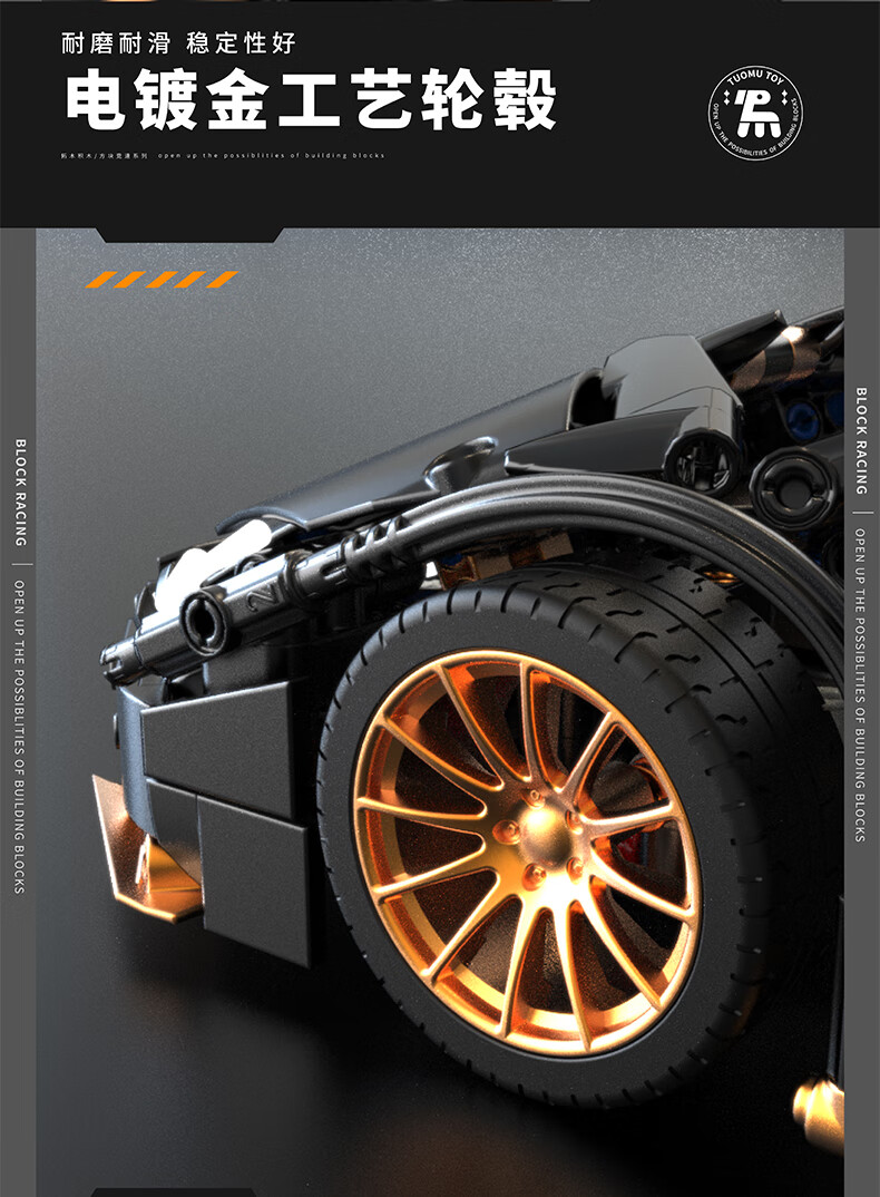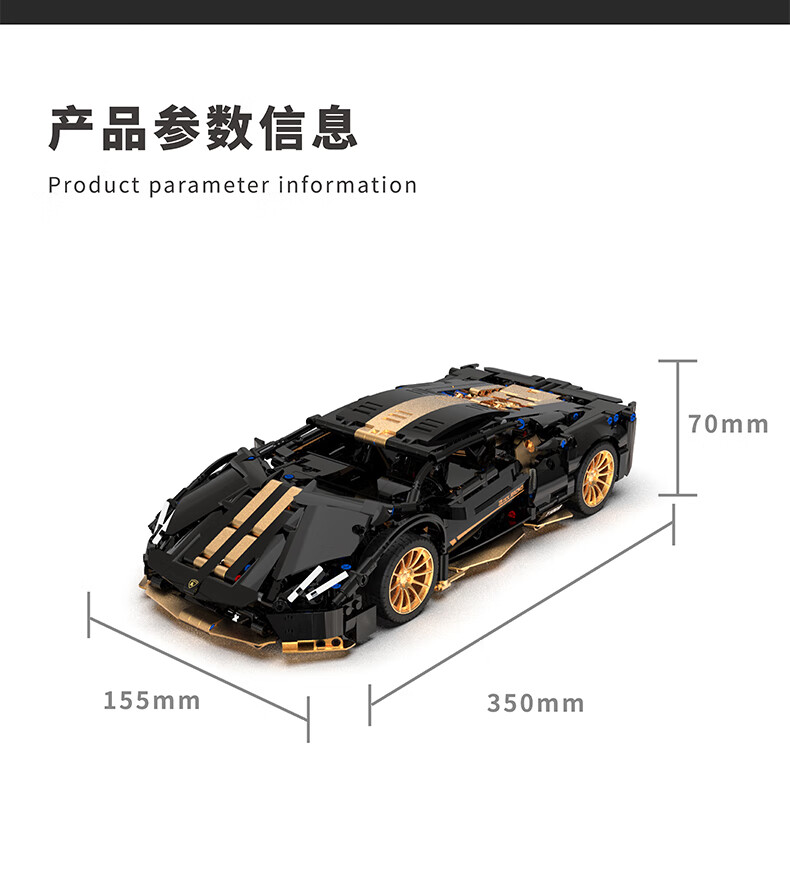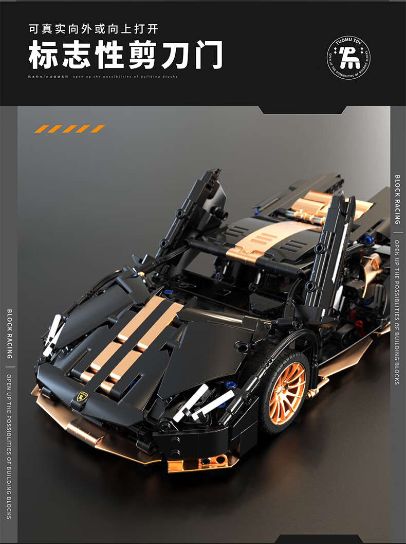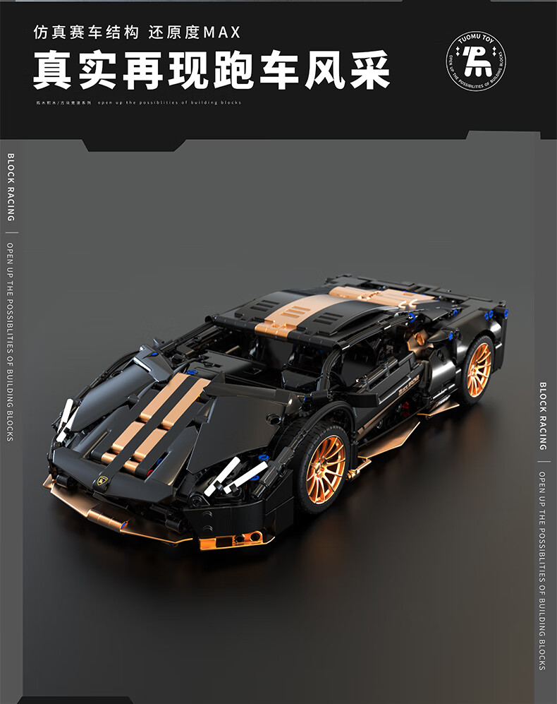 Lamborghini building blocks Bugatti remote control sports car boy racing assembly toy car model gift T1003 black gold Lambo-static version