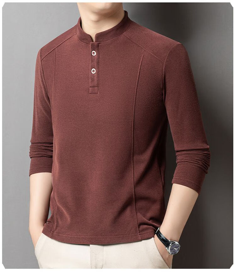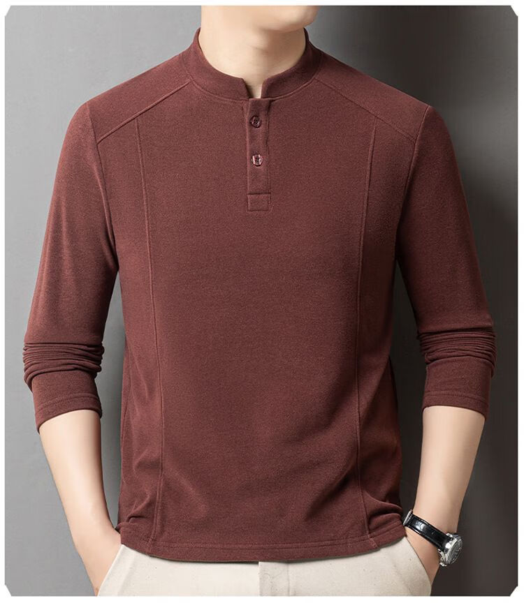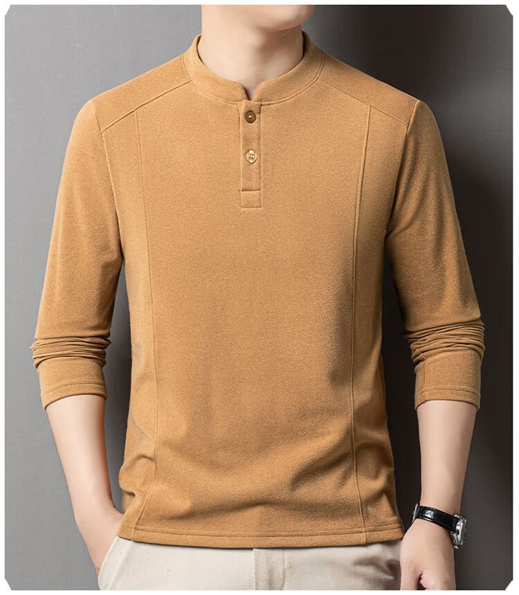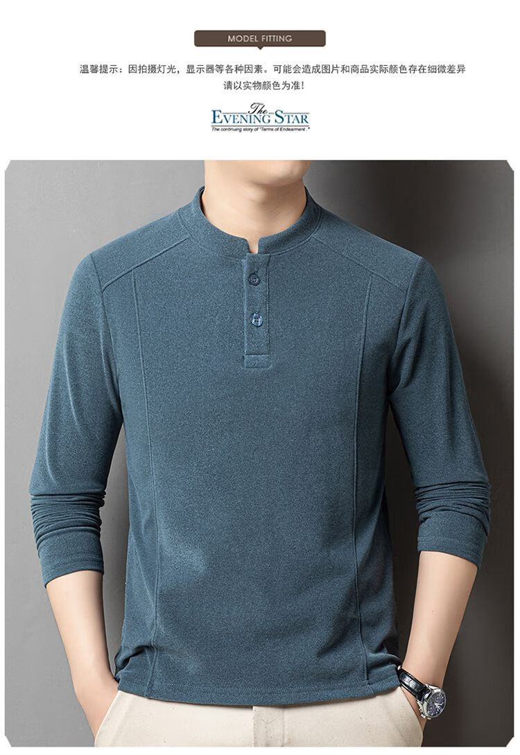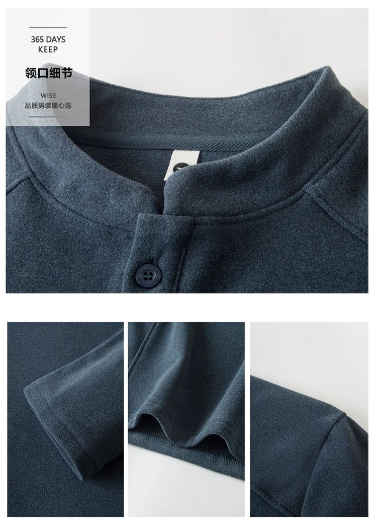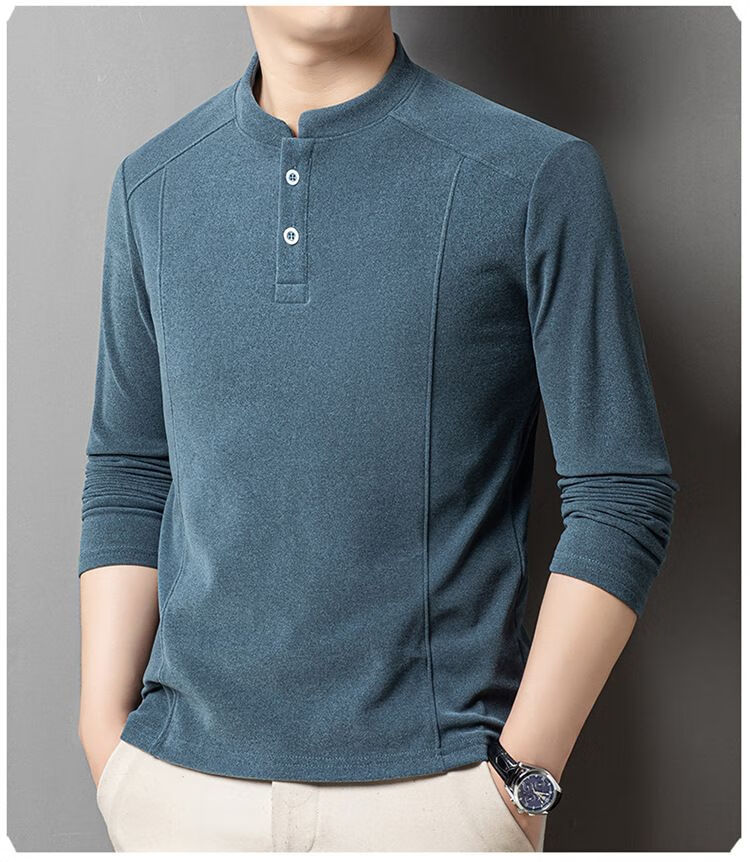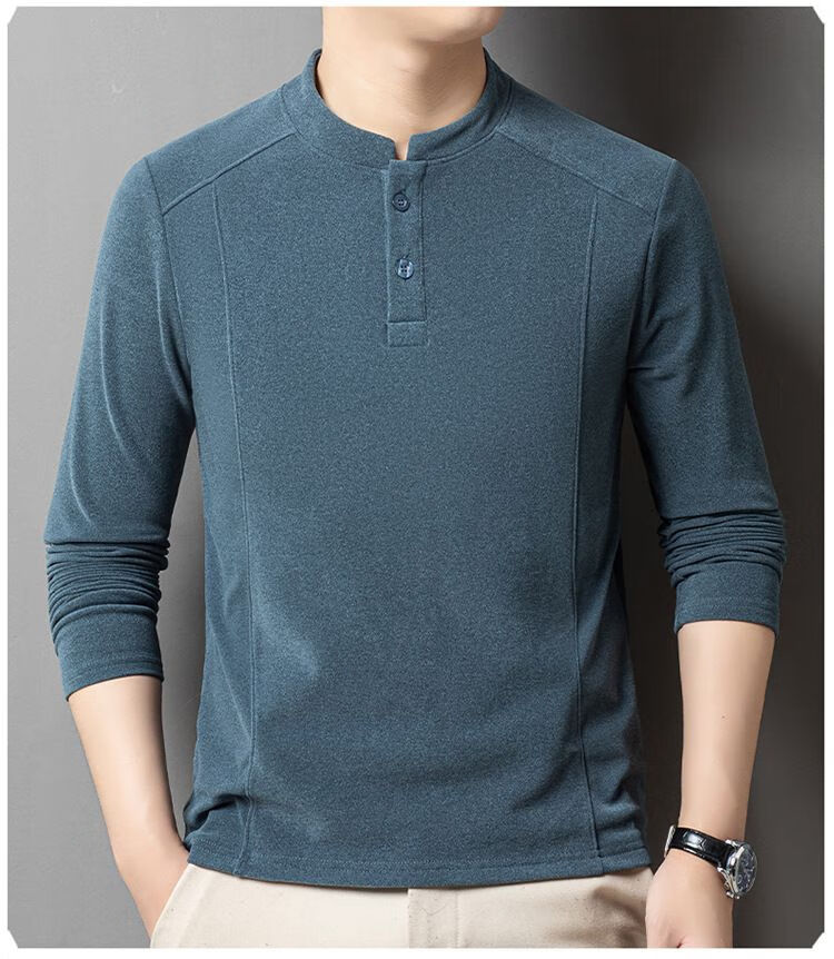 AX Armani broken code 2026 autumn and winter double-sided German velvet bottoming shirt men's Henry collar trendy versatile long-sleeved warm T blue gray M