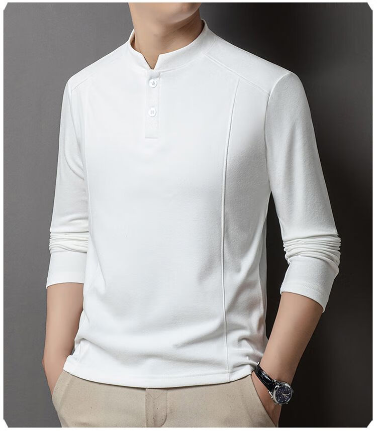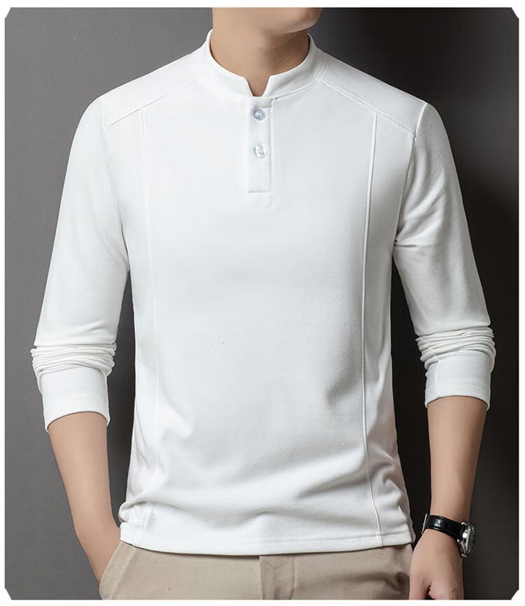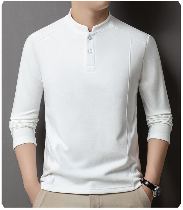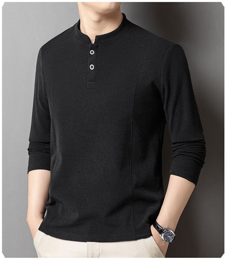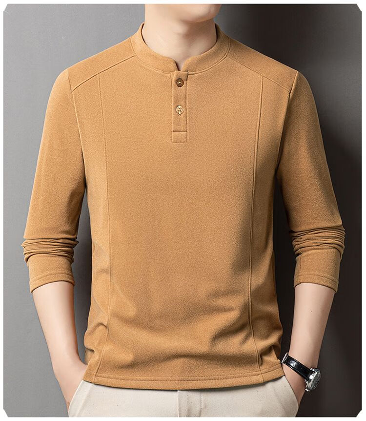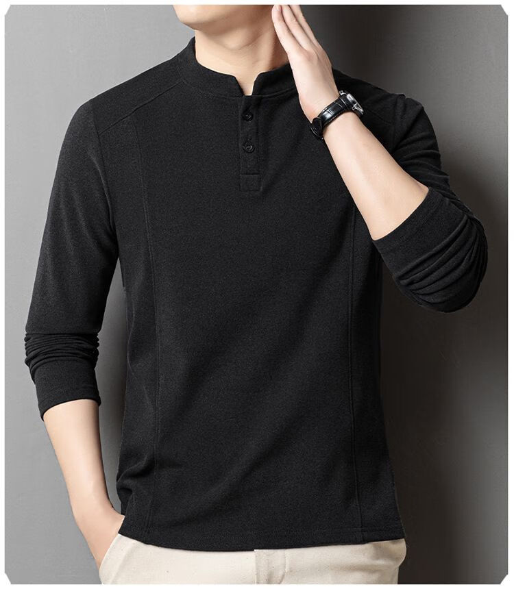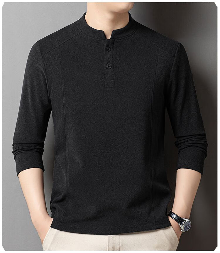 AX Armani broken code 2026 autumn and winter double-sided German velvet bottoming shirt men's Henry collar trendy versatile long-sleeved warm T blue gray M