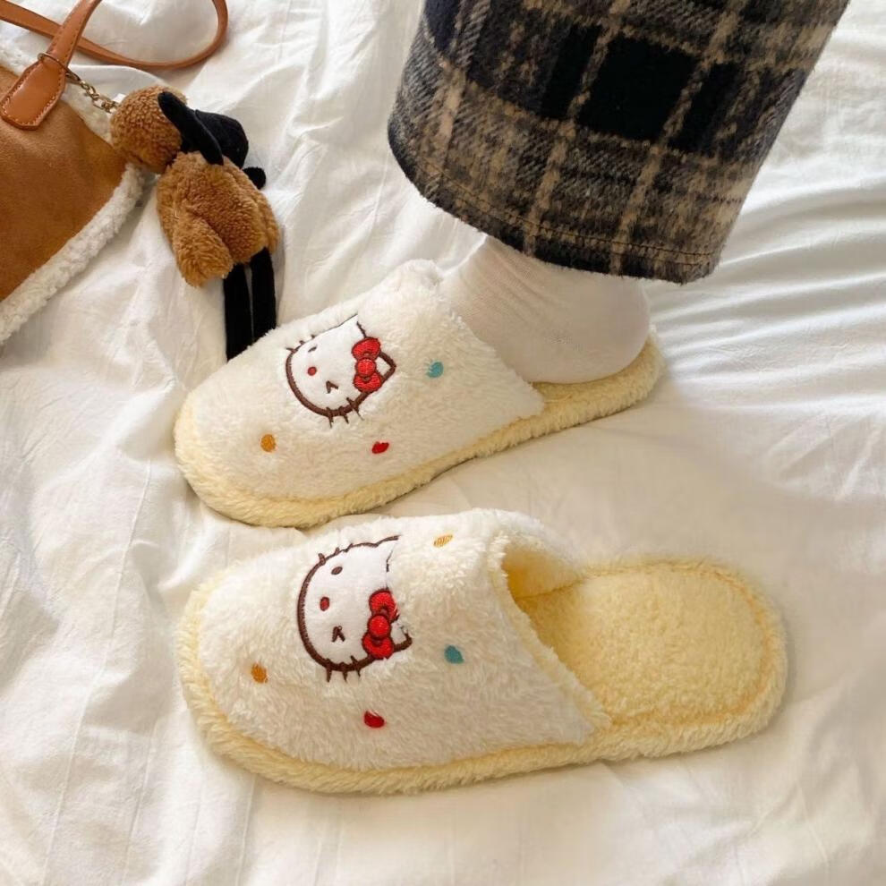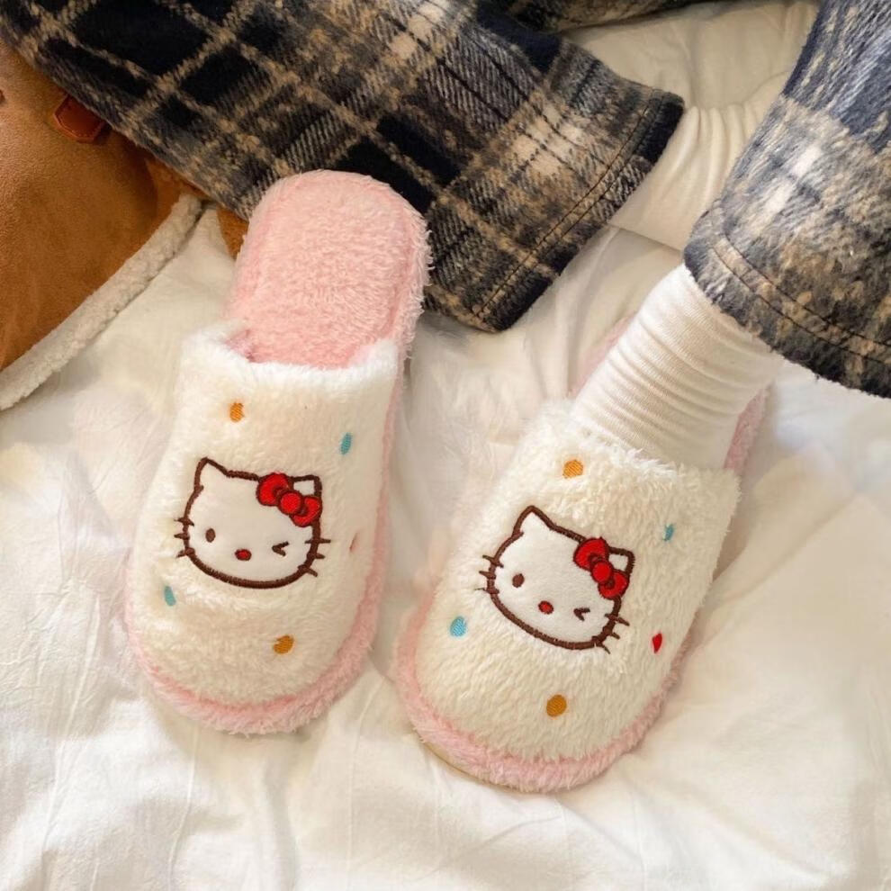 Cartoon fabric cotton slippers for spring, autumn and winter baby indoor home soft sole non-slip fashion versatile toe-toe cotton slippers for women pink 40.5 40-41