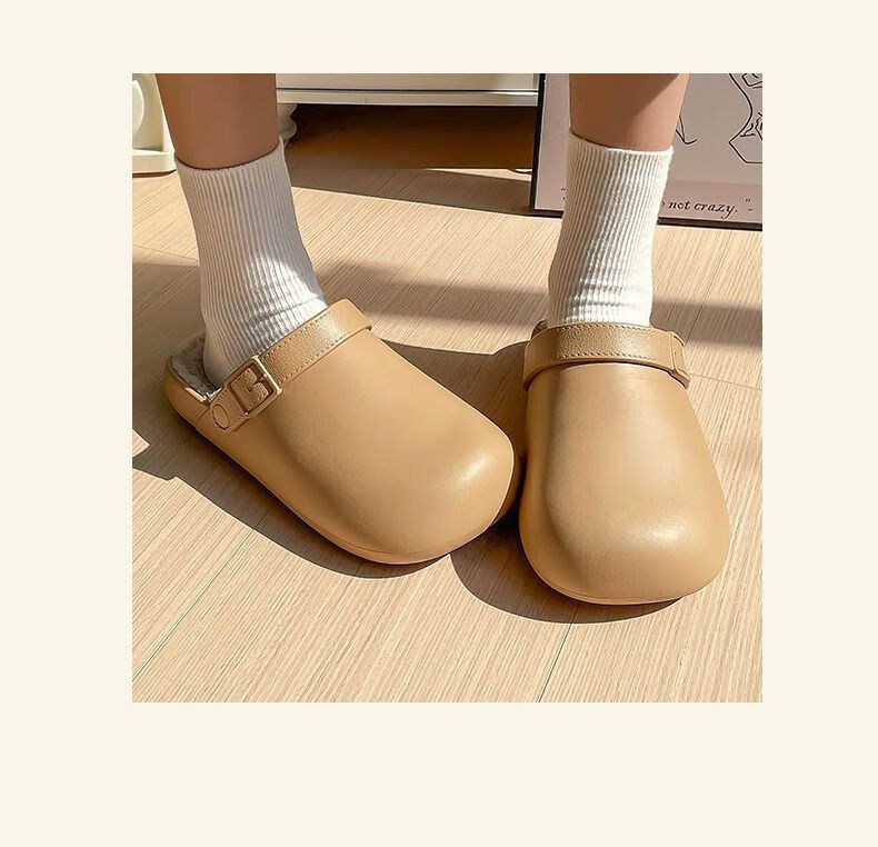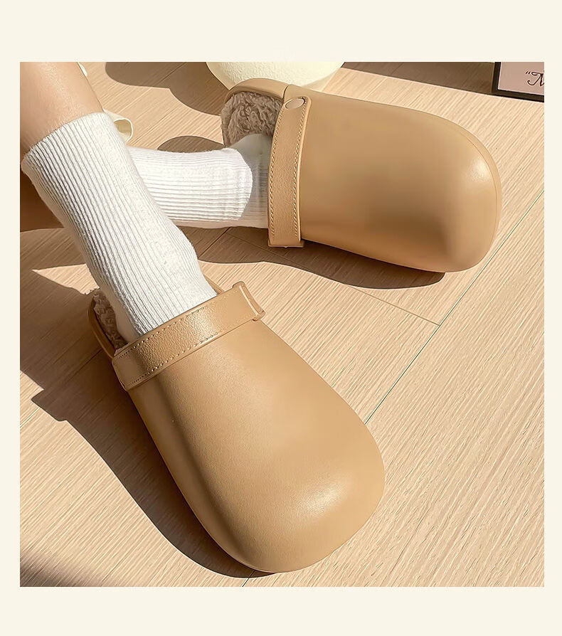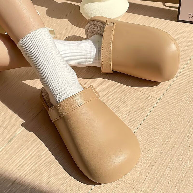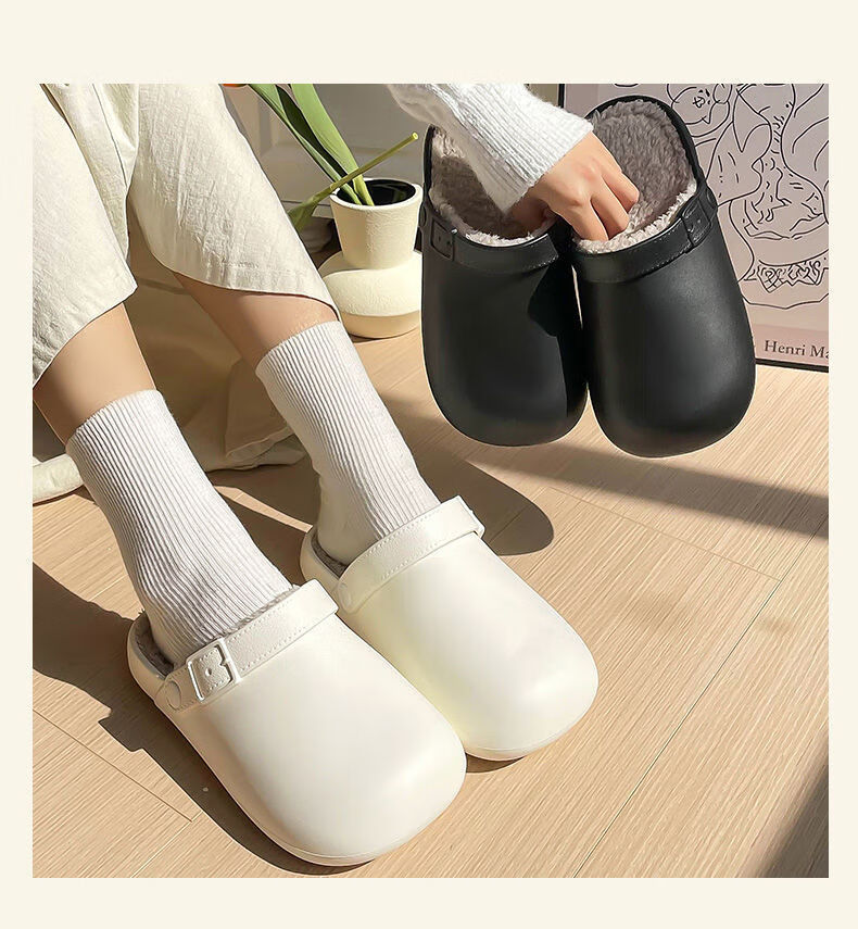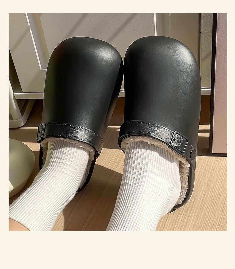 Waterproof cotton slippers for men and women in autumn and winter 2025 new home indoor thick-soled non-slip baby warm Birkenstock shoes black-thick velvet toe cotton slippers Shirley Mei 40.5 40-41 One size too small