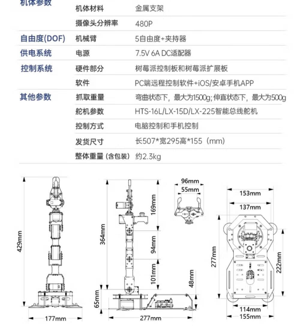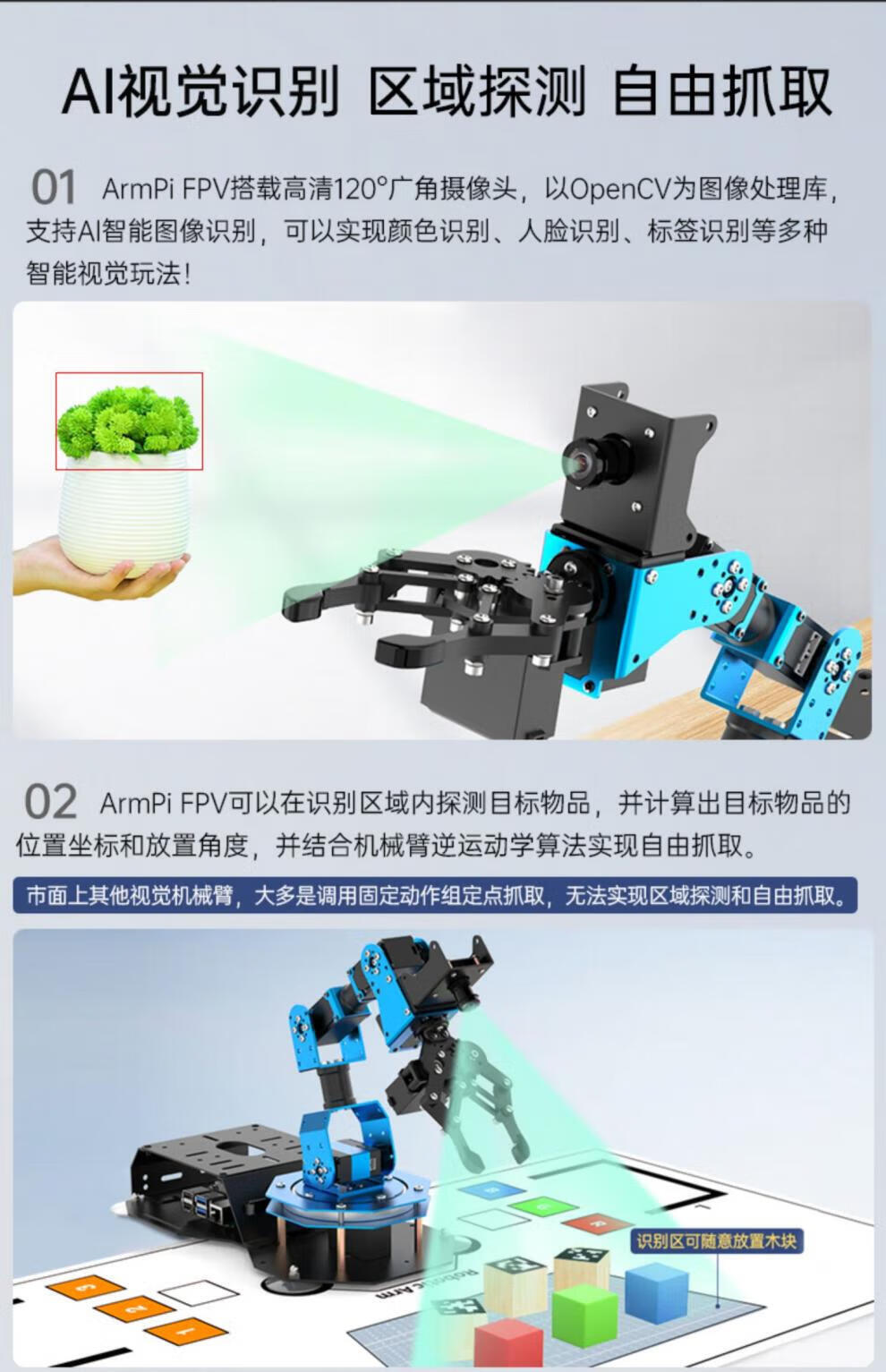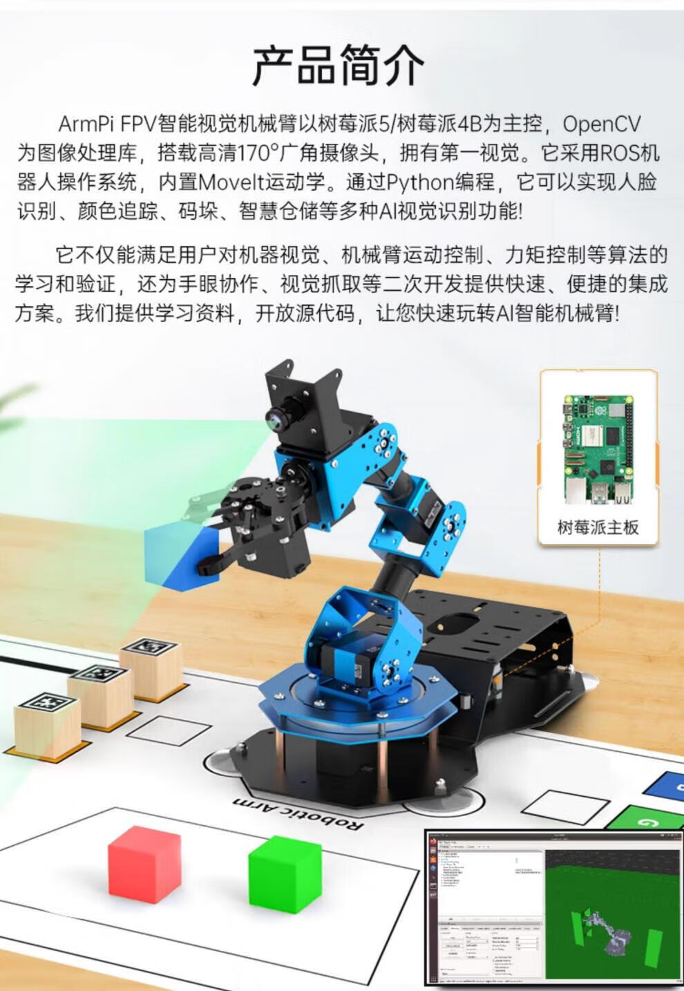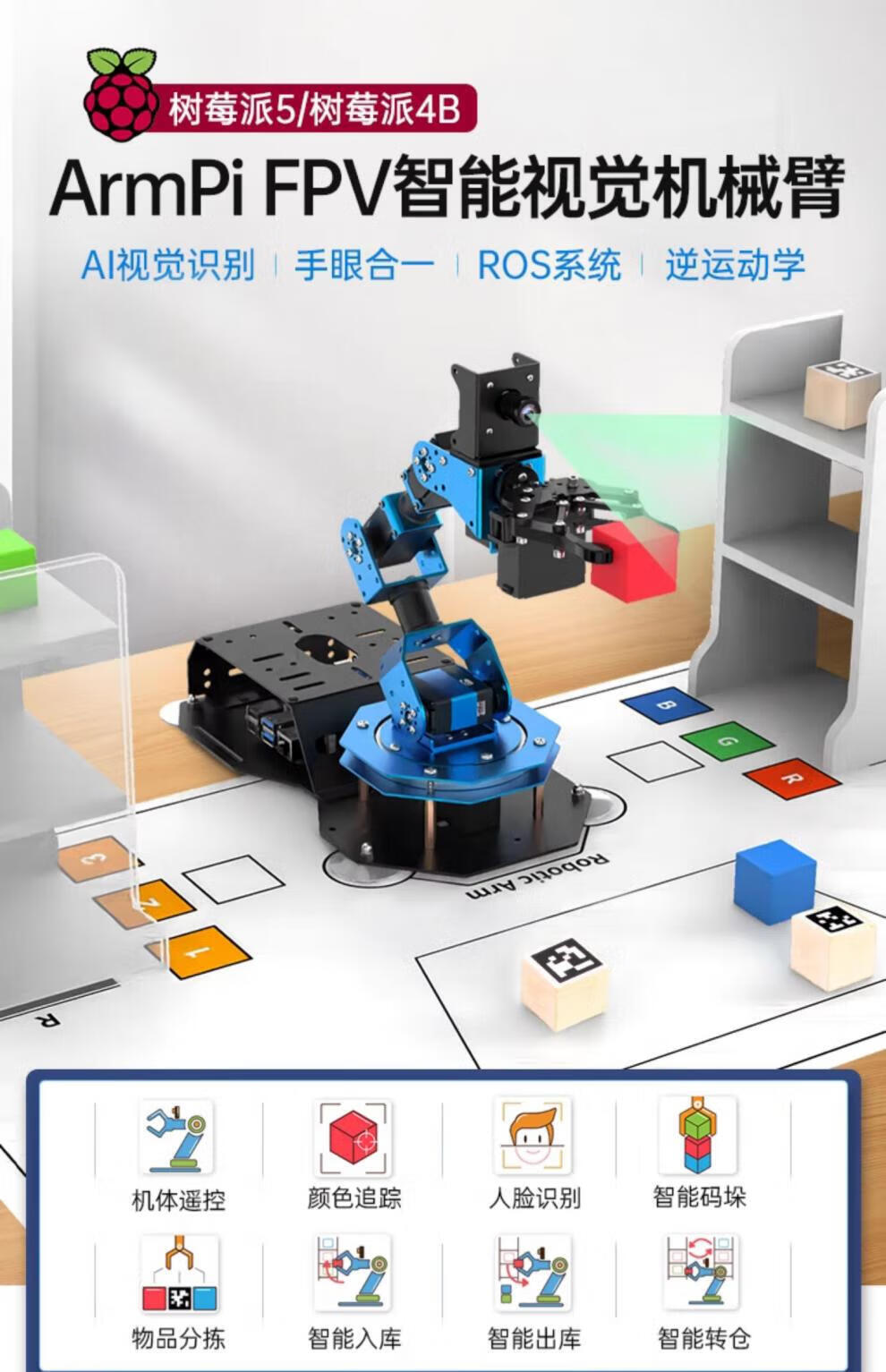 Huaner Raspberry Pi 4B/5 robotic arm ArmPi-FPV visual recognition palletizing Python programmable ROS electric conveyor belt no motherboard no SD card