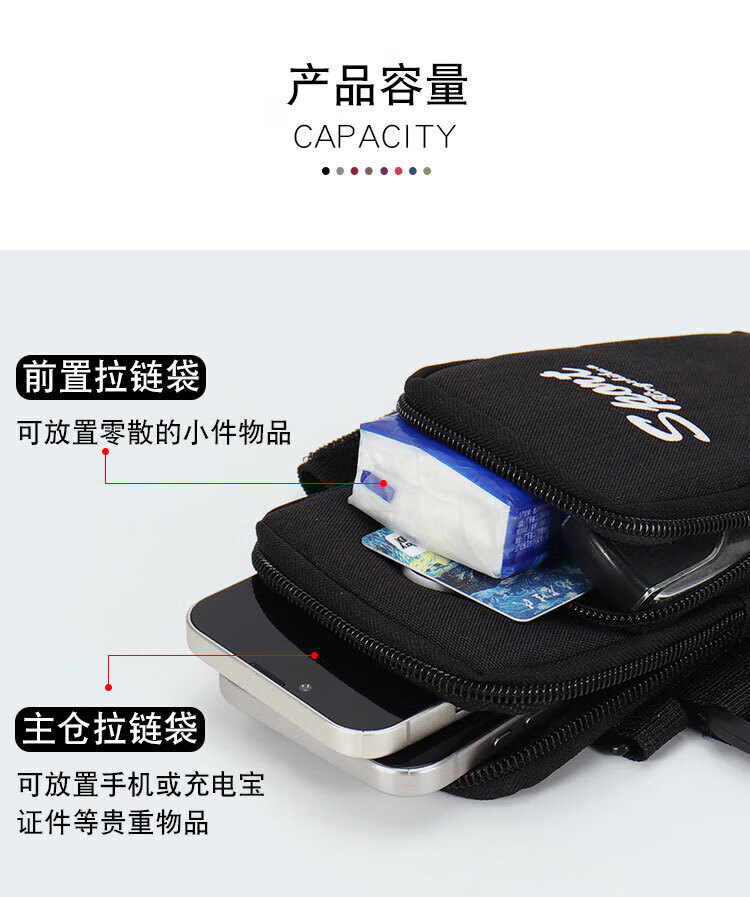 Arm bag for men and women running sports mobile phone bag wrist bag arm bag arm bag mobile phone bag outdoor equipment fitness black basic version two layers 7.2 inches shoulderless
