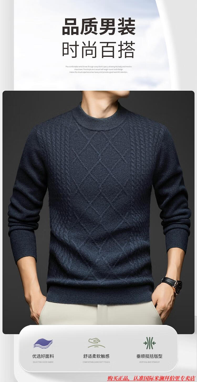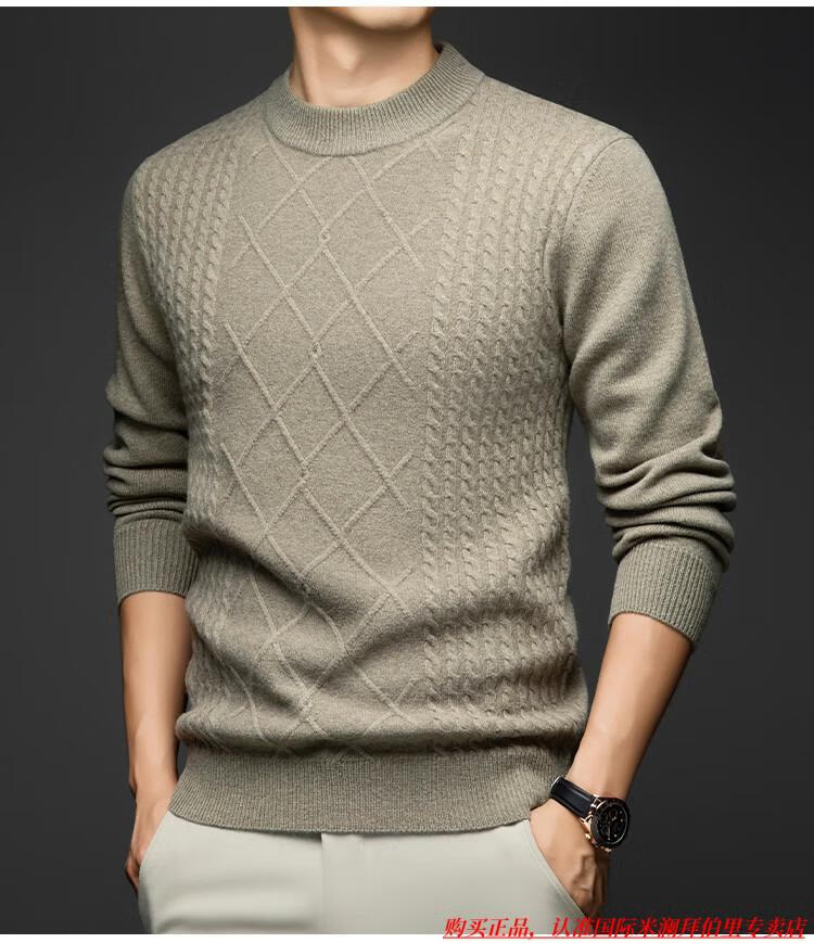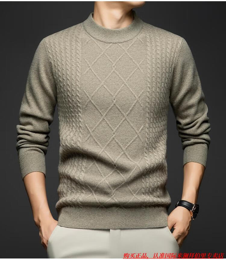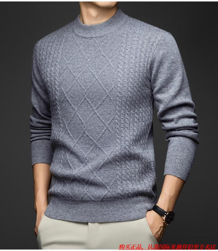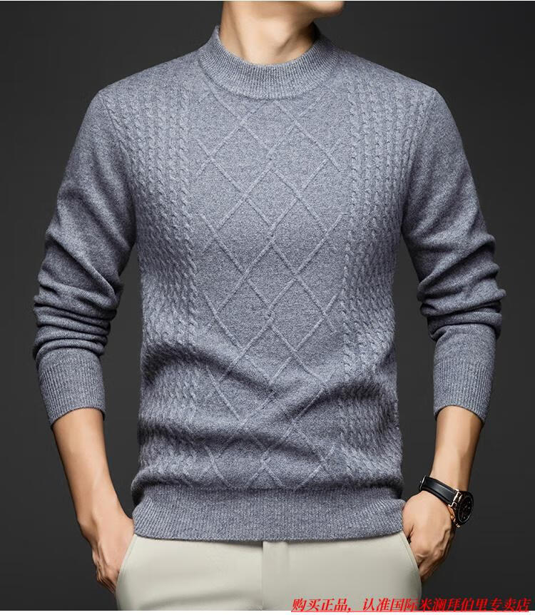 Internacional Milán otoño nuevo jersey suéter de lana completo jacquard medio cuello alto suéter de lana suéter casual engrosado de mediana edad para hombres gris claro XL adecuado para 130-155 Jin Jin equivale a 0,5 kg