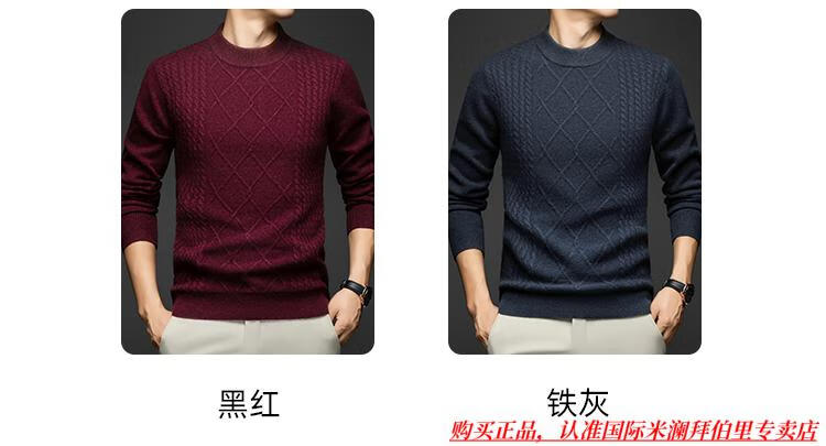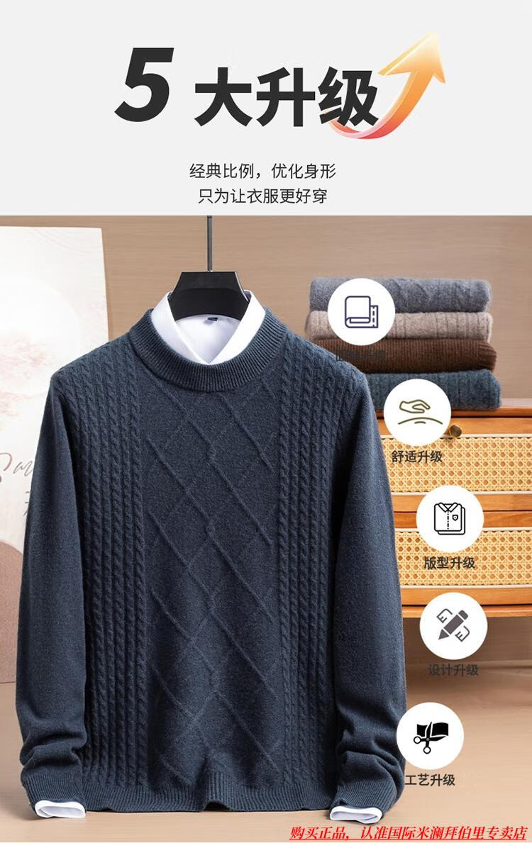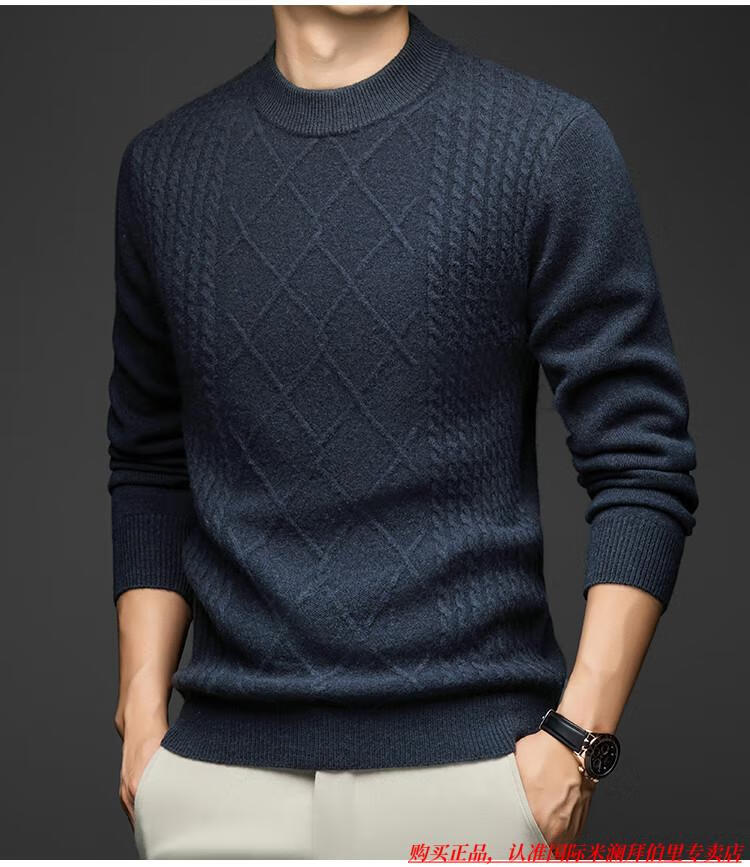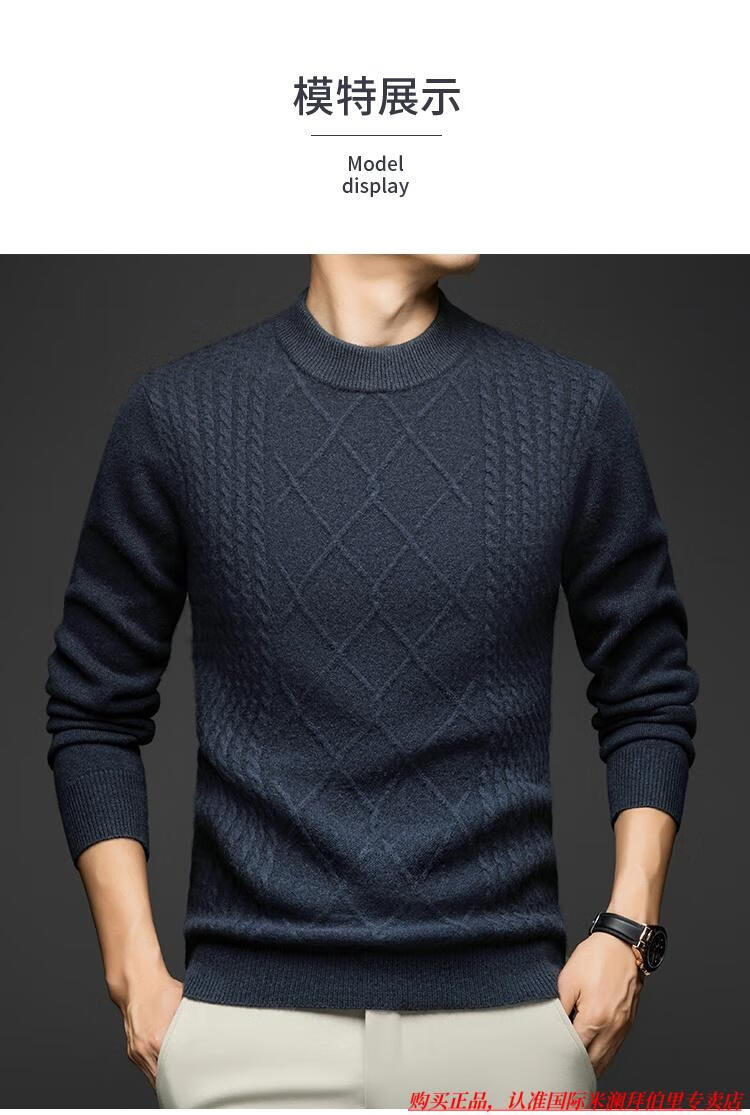 Internacional Milán otoño nuevo jersey suéter de lana completo jacquard medio cuello alto suéter de lana suéter casual engrosado de mediana edad para hombres gris claro XL adecuado para 130-155 Jin Jin equivale a 0,5 kg