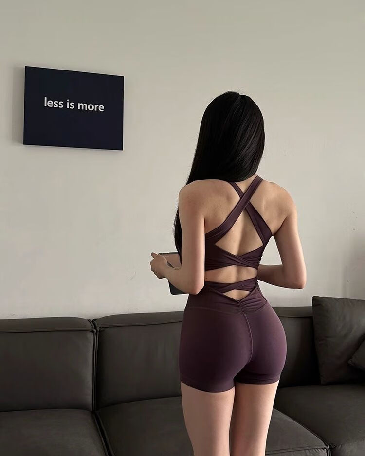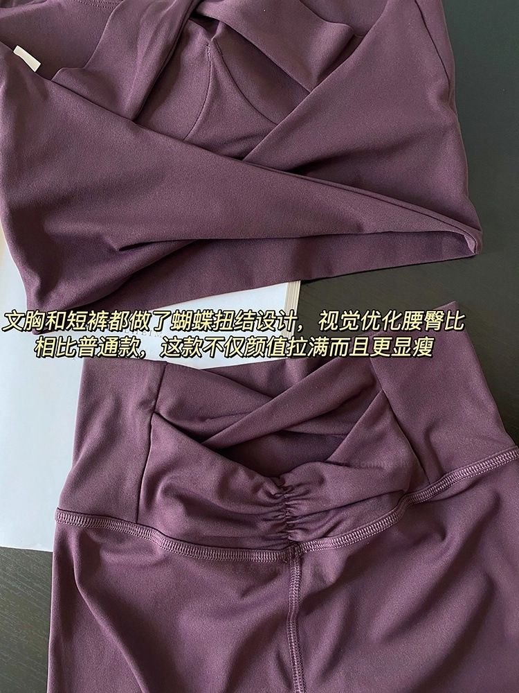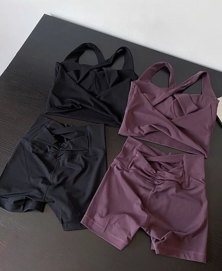 Beautiful Back Yoga Wear Set Medium Intensity Sports Bra Crossover Bra Pilates Butt Lift Three-Point Fitness Pants 1590 Tar Color (Shorts) S