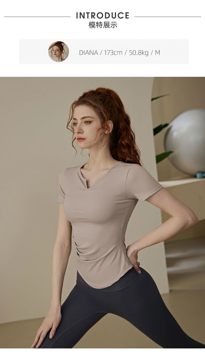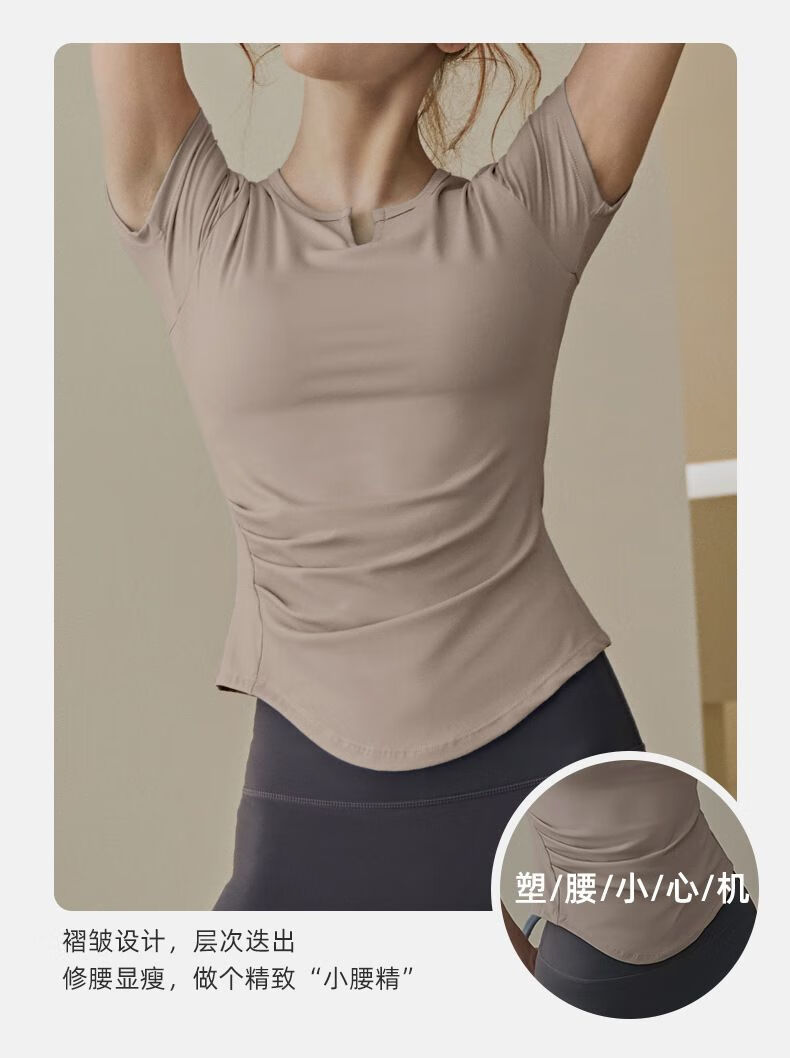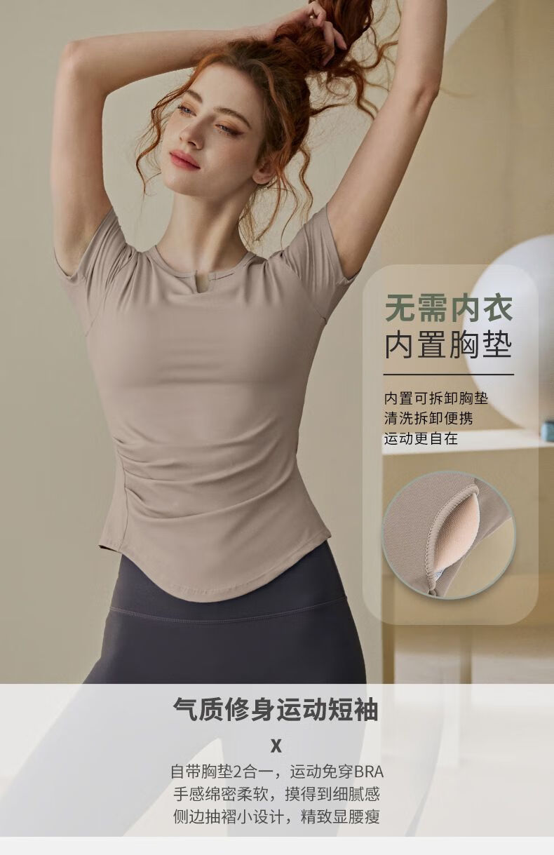 Women's summer Pilates training sports short-sleeved T-shirt suit fitness top with chest pad yoga wear blue short-sleeved S