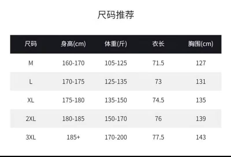China (cm) 165 / 88-90 170 / 96-98 175 / 108-110 180 / 118-122 185 / 126-130