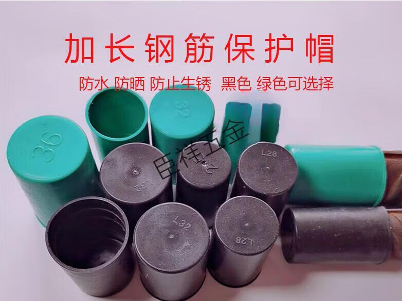 XMSJ custom extended steel bar protective cap black green steel wire head protective cap straight thread protective sleeve plastic sleeve 36 extra long cap 500 green 8 cm