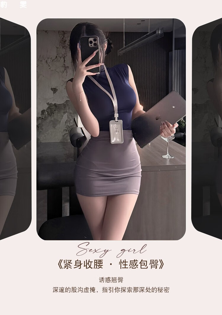 Underwear 2025 new sexy OL secretary uniform full set shameful date shirt secretary (top + skirt + name tag + thong) 160M