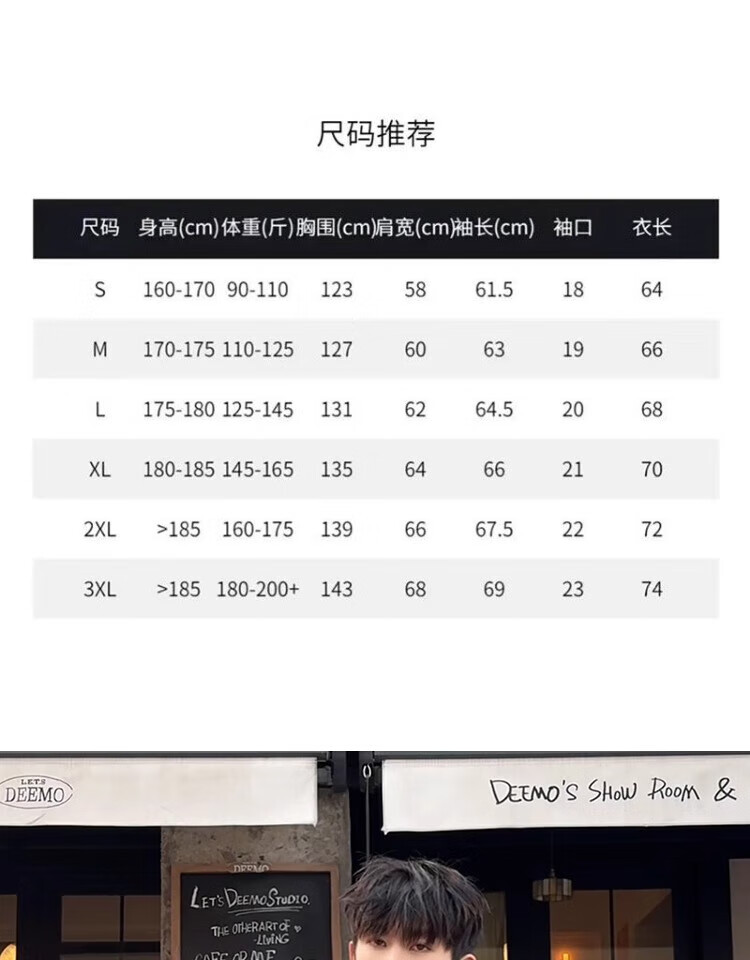 China (cm) 165 / 88-90 170 / 96-98 175 / 108-110 180 / 118-122 185 / 126-130