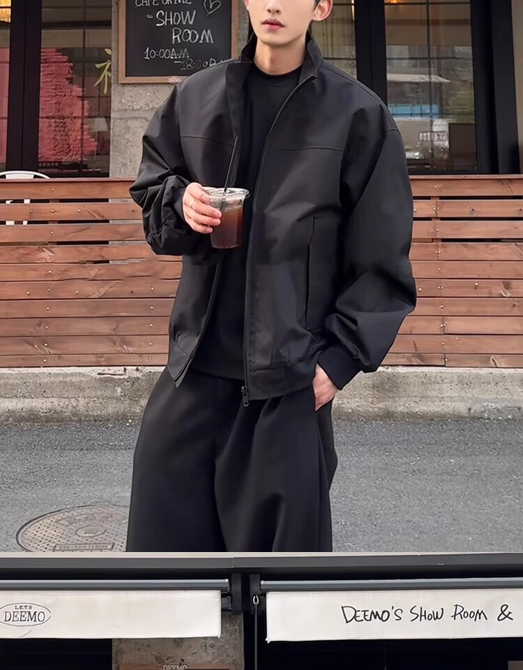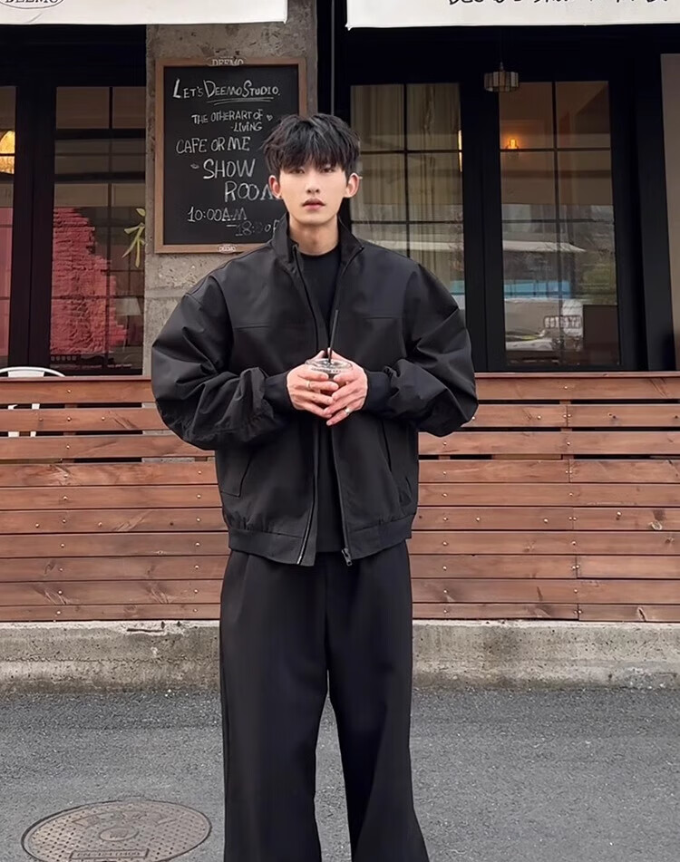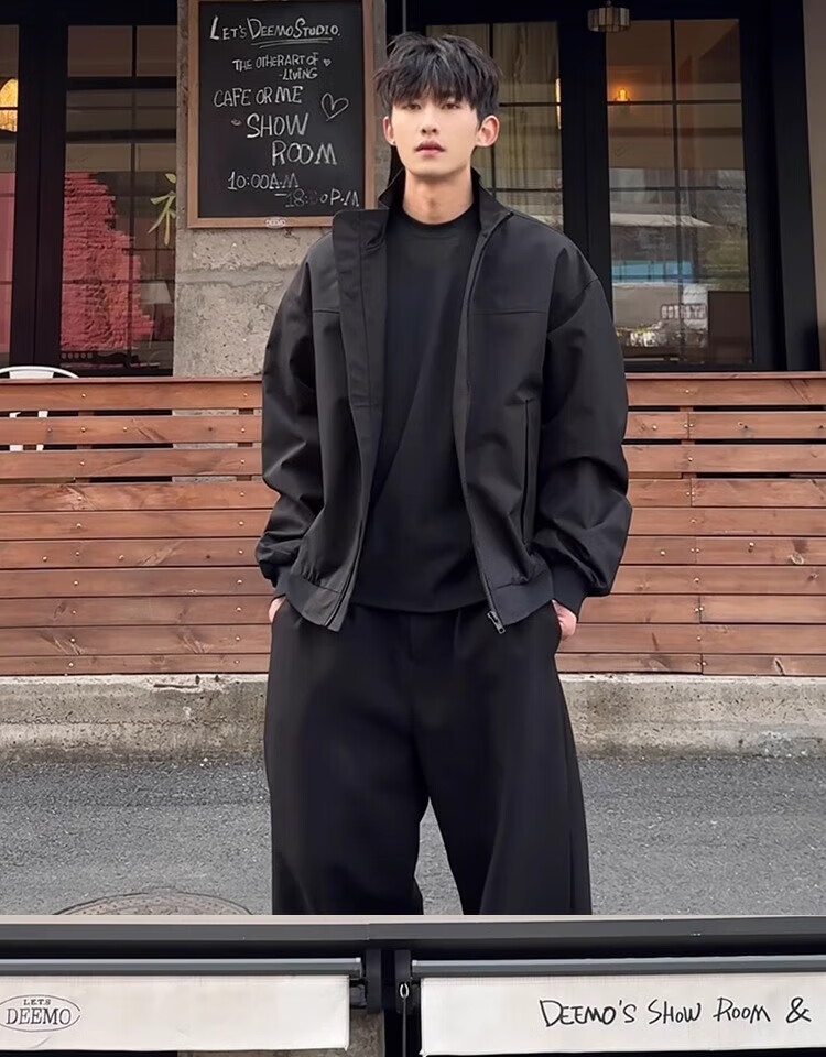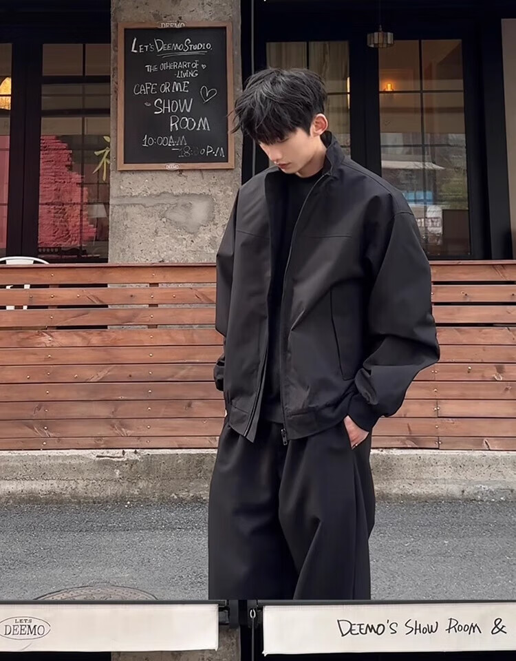 JEEP SPIRIT three-proof American flight jacket for men in spring and autumn, a complete set of stand-up collar baseball jacket, short work jacket, apricot jacket + black long sleeves + black trousers, three-piece set M (suitable for 110-125 Jin Jin equals 0.5 kg)