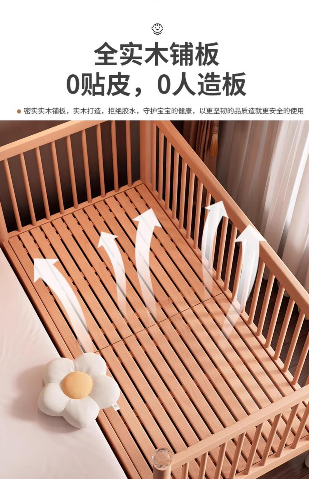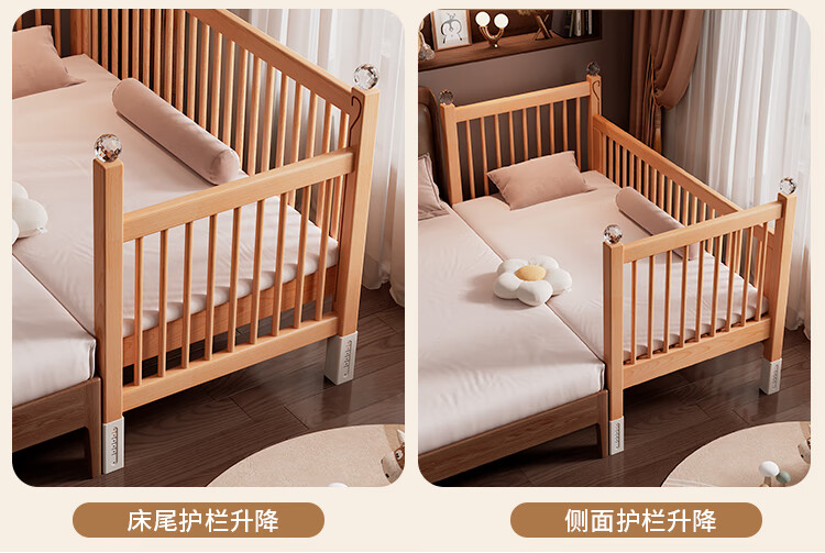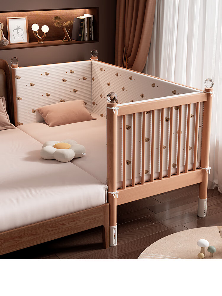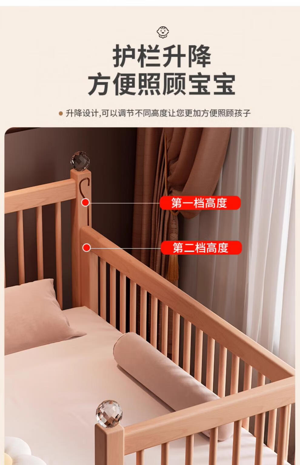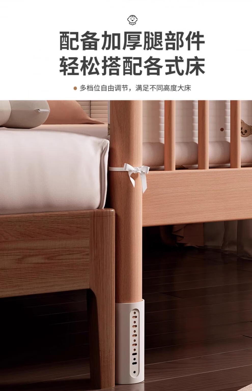 Jianyouge beech spliced bed widened and liftable newborn children's bed baby bedside bed flat bed adult solid wood crib side guardrail lift_+ Class A pure cotton bedside assembly_frame structure_150x60cm