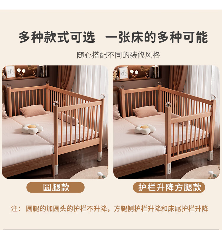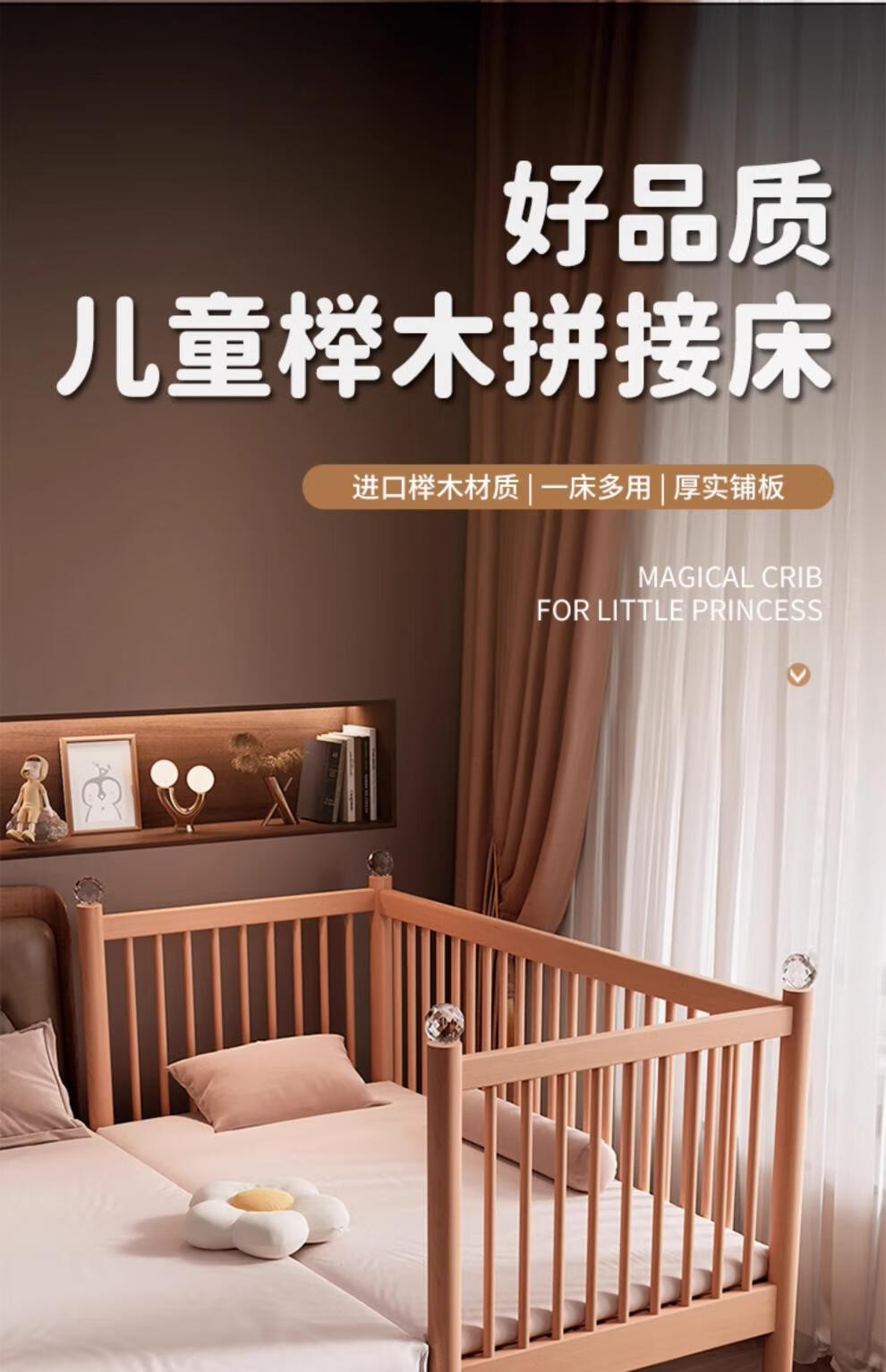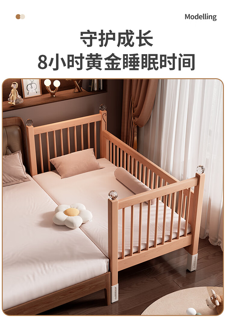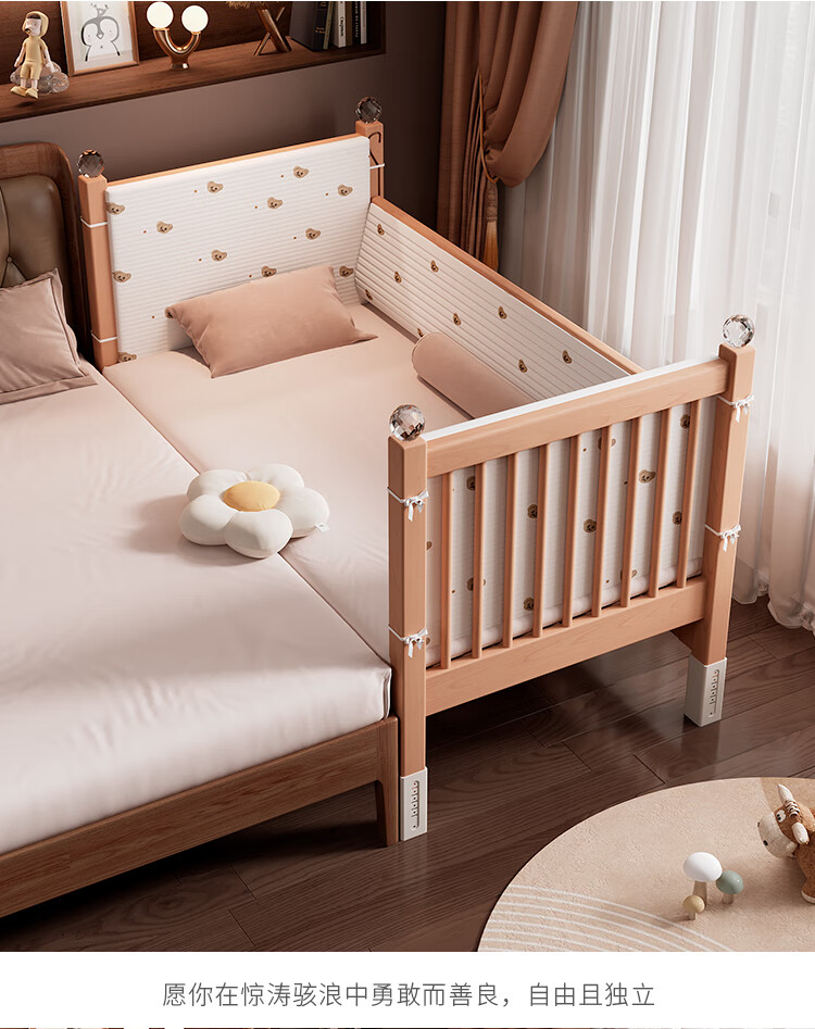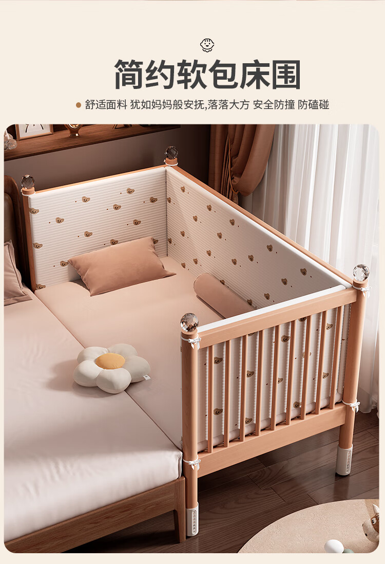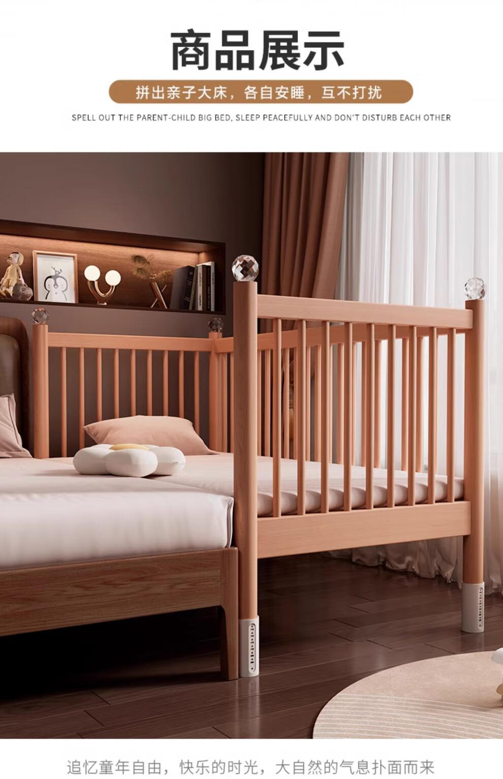 Jianyouge beech spliced bed widened and liftable newborn children's bed baby bedside bed flat bed adult solid wood crib side guardrail lift_+ Class A pure cotton bedside assembly_frame structure_150x60cm