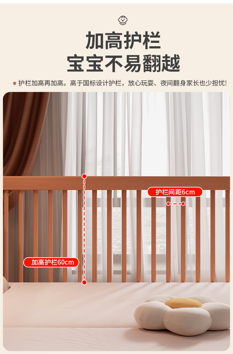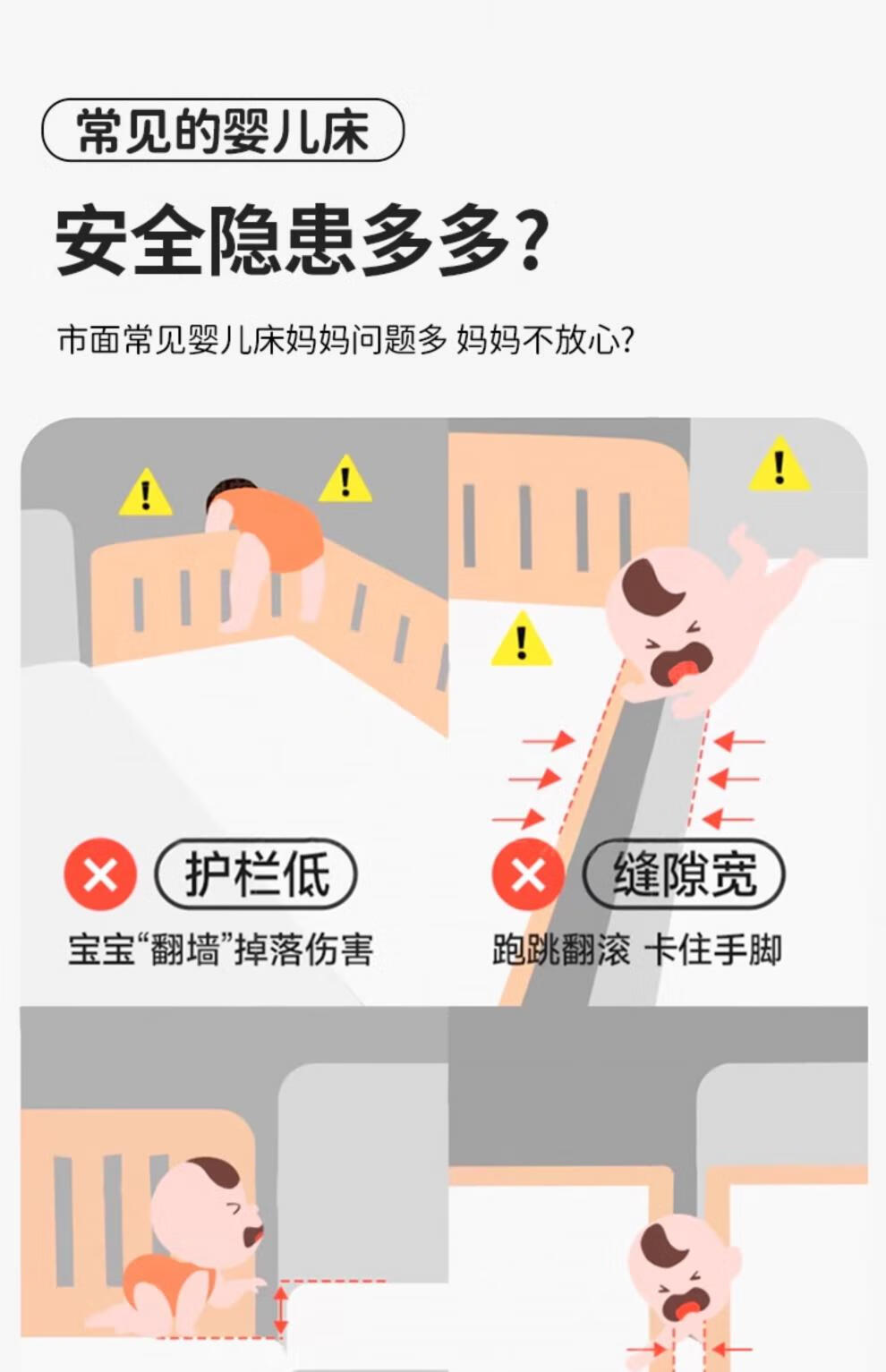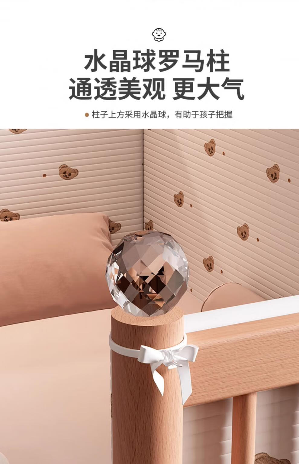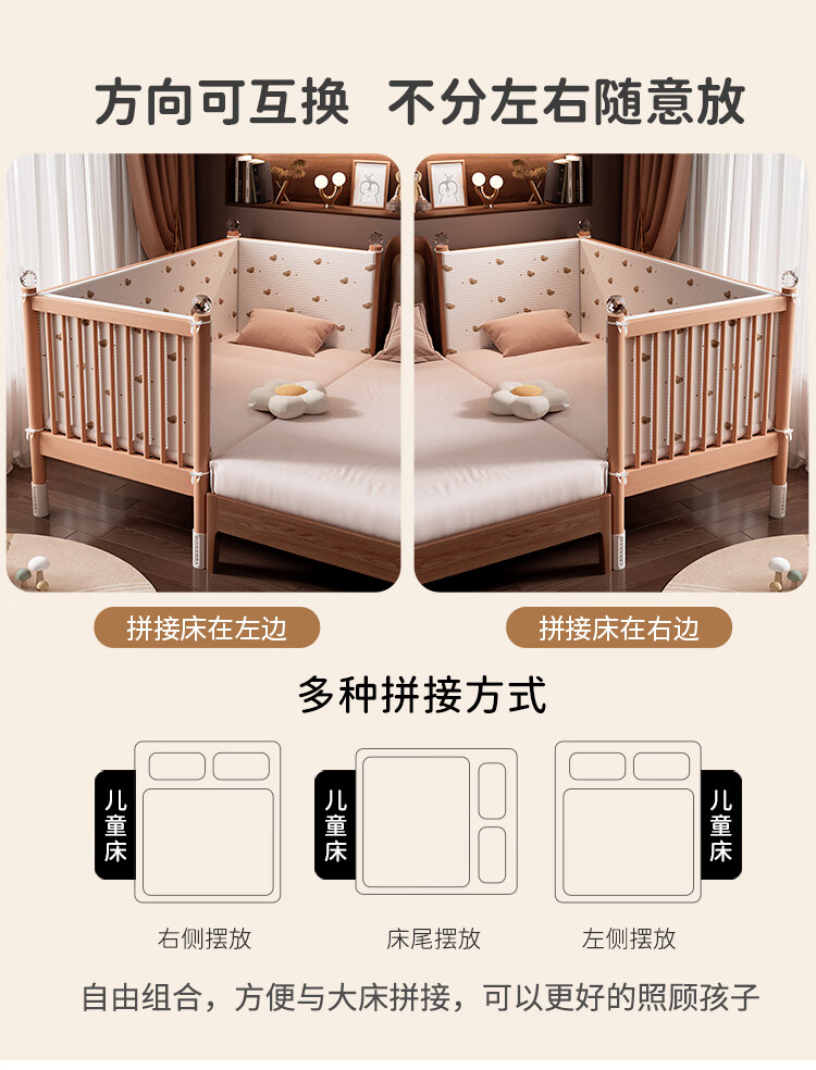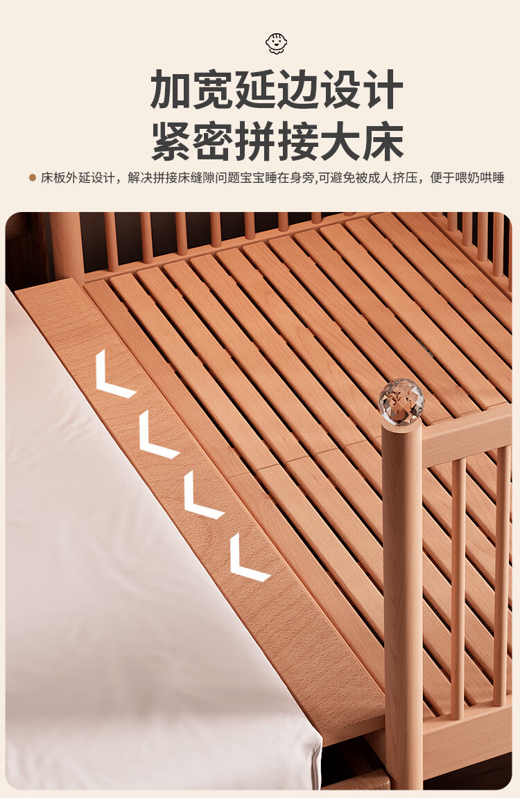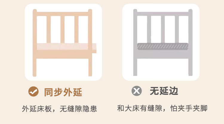 Jianyouge beech spliced bed widened and liftable newborn children's bed baby bedside bed flat bed adult solid wood crib side guardrail lift_+ Class A pure cotton bedside assembly_frame structure_150x60cm