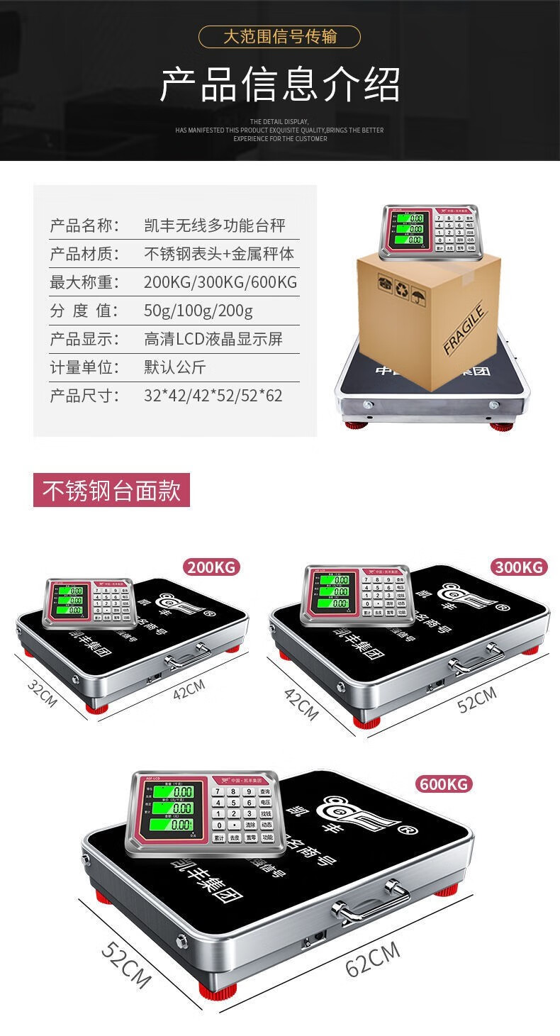 Kaifeng Wireless Separate Electronic Scale Commercial Platform Scale 300kg 200kg Portable High-Precision Weighing Electronic Scale Earthquake Resistant 300KG Black Letter 40*50cm