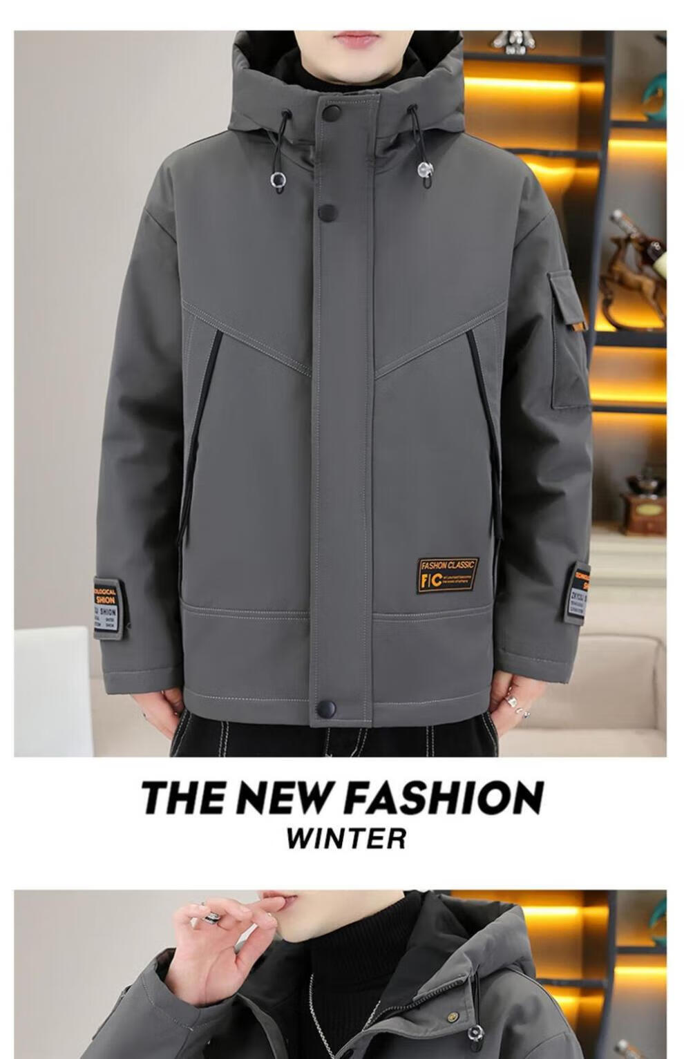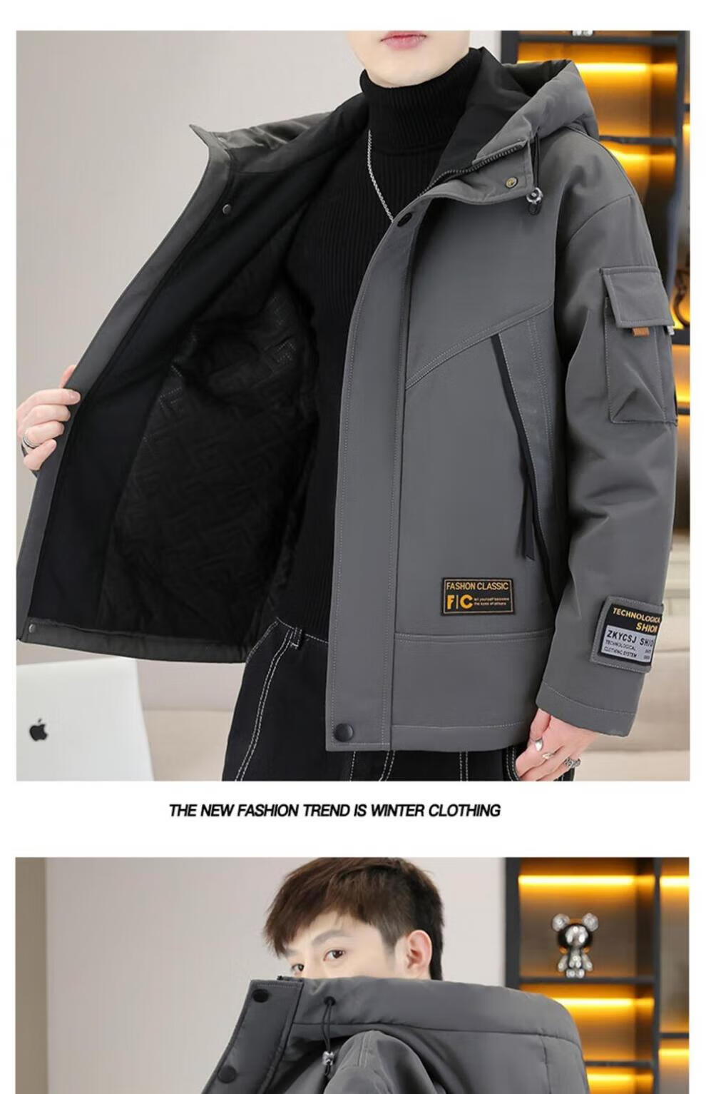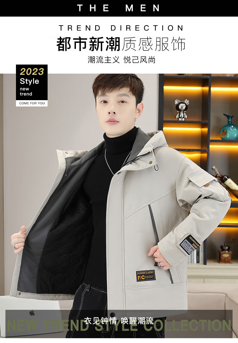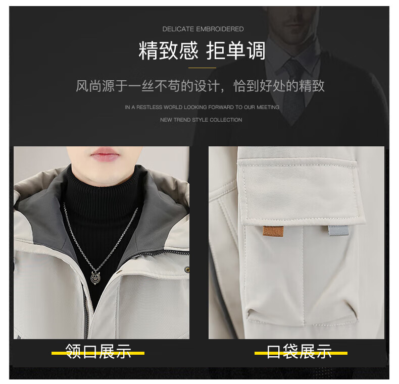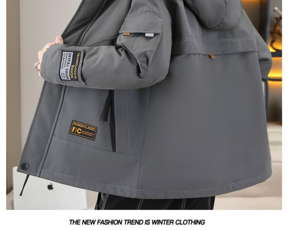 JEEP SPIRIT work jacket men's autumn and winter velvet thickened hooded jacket men's high-end cotton clothing outdoor jacket MY216 dark gray cotton L (about 110-130 Jin Jin equals 0.5 kg can be worn)