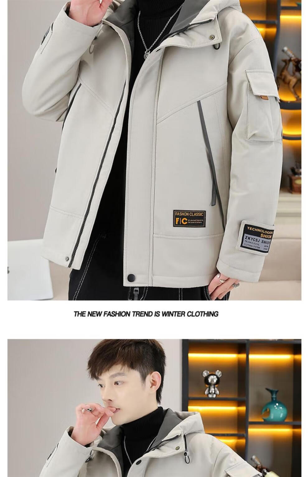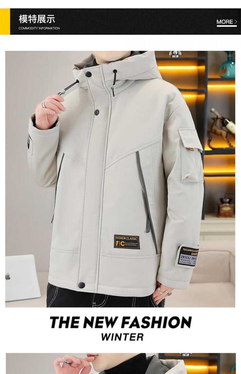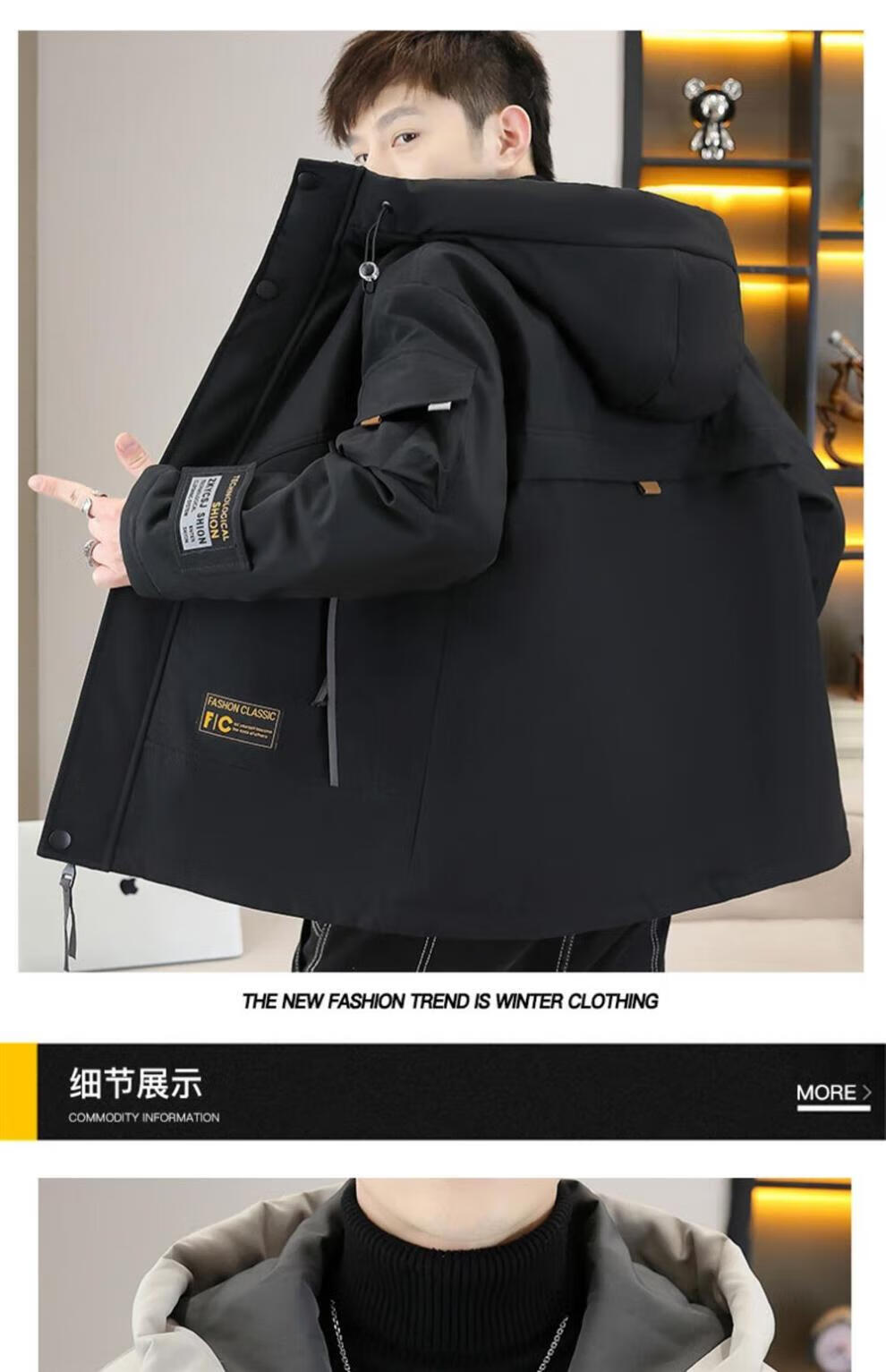 JEEP SPIRIT work jacket men's autumn and winter velvet thickened hooded jacket men's high-end cotton clothing outdoor jacket MY216 dark gray cotton L (about 110-130 Jin Jin equals 0.5 kg can be worn)