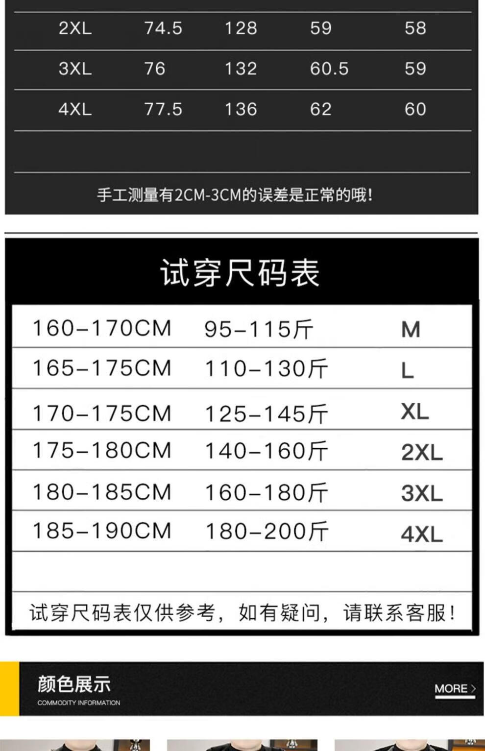 China (cm) 165 / 88-90 170 / 96-98 175 / 108-110 180 / 118-122 185 / 126-130