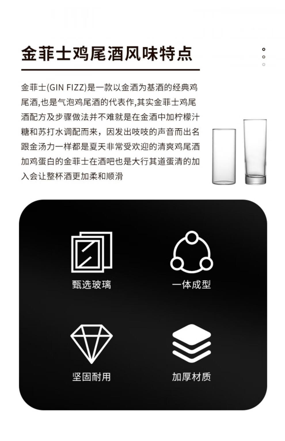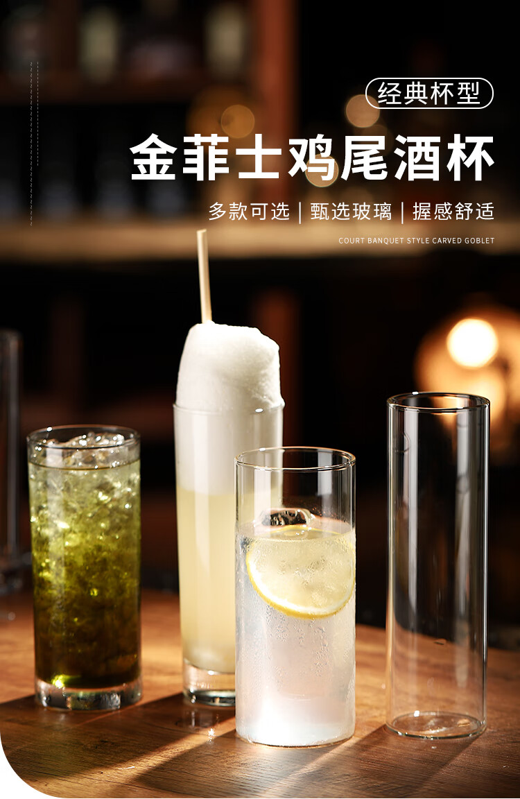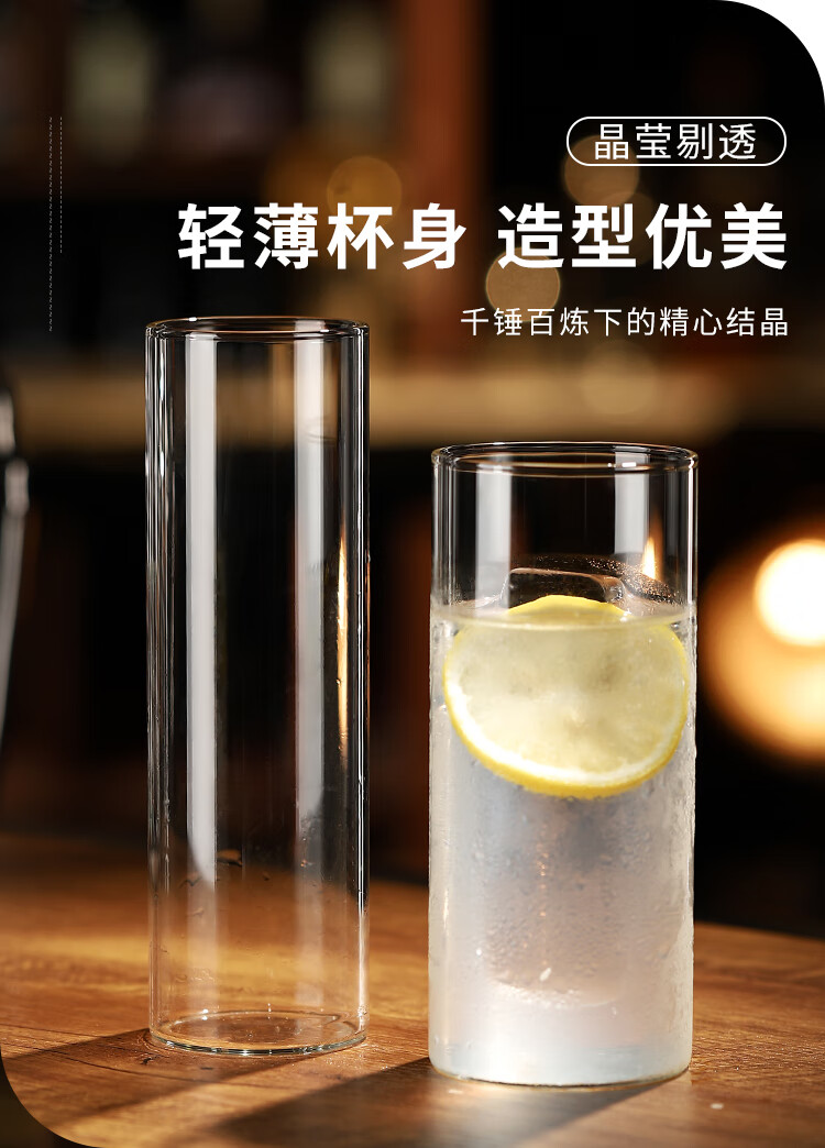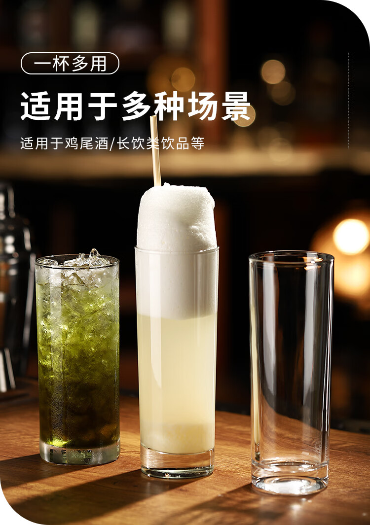 JZ Ramos Gold Fizz Thin Cocktail Cup Heightened Colin Cup Gin and Tonic Long Drinking Cup High Wave Cup Glass Thick Bottom Straight Cup 280ml