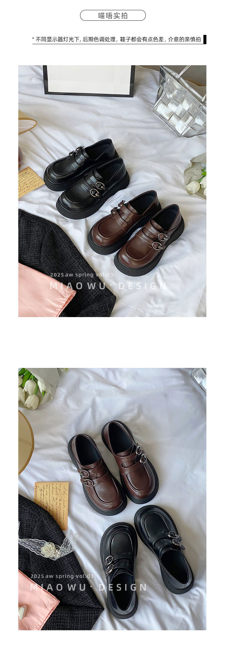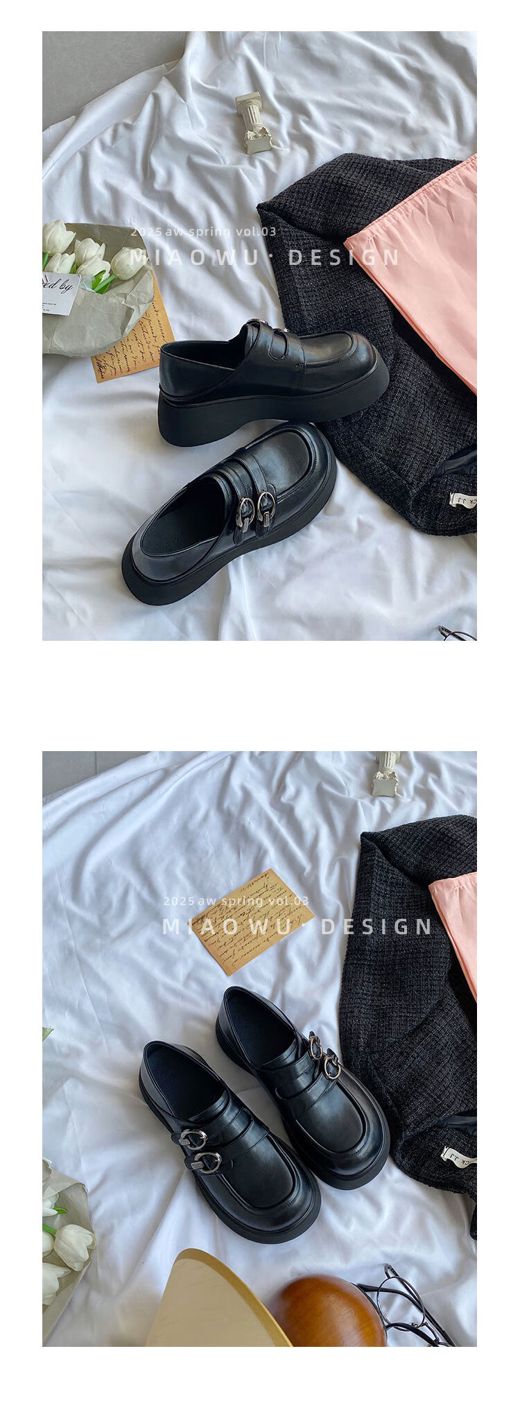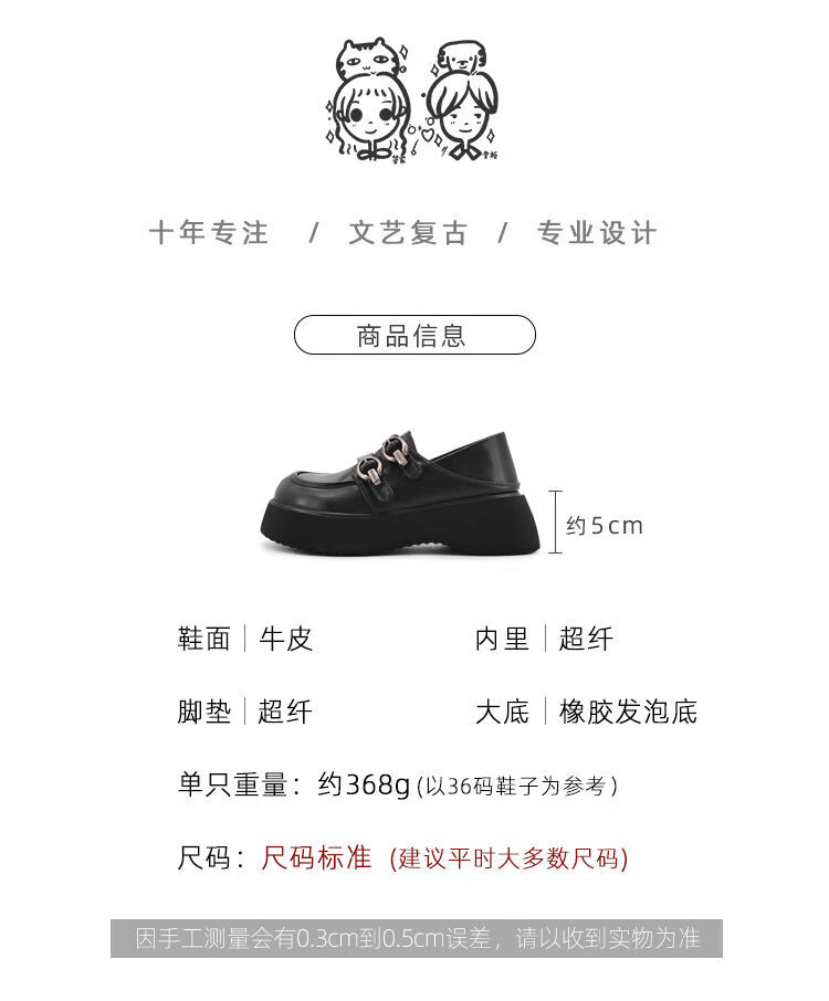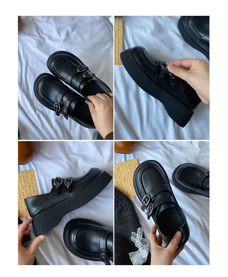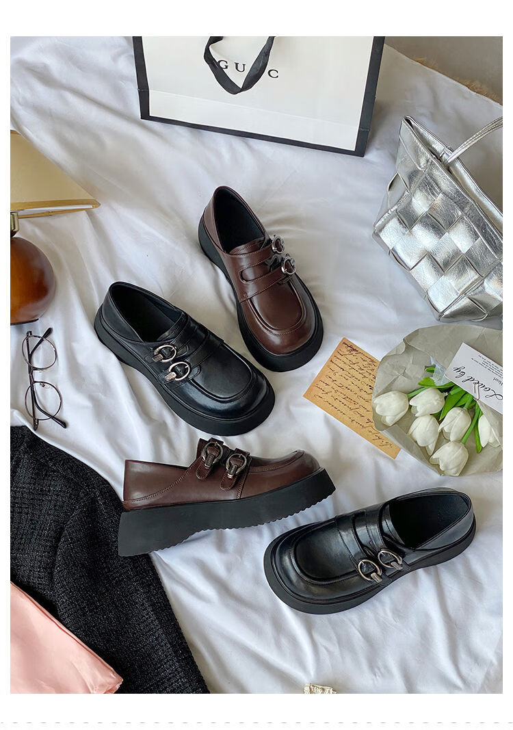 Spring college style thick-soled loafers for women with belt buckles, versatile casual shoes, small leather shoes, black - ready stock 36 36