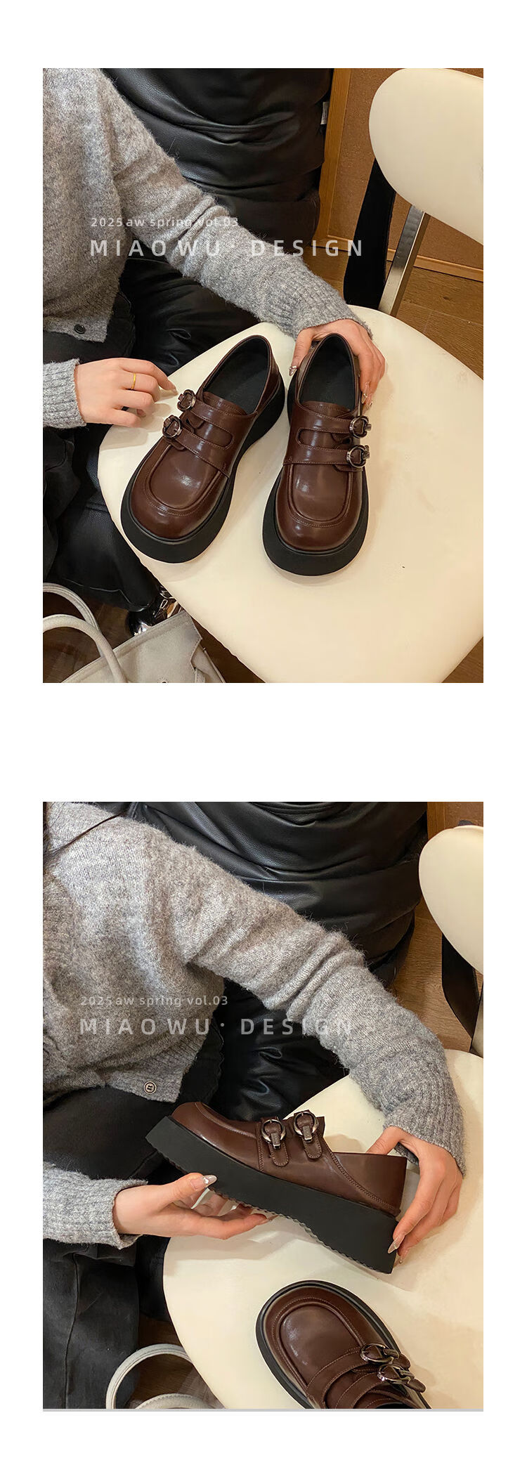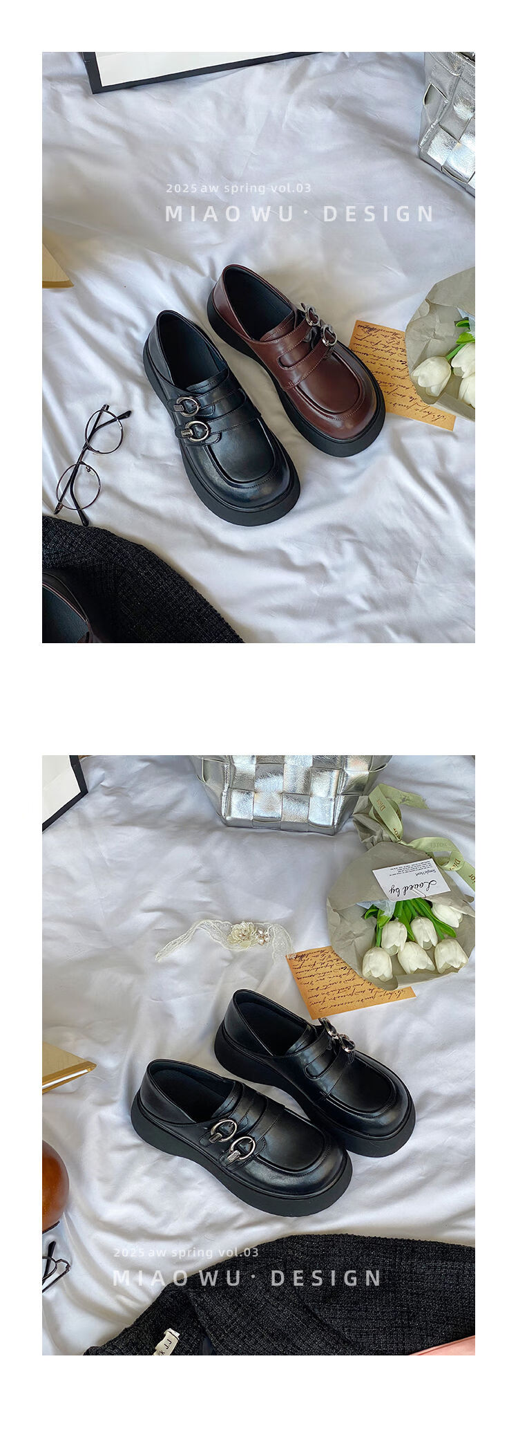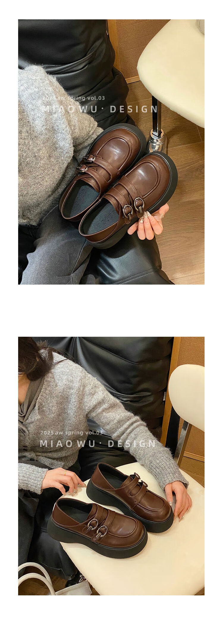 Spring college style thick-soled loafers for women with belt buckles, versatile casual shoes, small leather shoes, black - ready stock 36 36