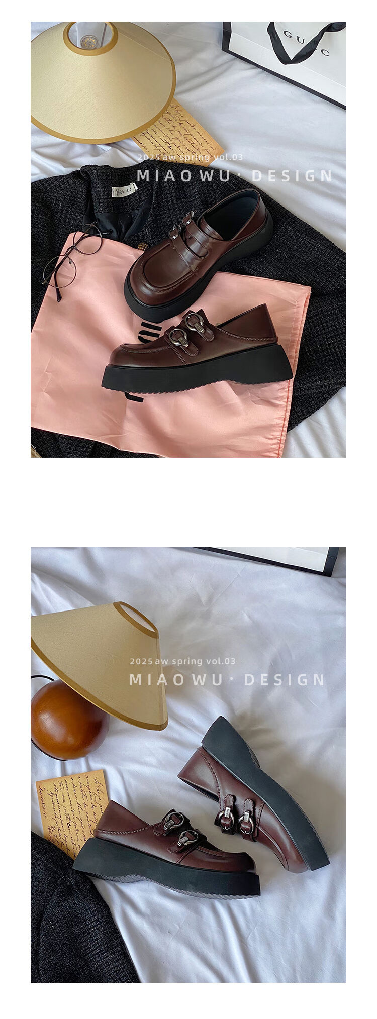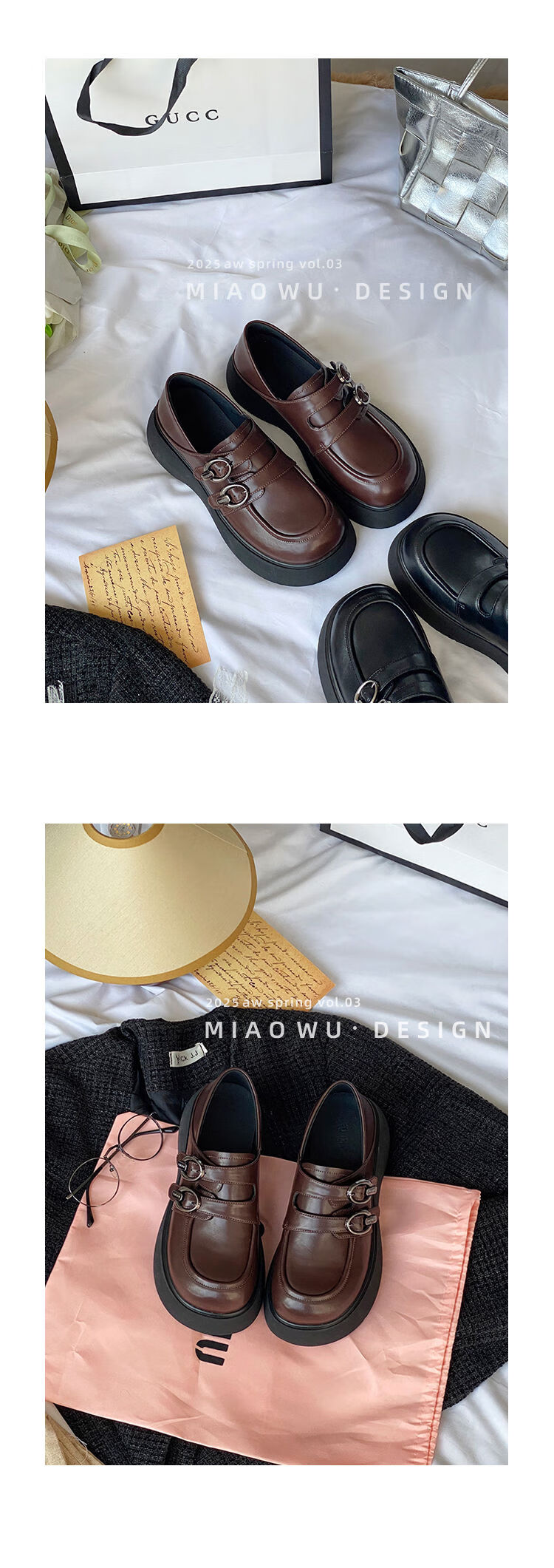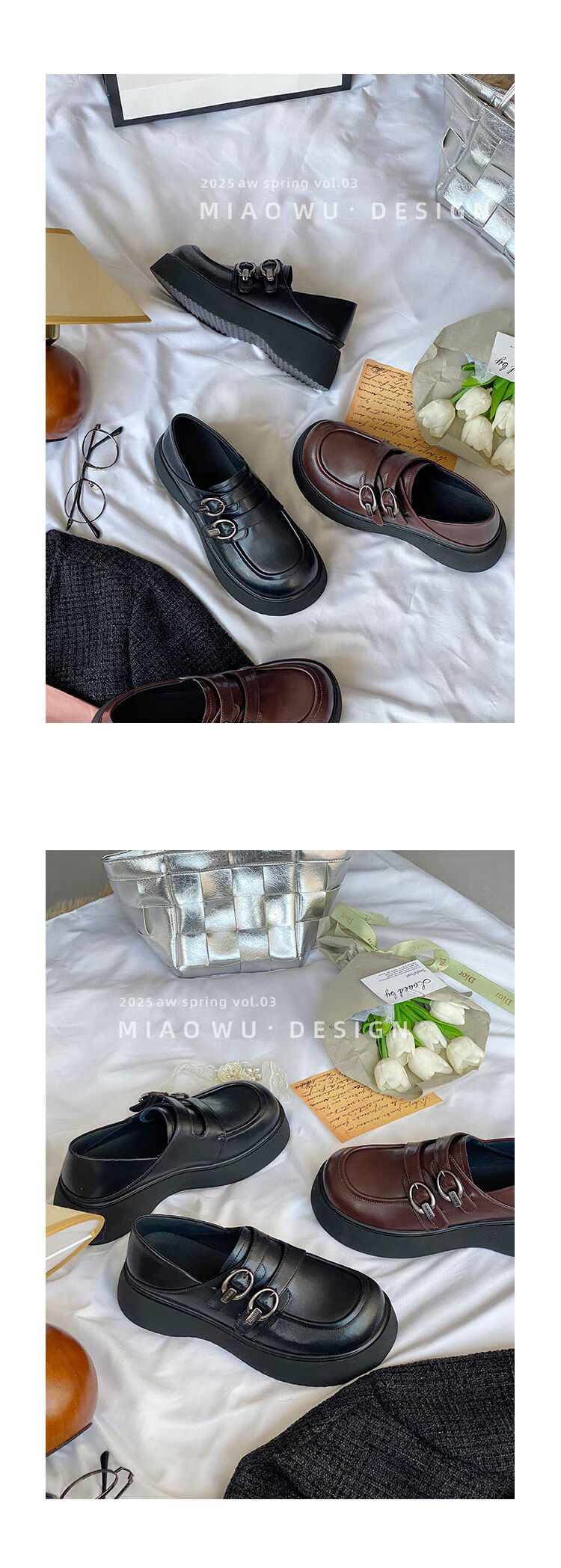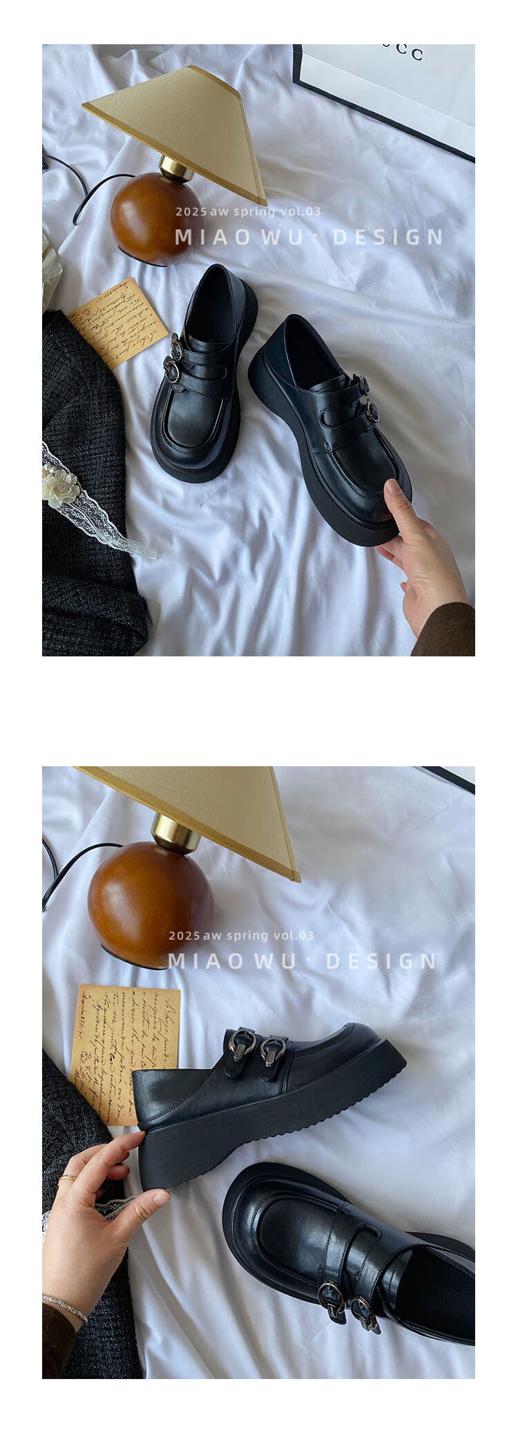 Spring college style thick-soled loafers for women with belt buckles, versatile casual shoes, small leather shoes, black - ready stock 36 36