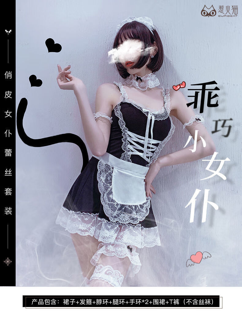 Guiruo jk suit SM thong maid outfit cute bunny girl cat uniform suit cosplay fat mm large size see-through cute bunny girl 8-piece set