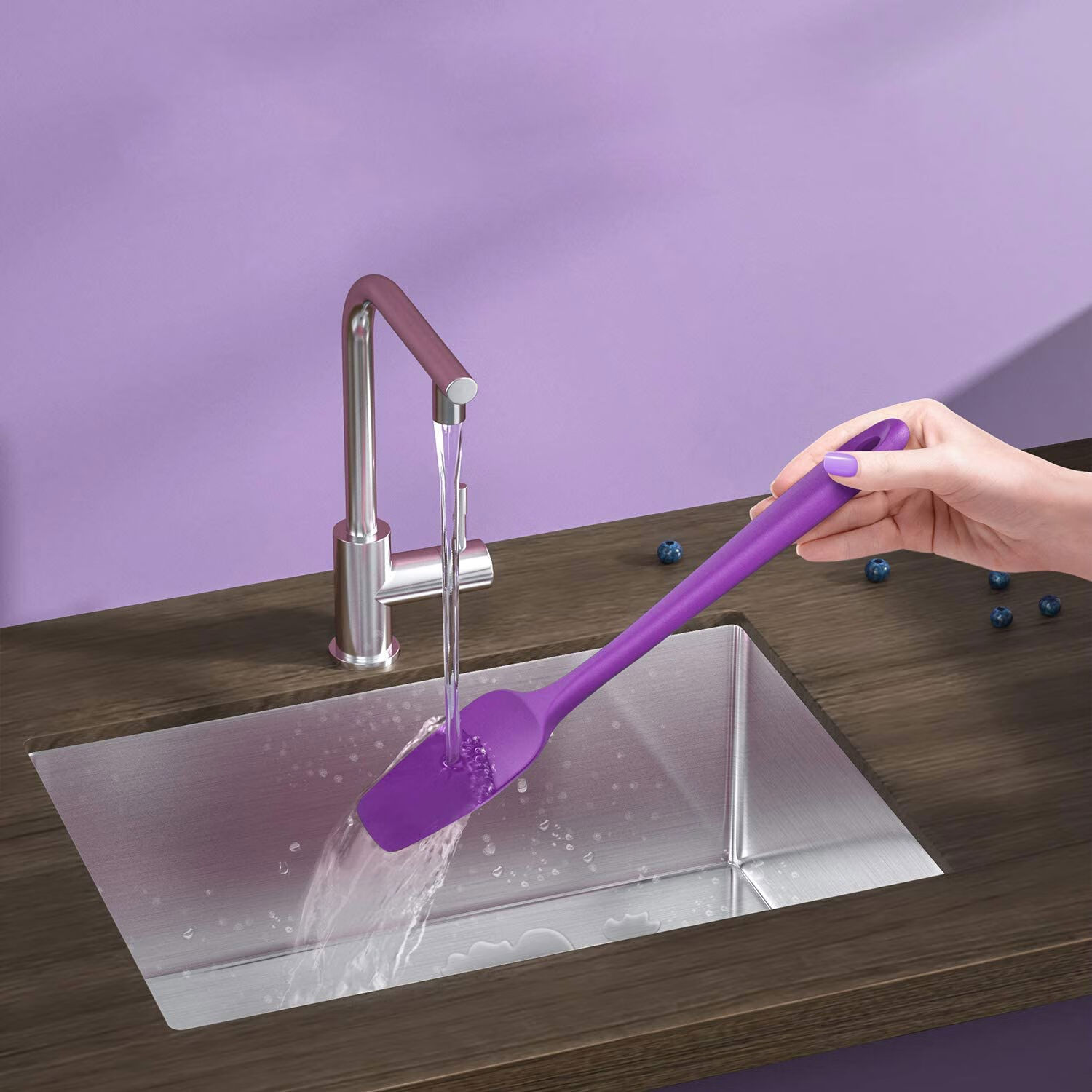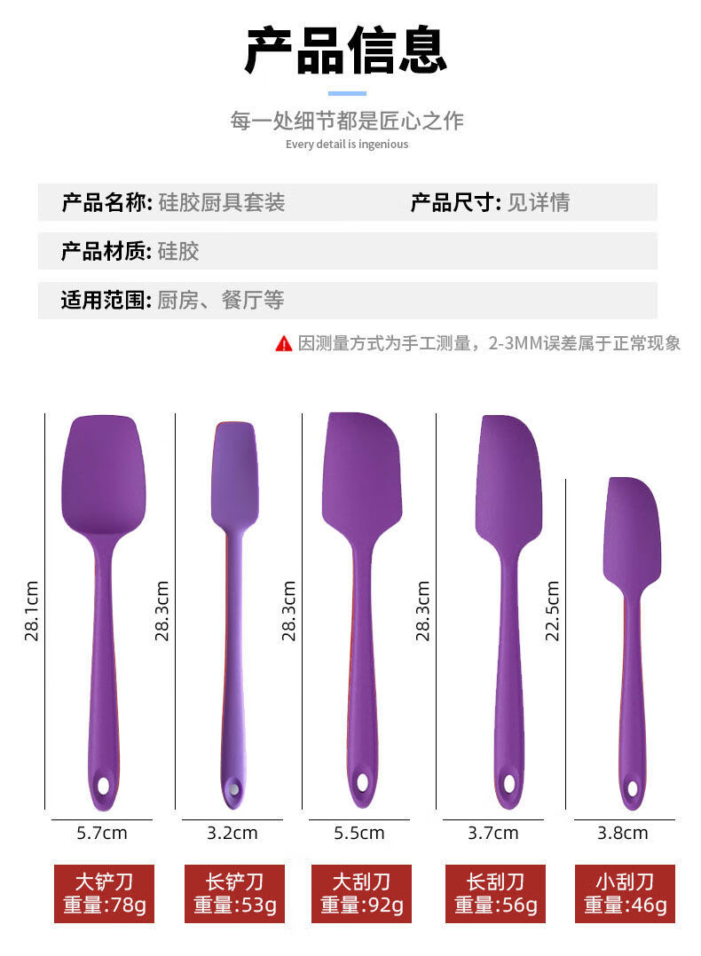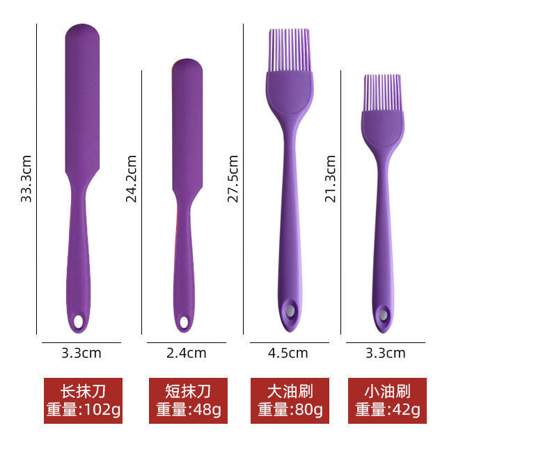 Yusenyi high-looking export purple baking spatula high temperature resistant silicone cream spatula nougat scraper purple 5-piece set
