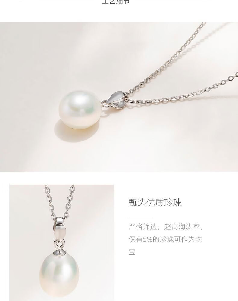 Zhuji freshwater pearl pendant women's rice-shaped beads S925 silver melon seed buckle necklace classic versatile temperament neck chain gift