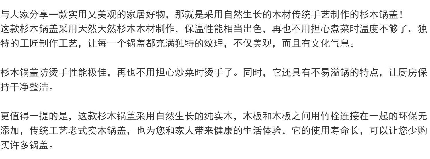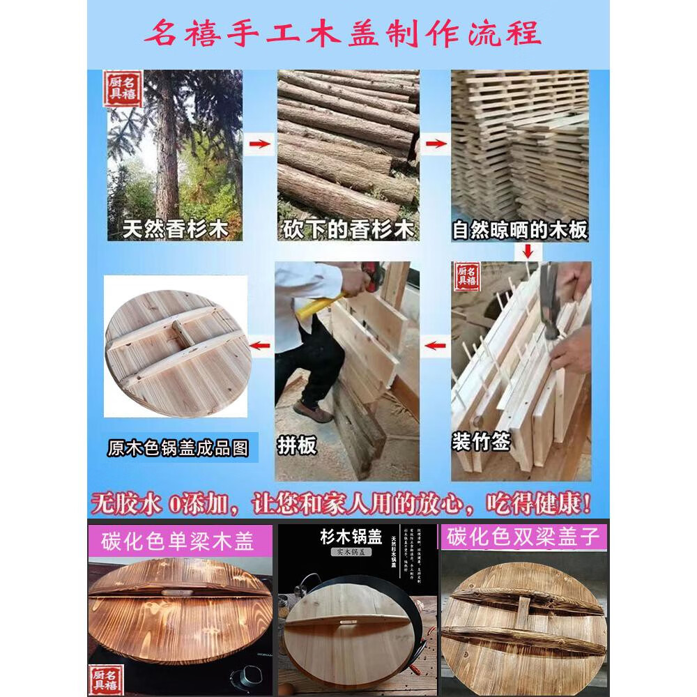 Handmade fir pot lid household solid wood wok large pot wooden lid water cylinder lid round old-fashioned wood lid without glue diameter 40cm