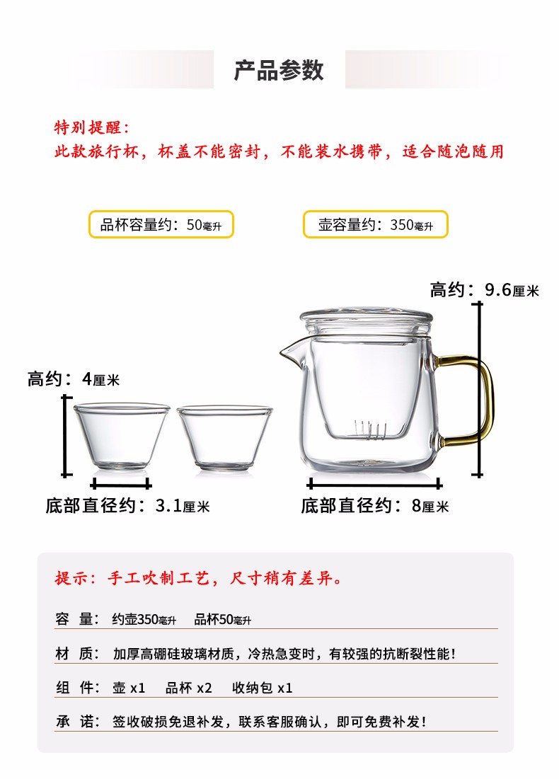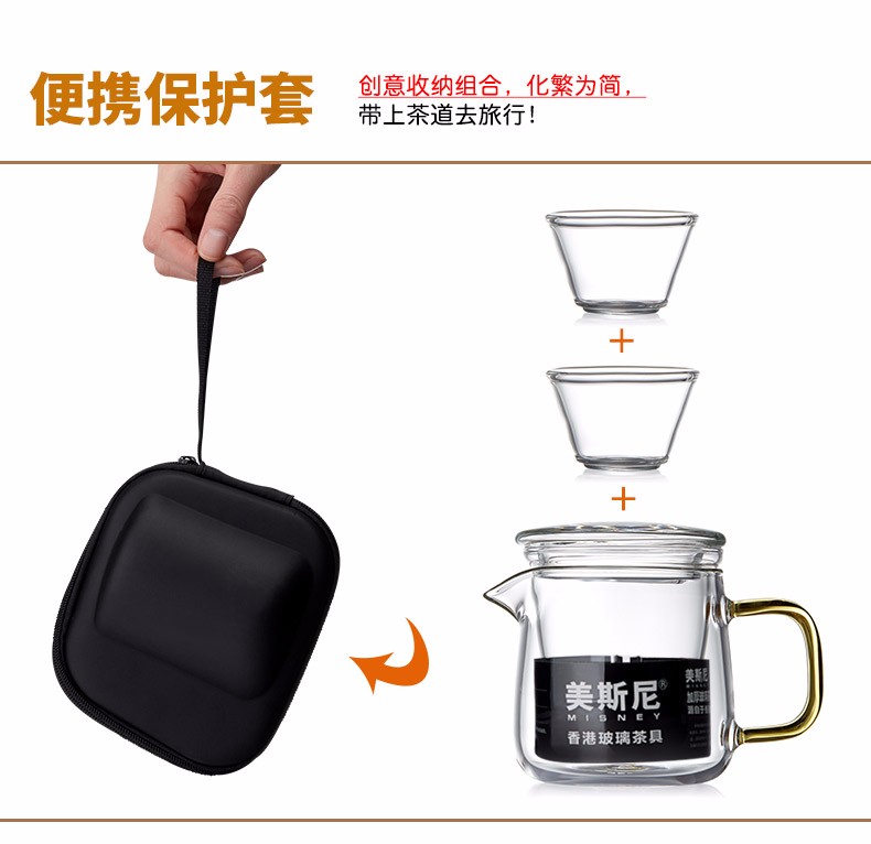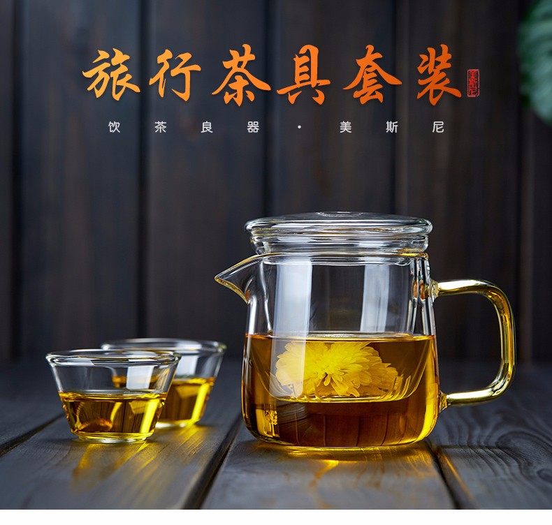 Mesni travel tea set quick cup portable tea set bag teapot glass tea cup tea towel filter one pot two cups travel cup set