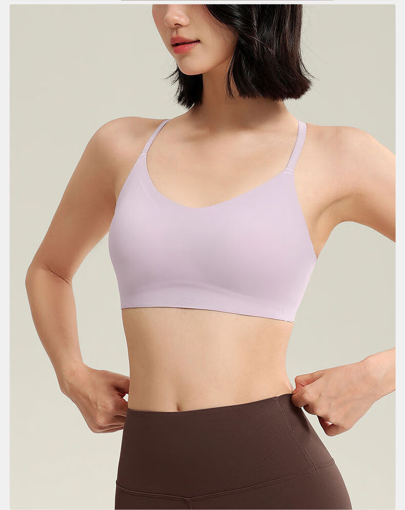 Mask cup low-intensity sports bra one-cup breathable vest yoga Pilates push-up fitness bra rock gray purple M M