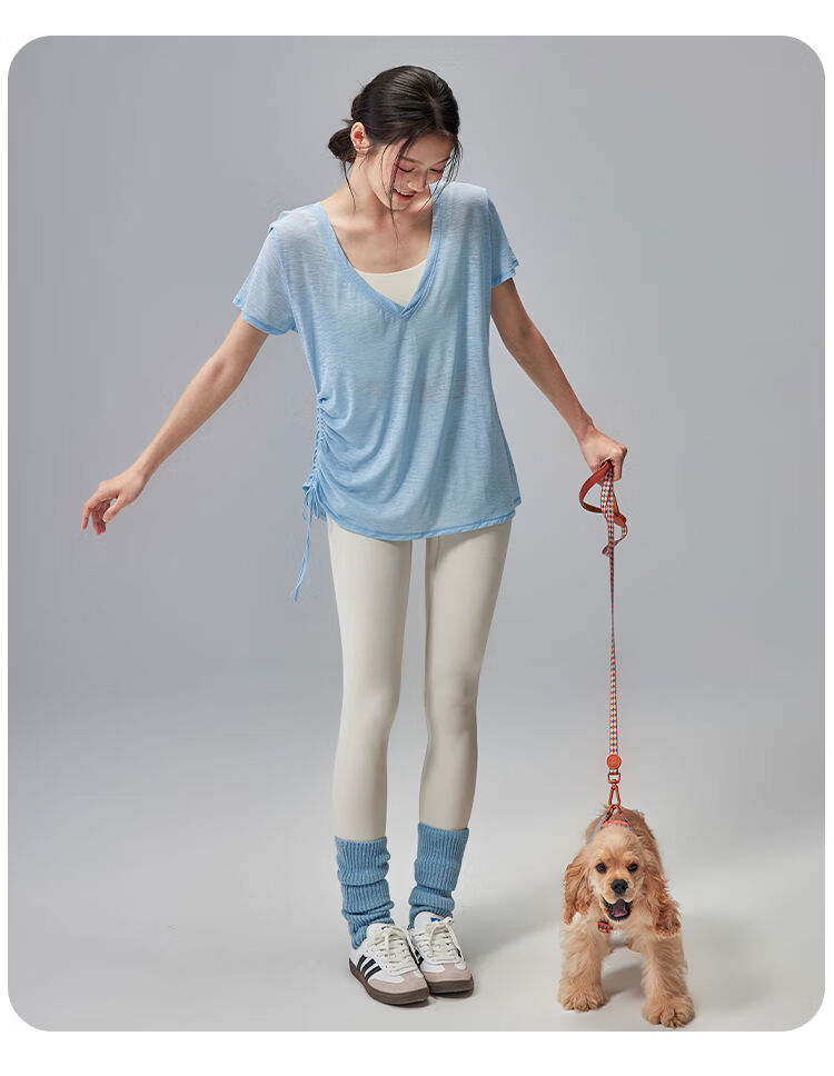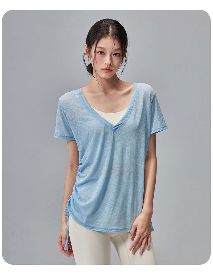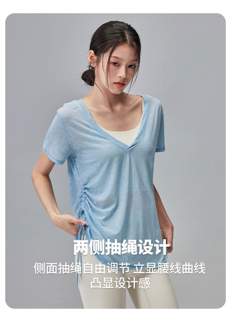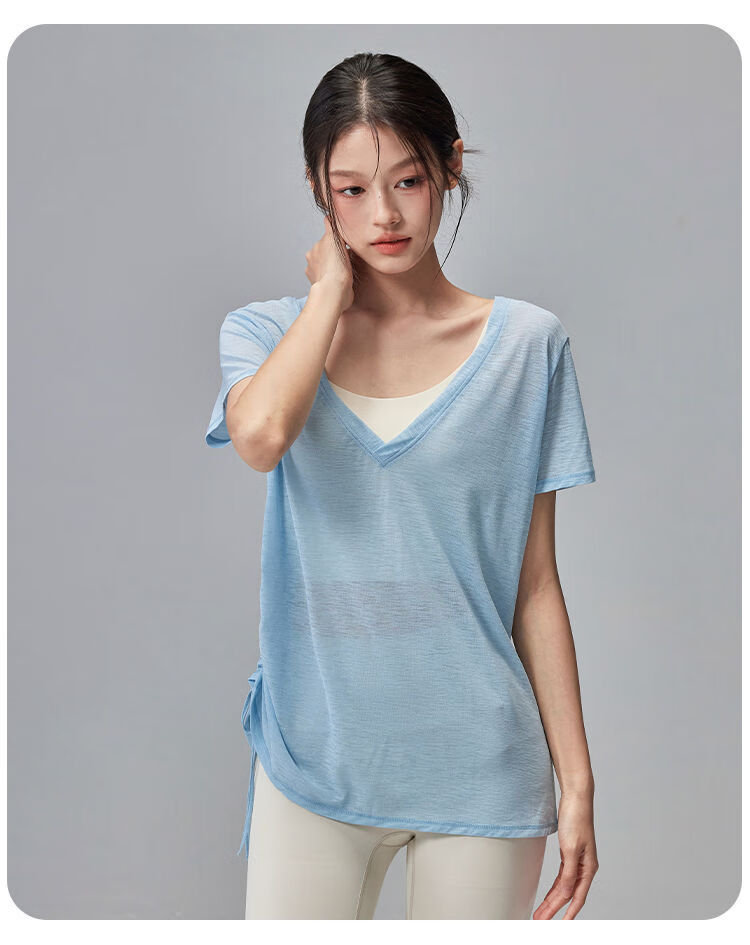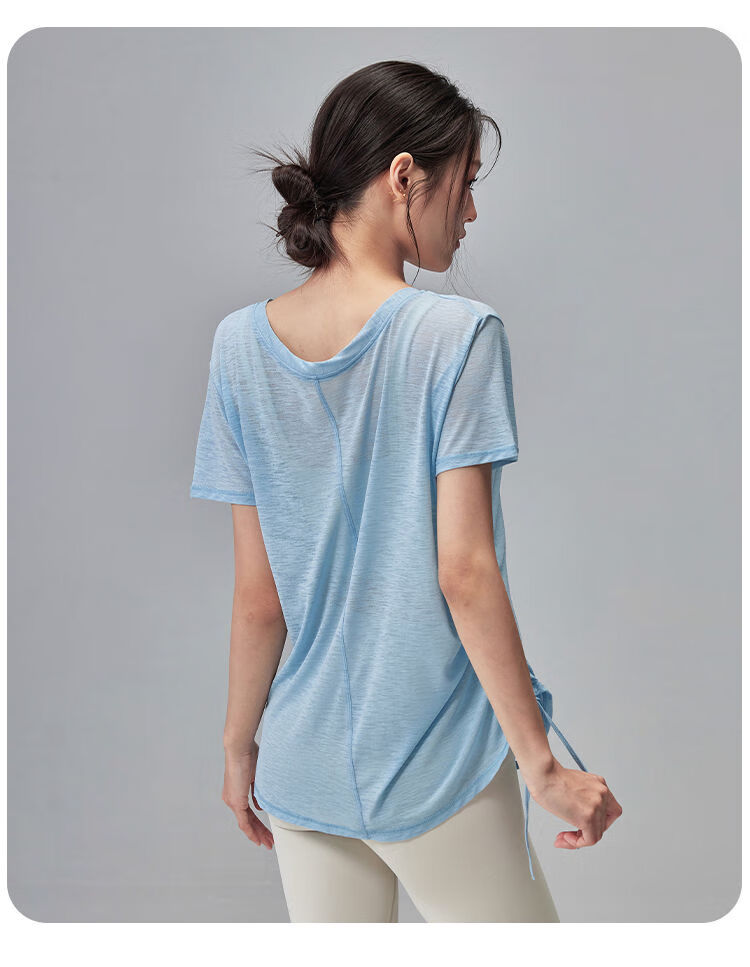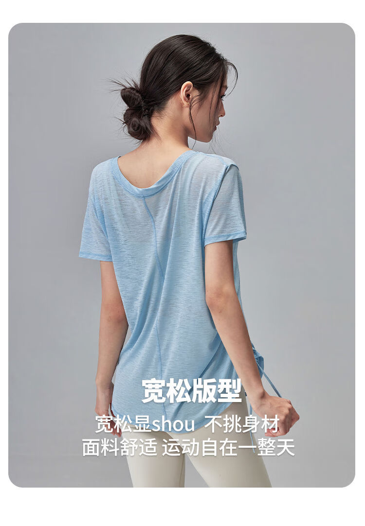 Fitness girl summer thin yoga wear short-sleeved loose slimming Pilates training blouse quick-drying sports upper blue S S