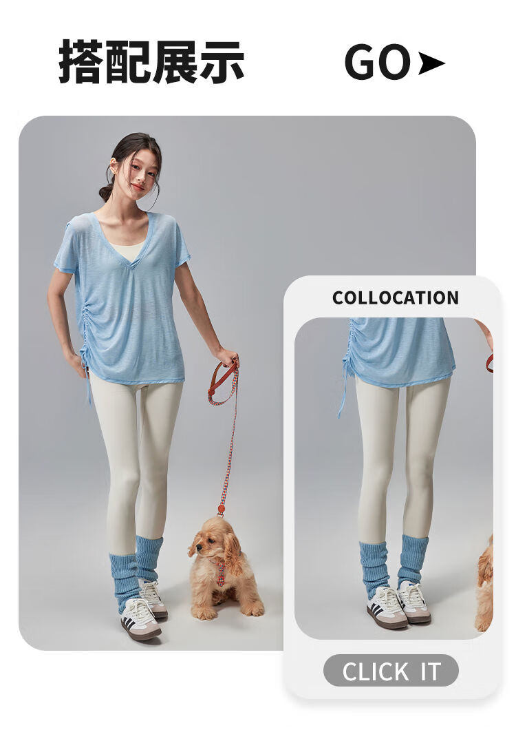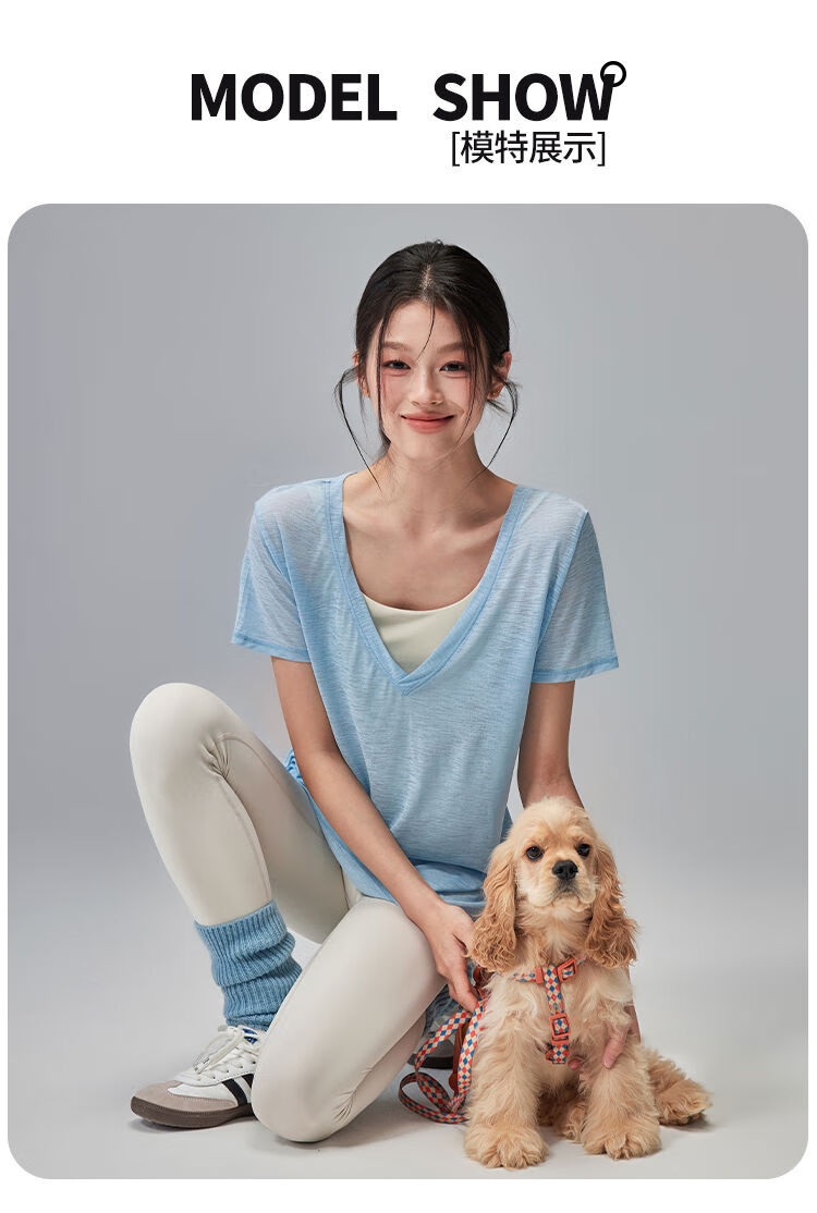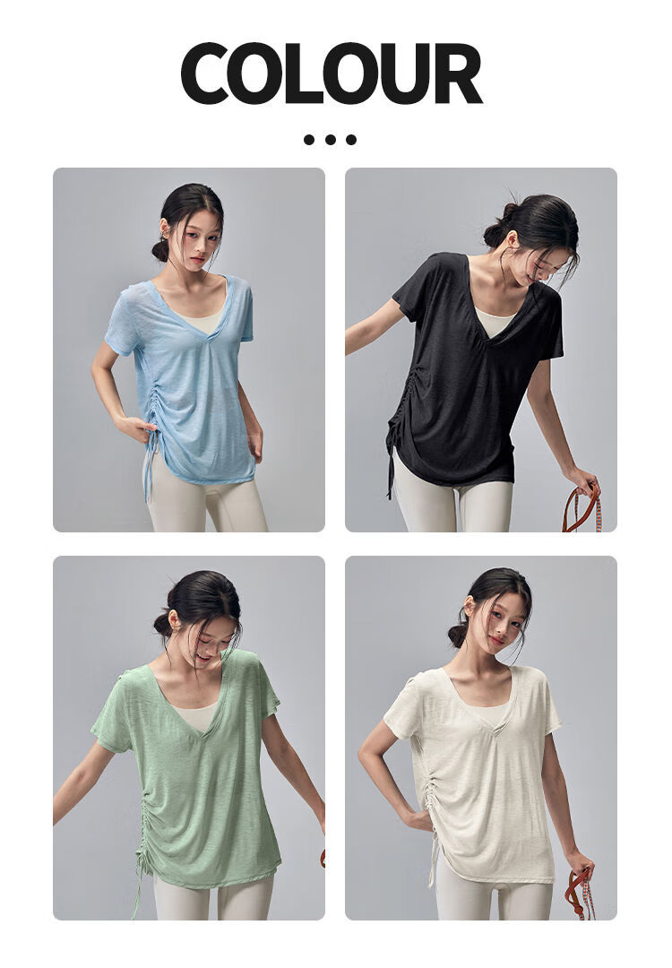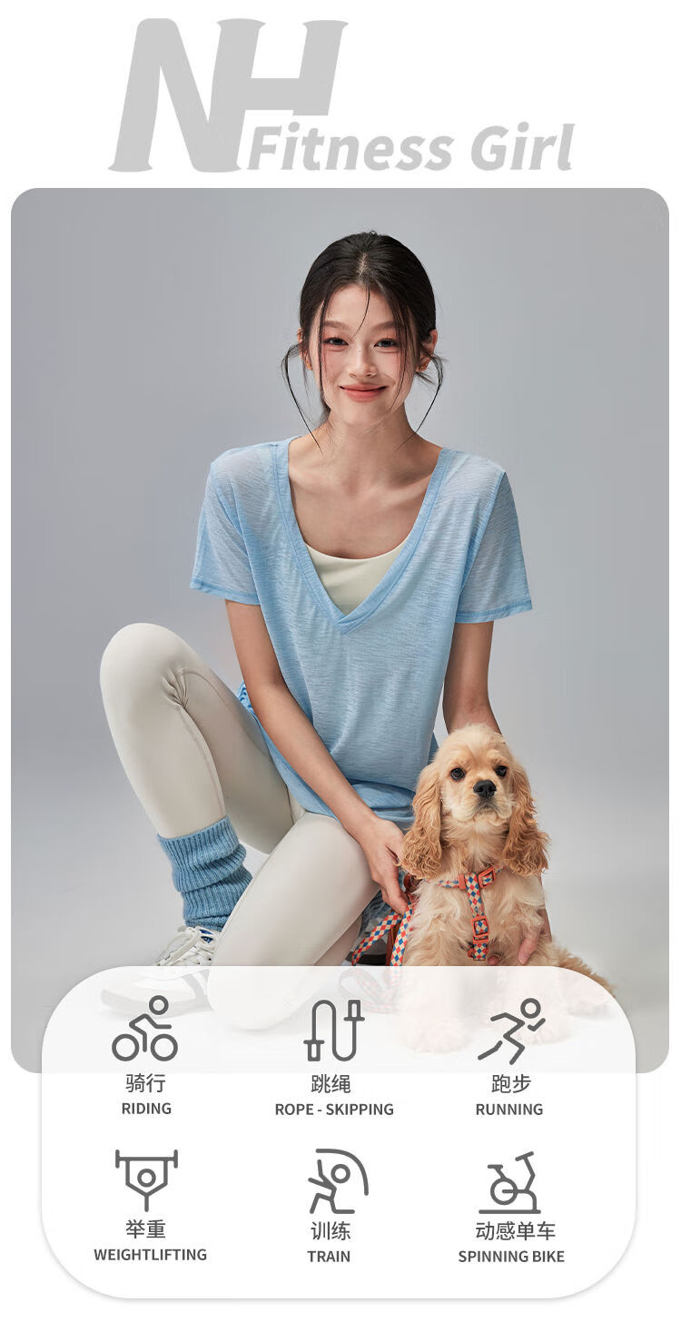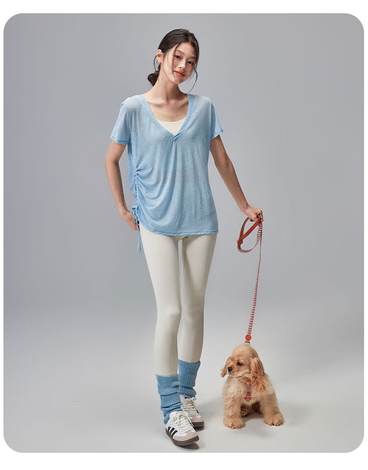 Fitness girl summer thin yoga wear short-sleeved loose slimming Pilates training blouse quick-drying sports upper blue S S