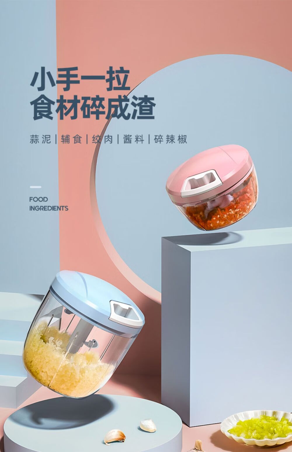 Garlic mashing artifact, garlic puller, garlic masher, small garlic, manual mashing, garlic mortar, minced garlic, upgraded powerful large blue 1000 ml + silicone spoon