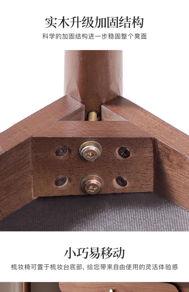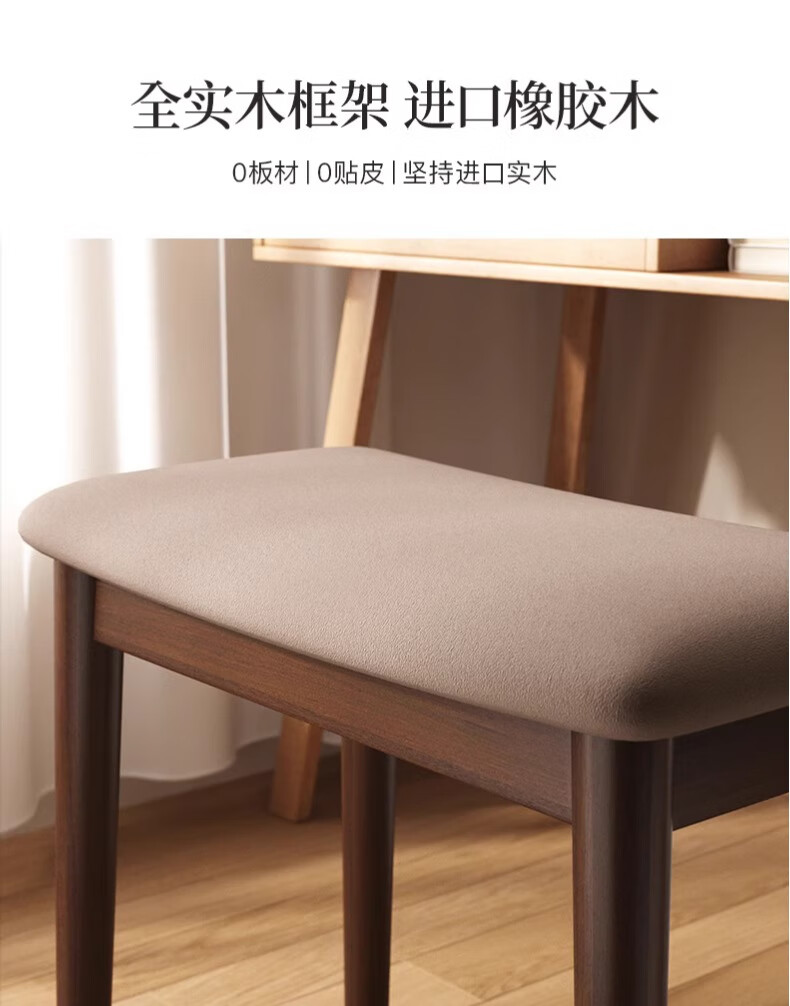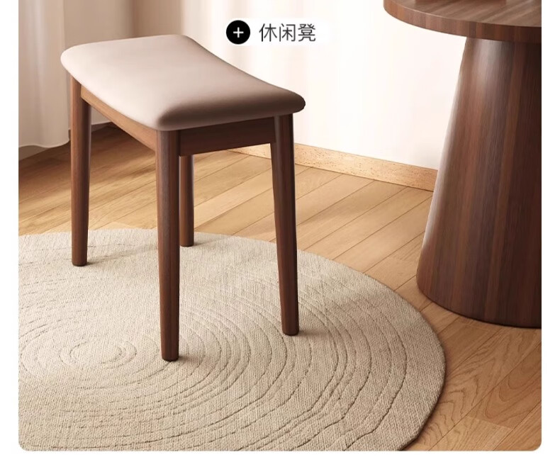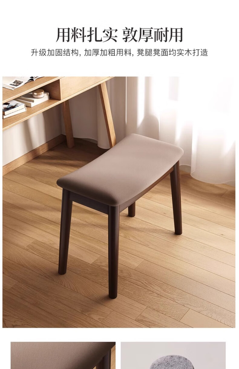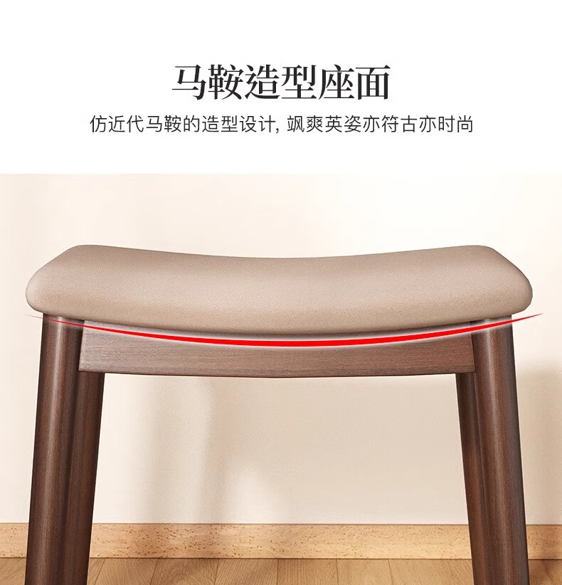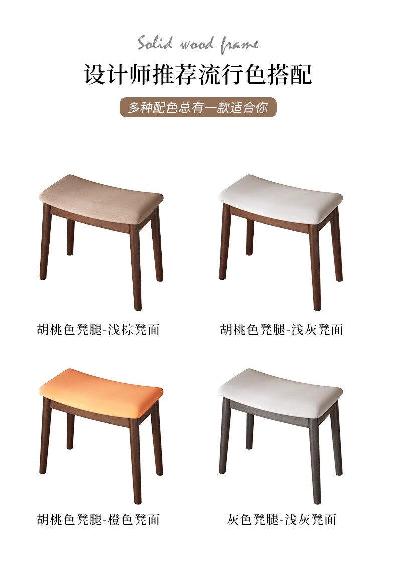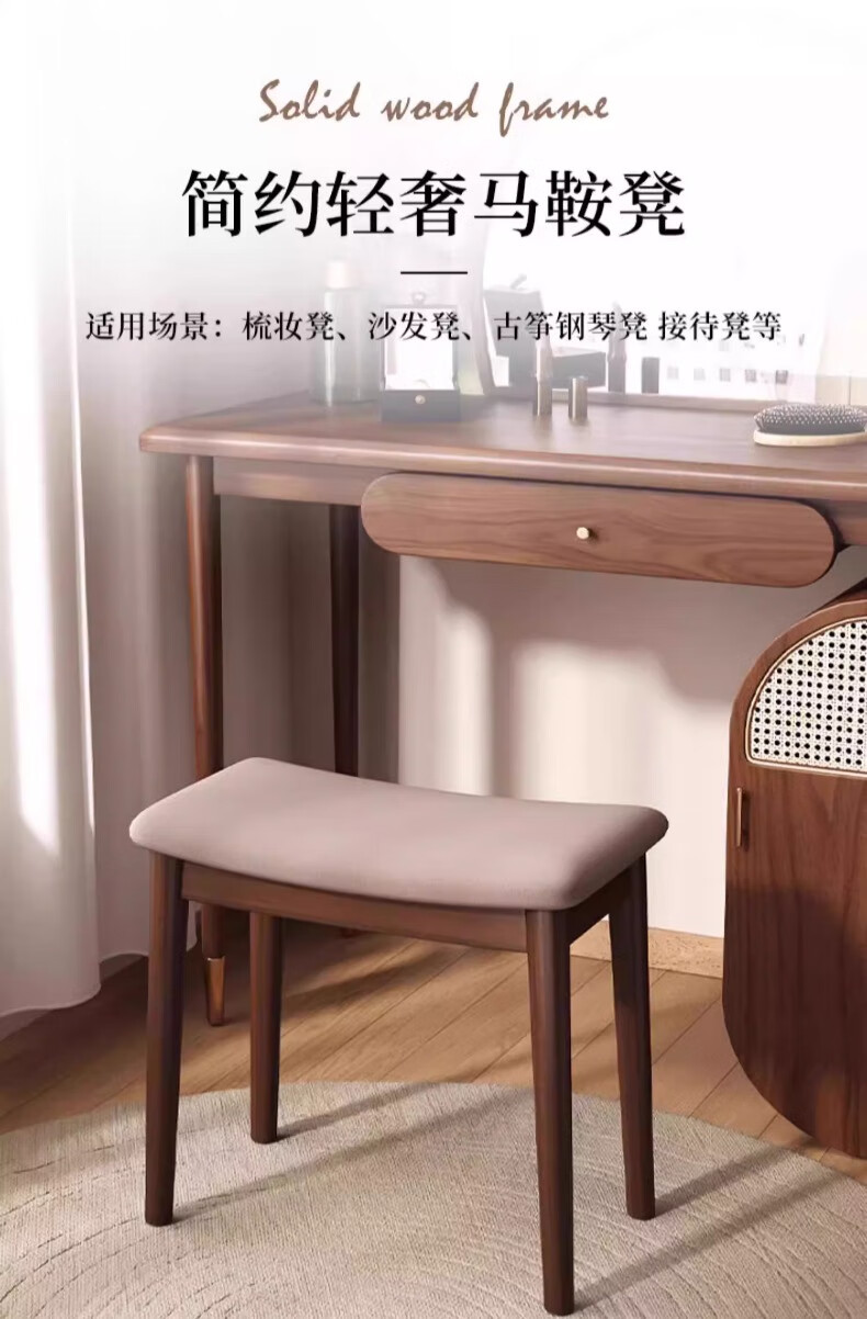 Solid wood makeup stool saddle stool light luxury high-end girls bedroom dressing table stool chair home reinforced H-shaped walnut stool legs + brown stool surface fast delivery