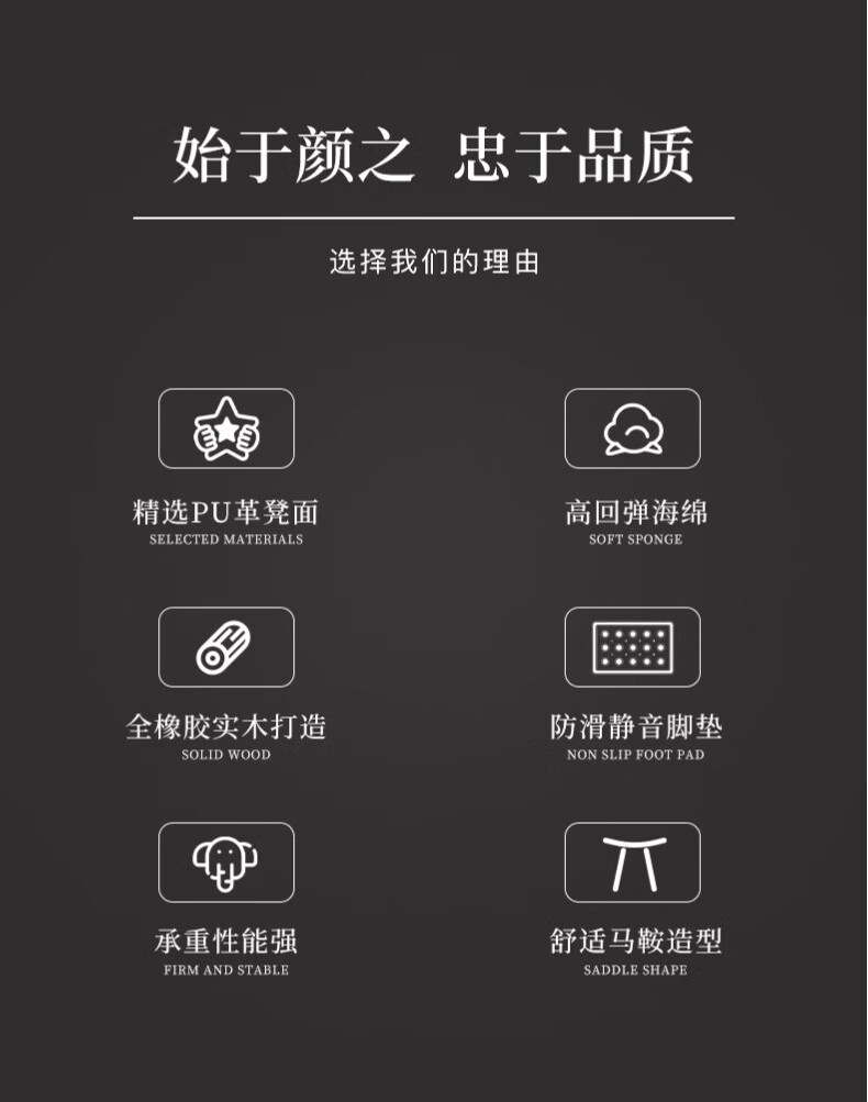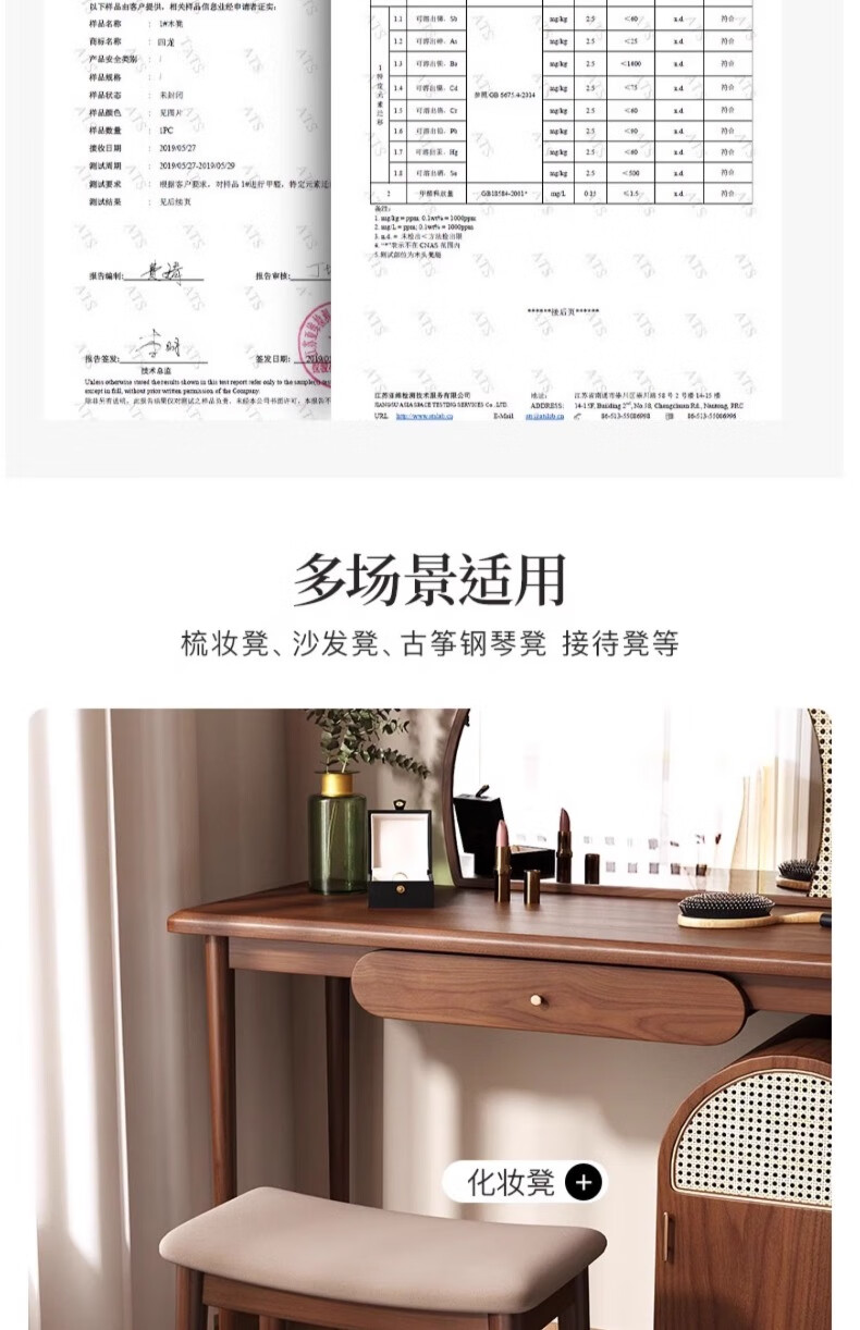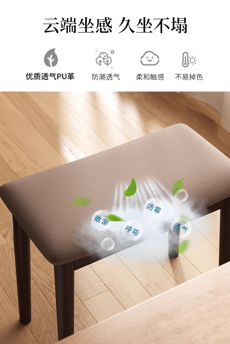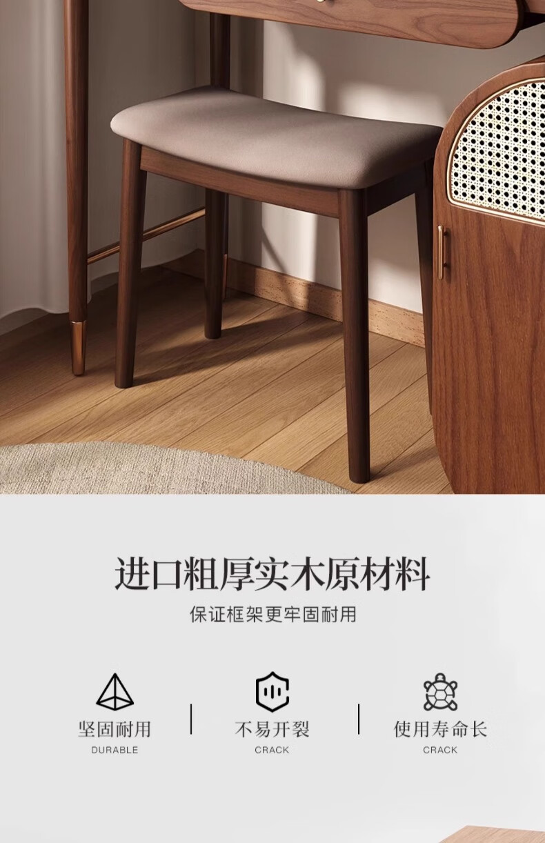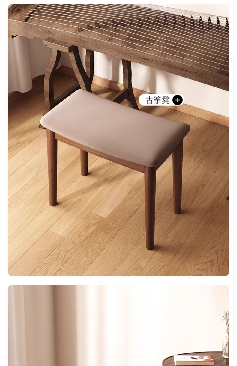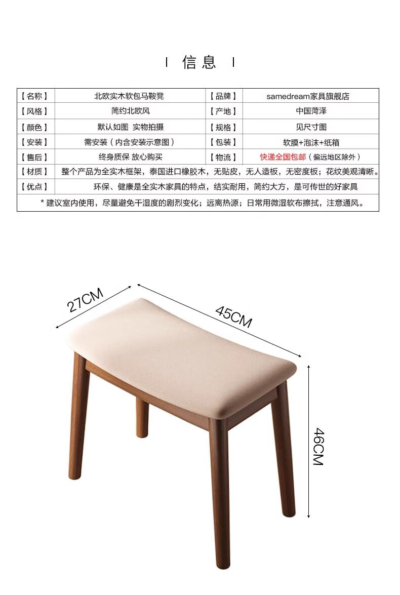 Solid wood makeup stool saddle stool light luxury high-end girls bedroom dressing table stool chair home reinforced H-shaped walnut stool legs + brown stool surface fast delivery