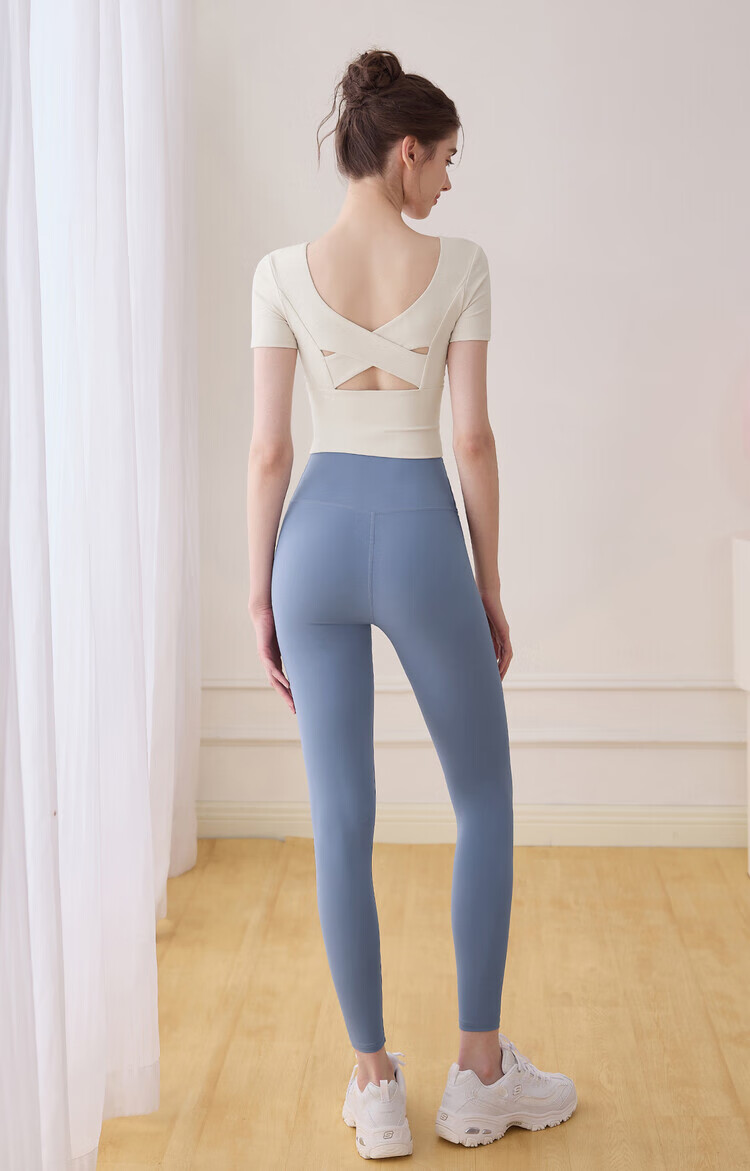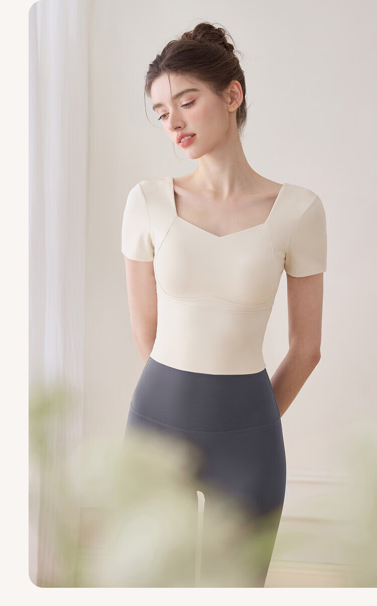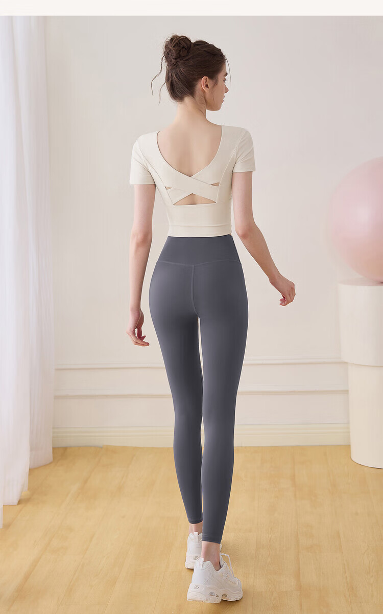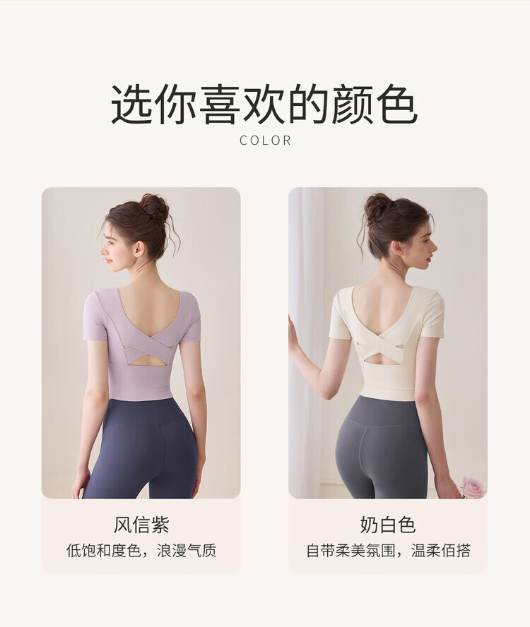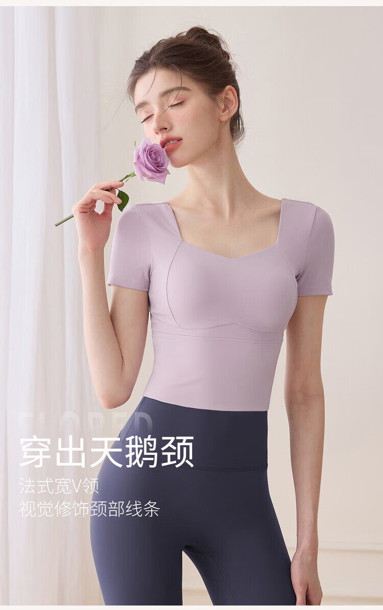 Yoga wear women's suit 2025 new high-end sense with chest pad all-in-one Pilates good-looking fitness summer short-sleeved Fengxin purple short-sleeved + blue-gray cropped pants S