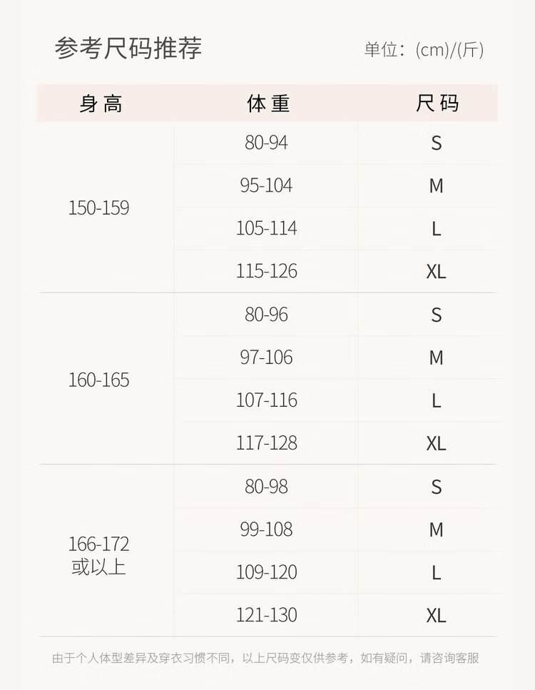 China (cm) 160-165/84-86 165-170 / 88-90 167-172 / 92-96 168-173 / 98-102 170-176 / 106-110