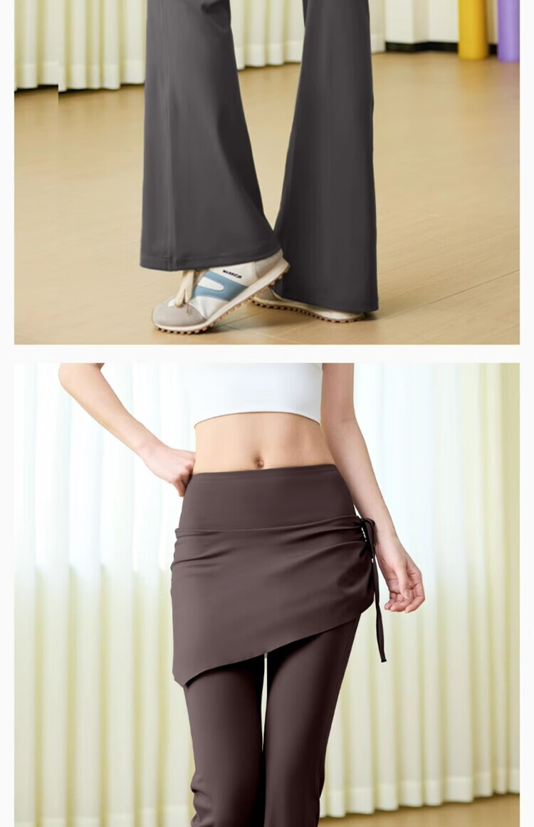 Yoga Pants Women's High Waist Butt Lift 2025 New Wrinkled Flare Skirts Fake Two-Piece Mild Pilates Training Wear Summer Espresso High Waist Butt Lift S Recommendation 80-95Jin Jin equals 0.5 kg