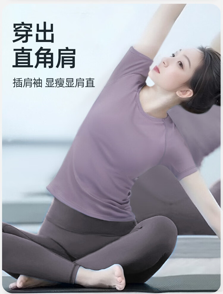 Yoga wear for women 2025 new top short-sleeved beautiful Pilates training running outer sports suit fitness women healing blue top + dove gray pants suit M 100-110