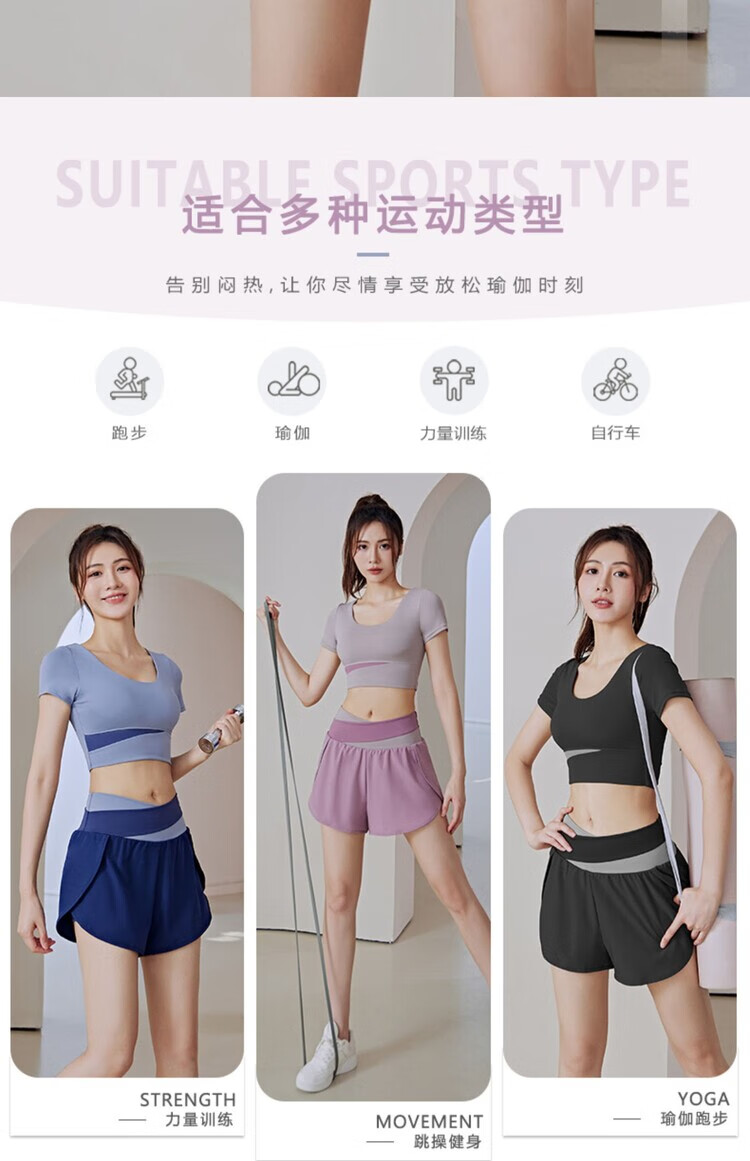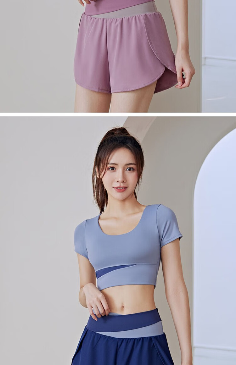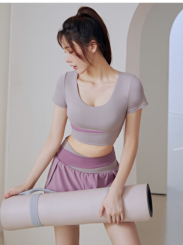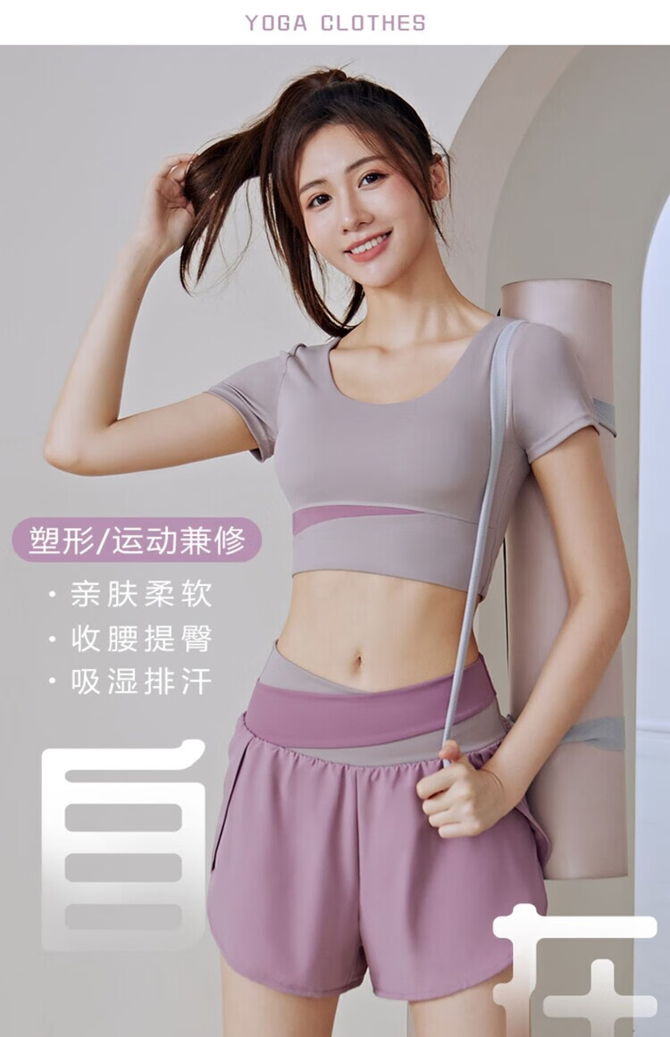 Yoga wear for women 2025 new summer style professional Pilates training morning running large size fitness suit sports top short-sleeved suit milk purple + berry purple S recommended 80-95Jin Jin equals 0.5 kg