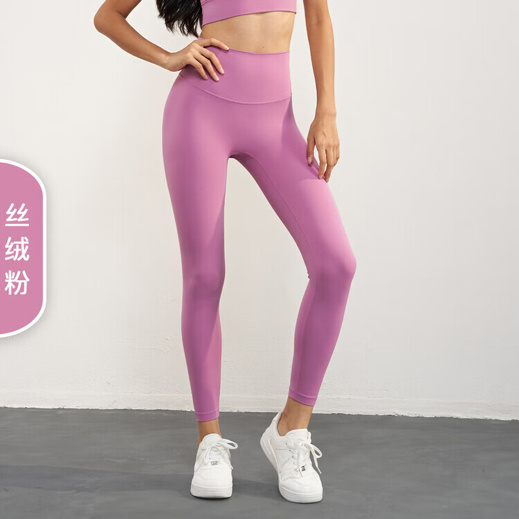 LuluIemon Yoga Pants Sports Fitness Pants No Embarrassing Line Tight Peach Butt Raise High Waist Nude Pilates Velvet Pink Yoga Pants M