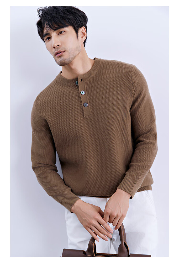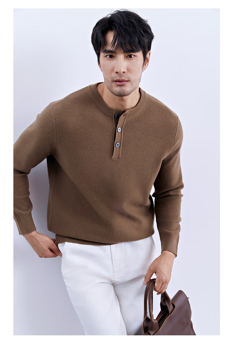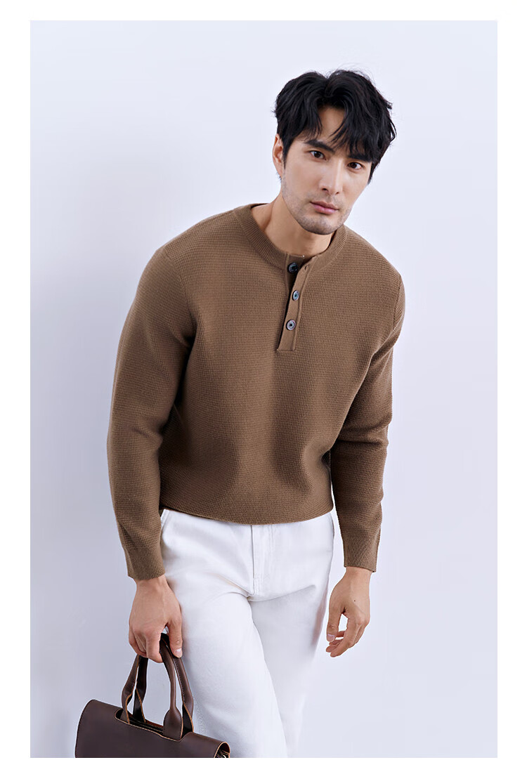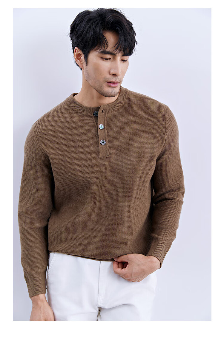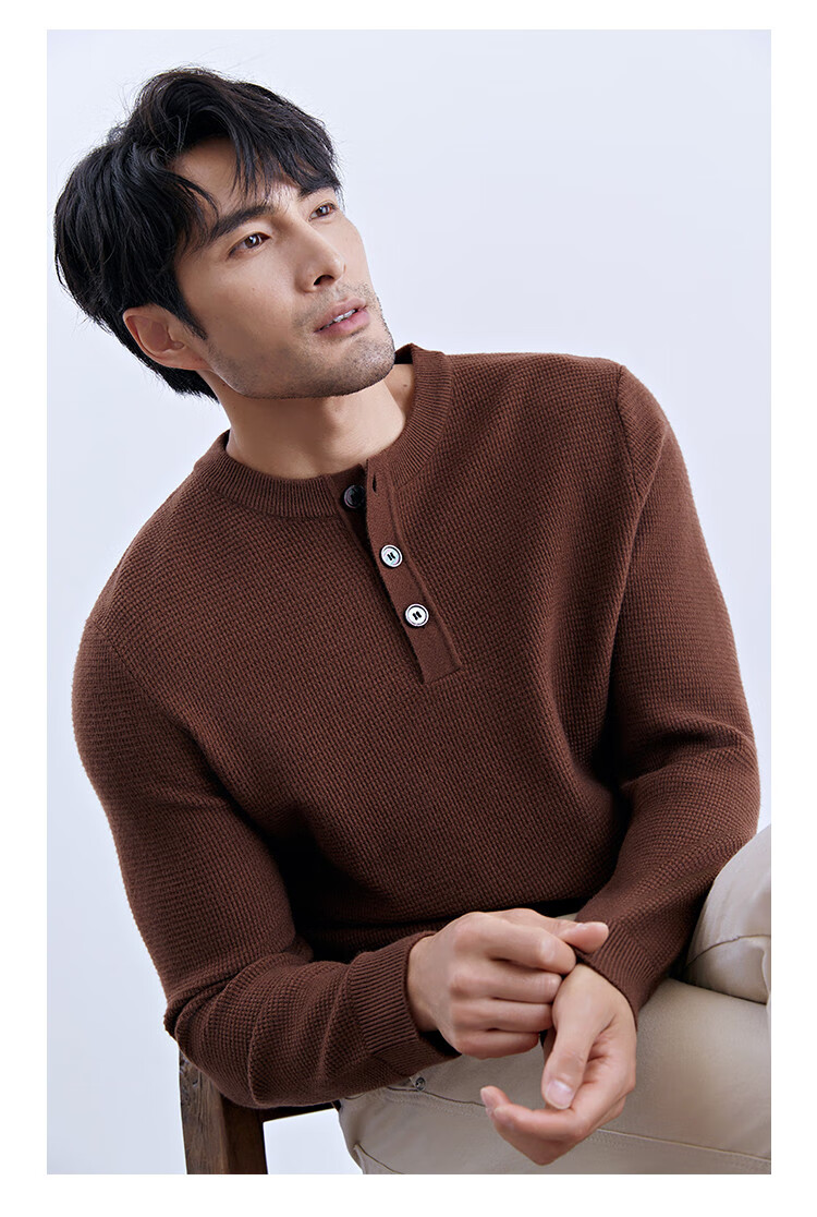Autumn and winter warm and high-end Henry collar wool knitted bottoming shirt men's business casual pullover low-neck sweater for men earth brown M