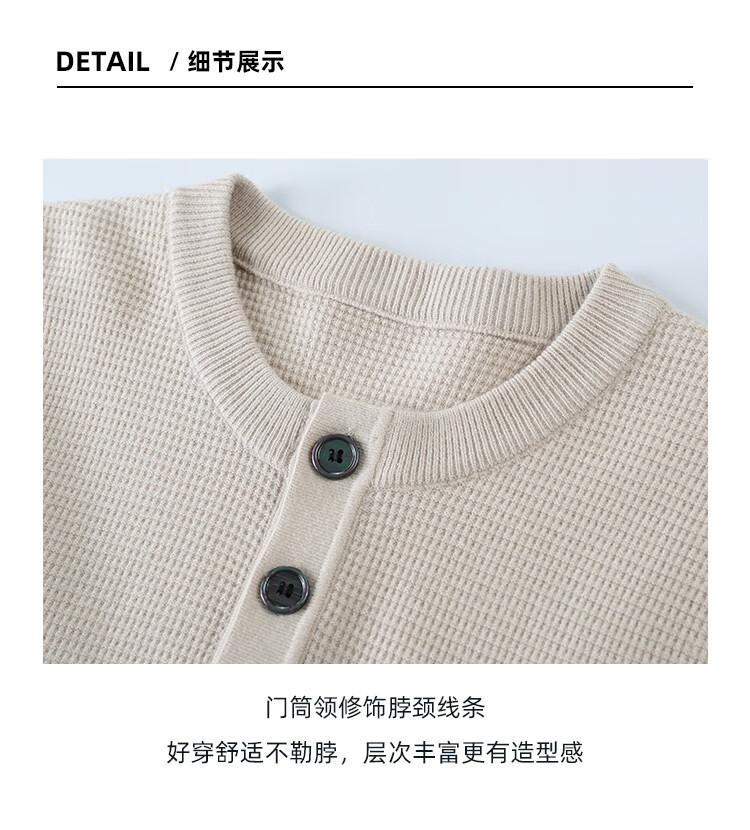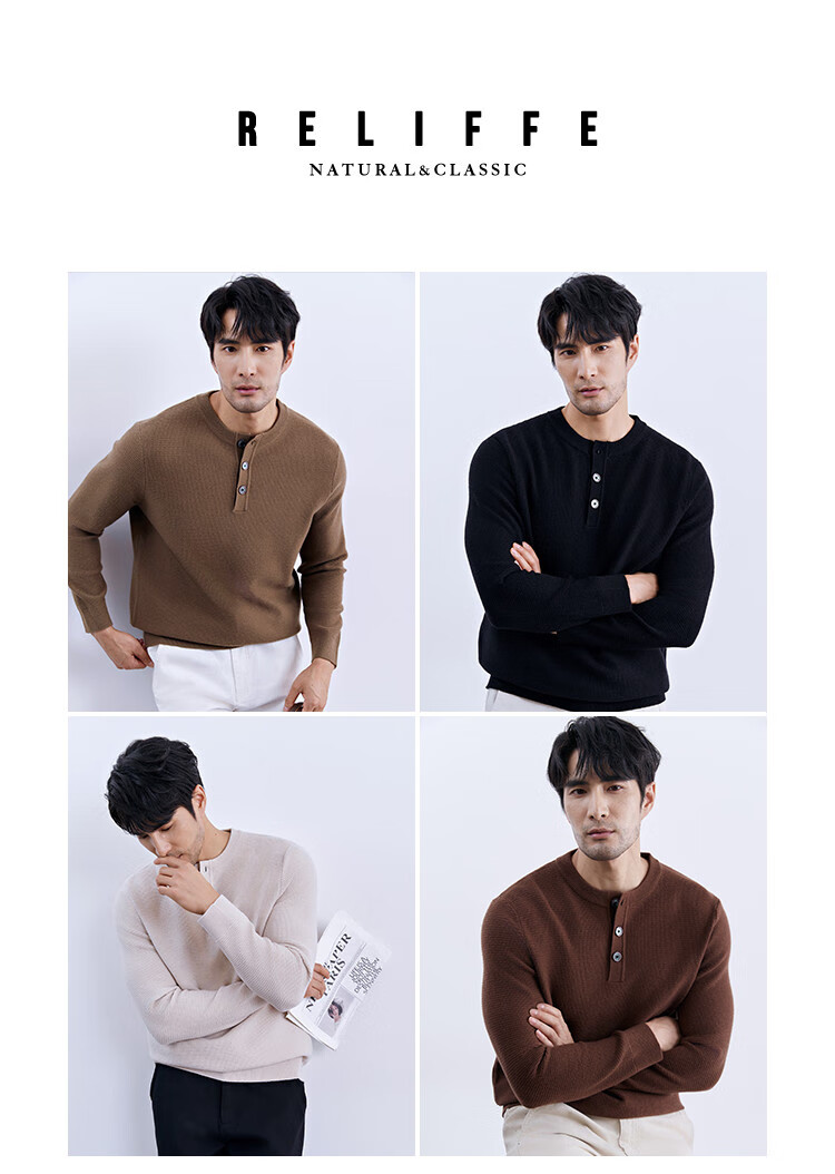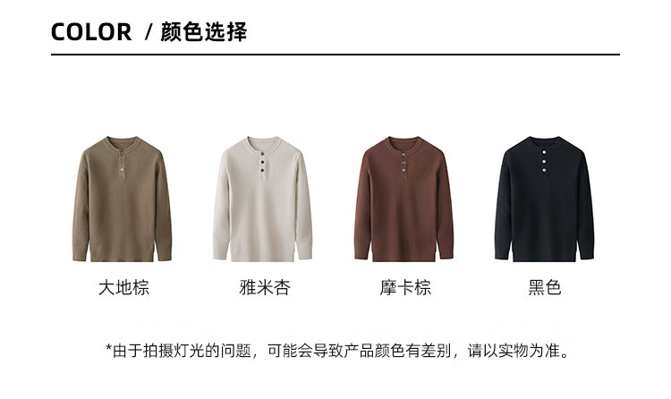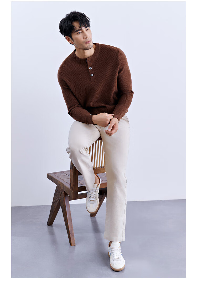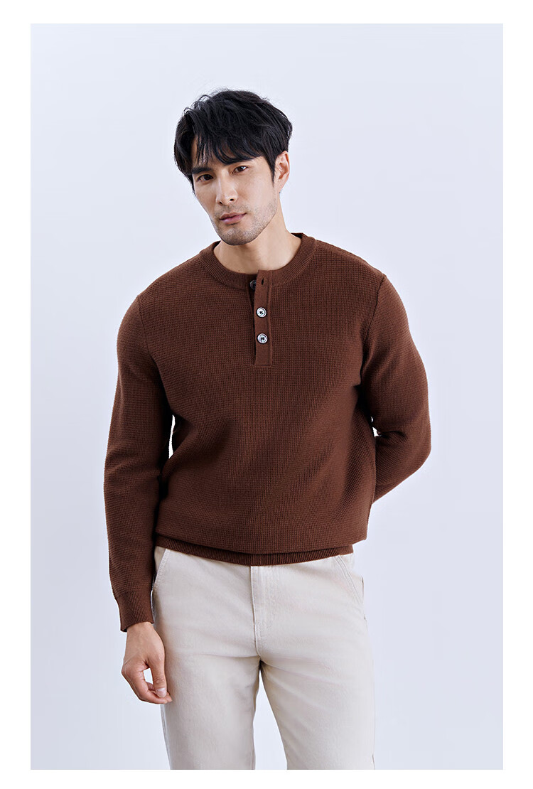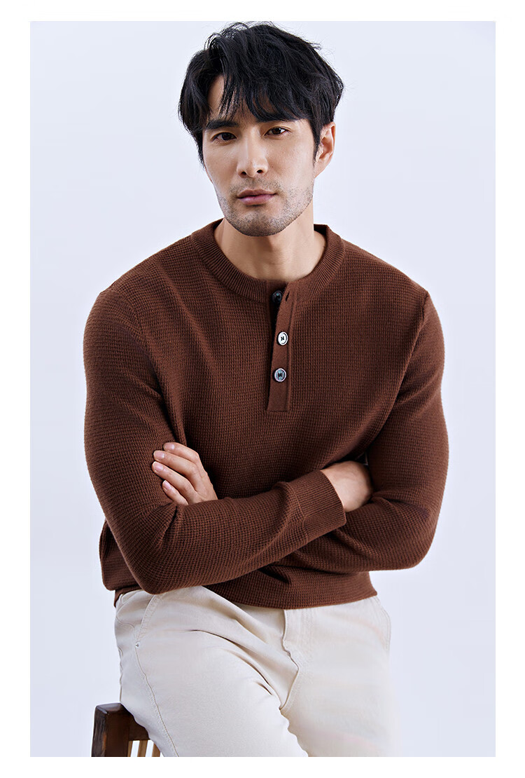 Autumn and winter warm and high-end Henry collar wool knitted bottoming shirt men's business casual pullover low-neck sweater for men earth brown M