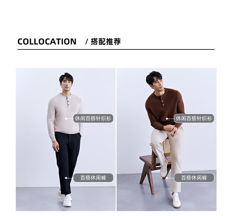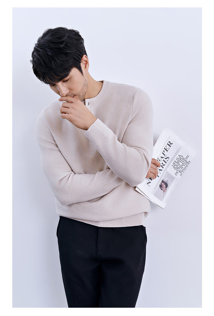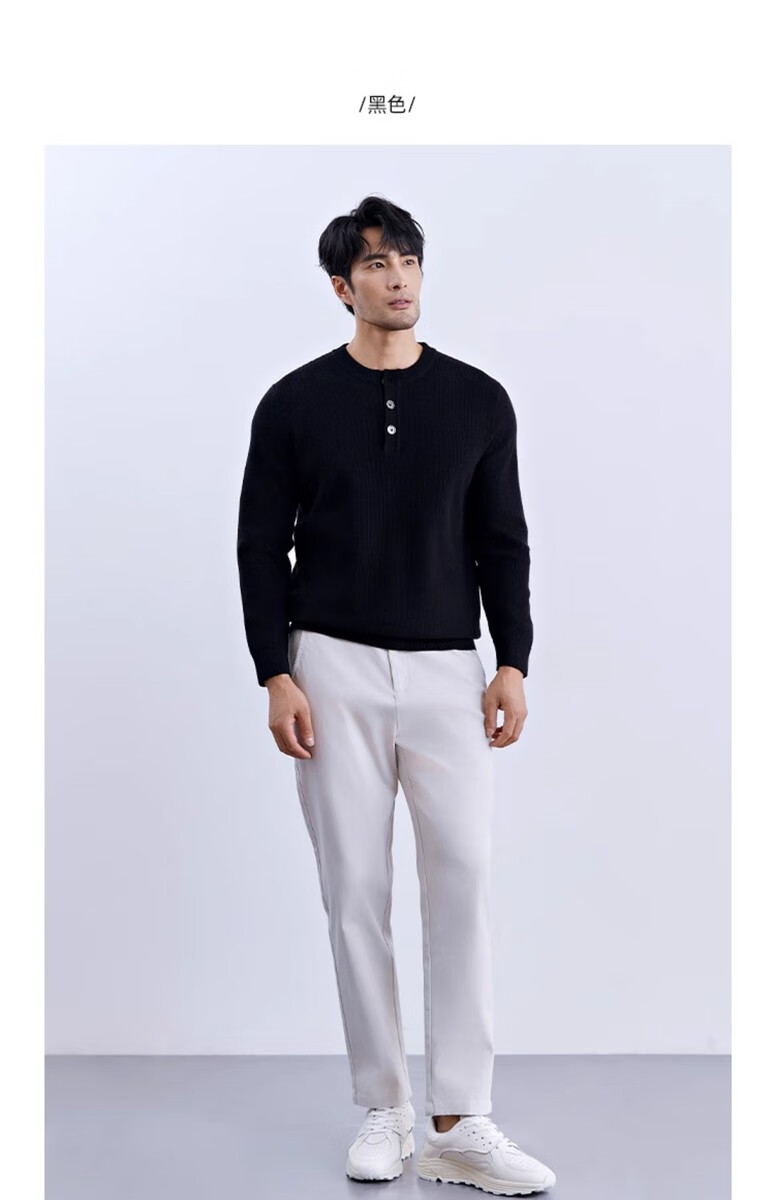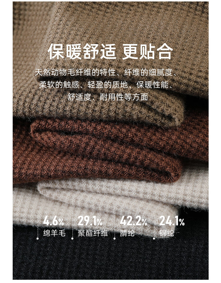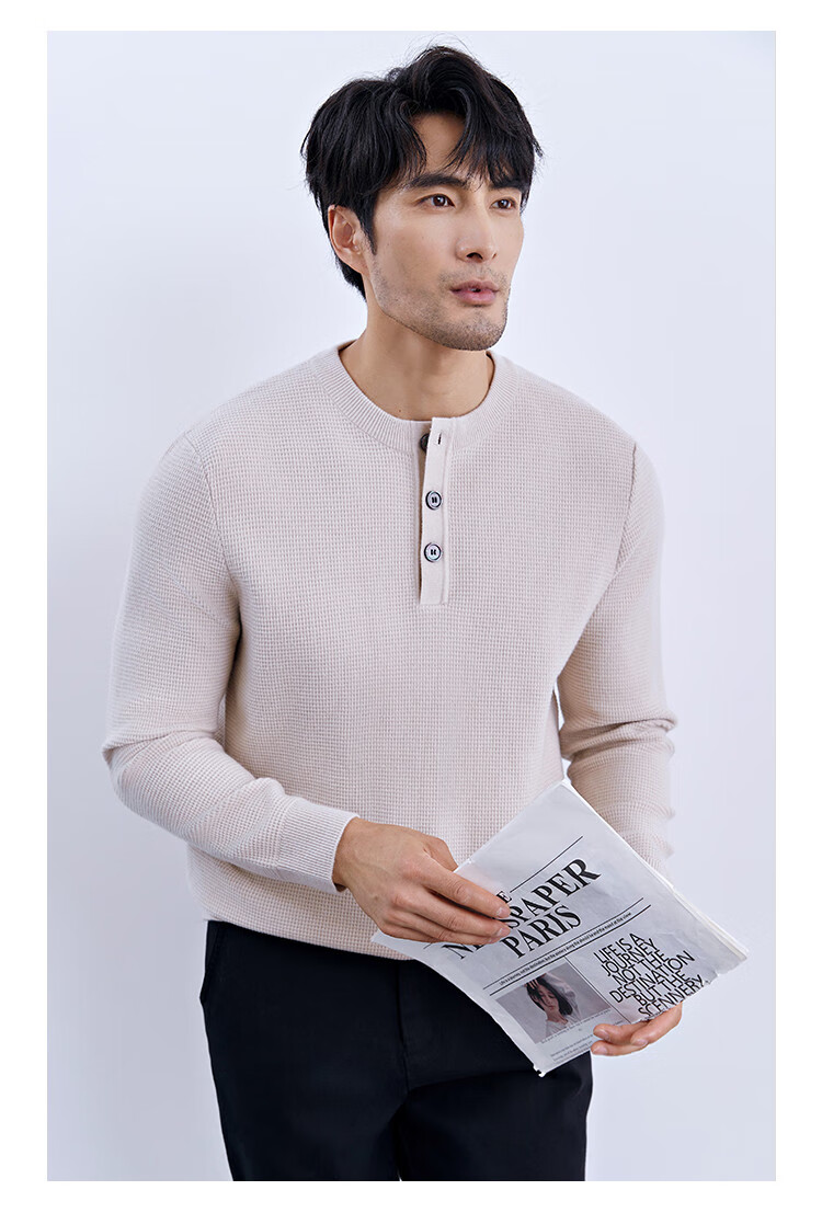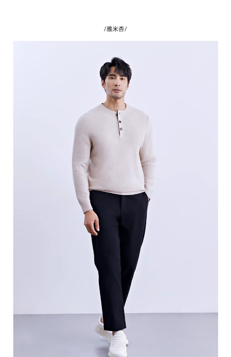 Autumn and winter warm and high-end Henry collar wool knitted bottoming shirt men's business casual pullover low-neck sweater for men earth brown M