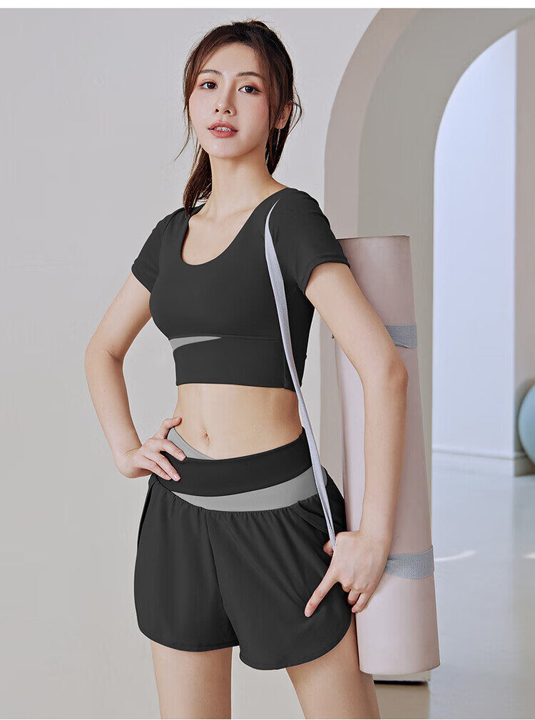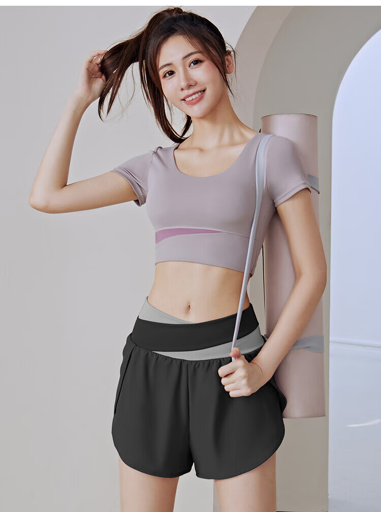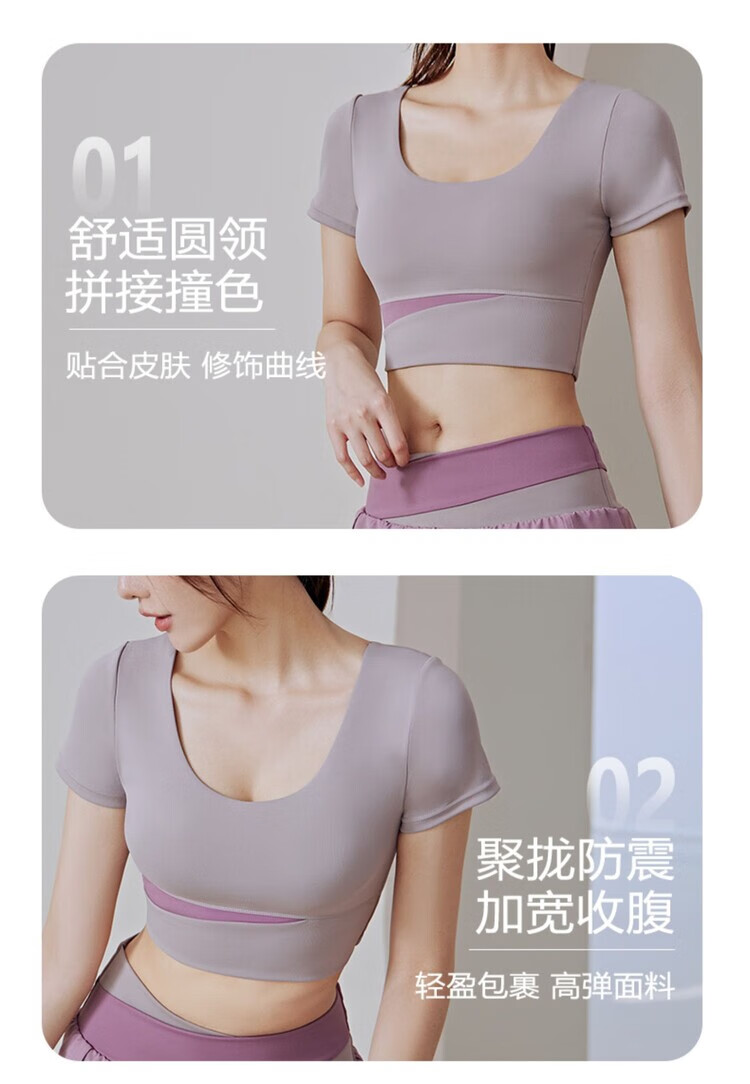 Yoga wear for women 2025 new summer style professional Pilates training morning running large size fitness suit sports top short-sleeved suit milk purple + berry purple M recommended 95-105 Jin Jin equals 0.5 kg
