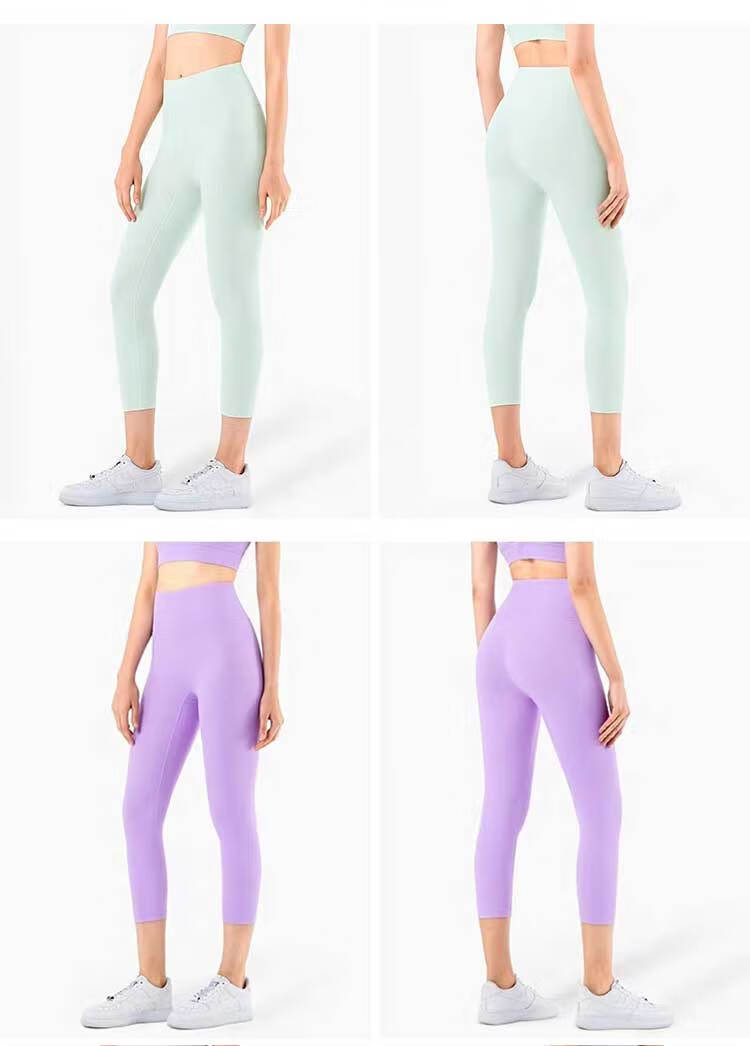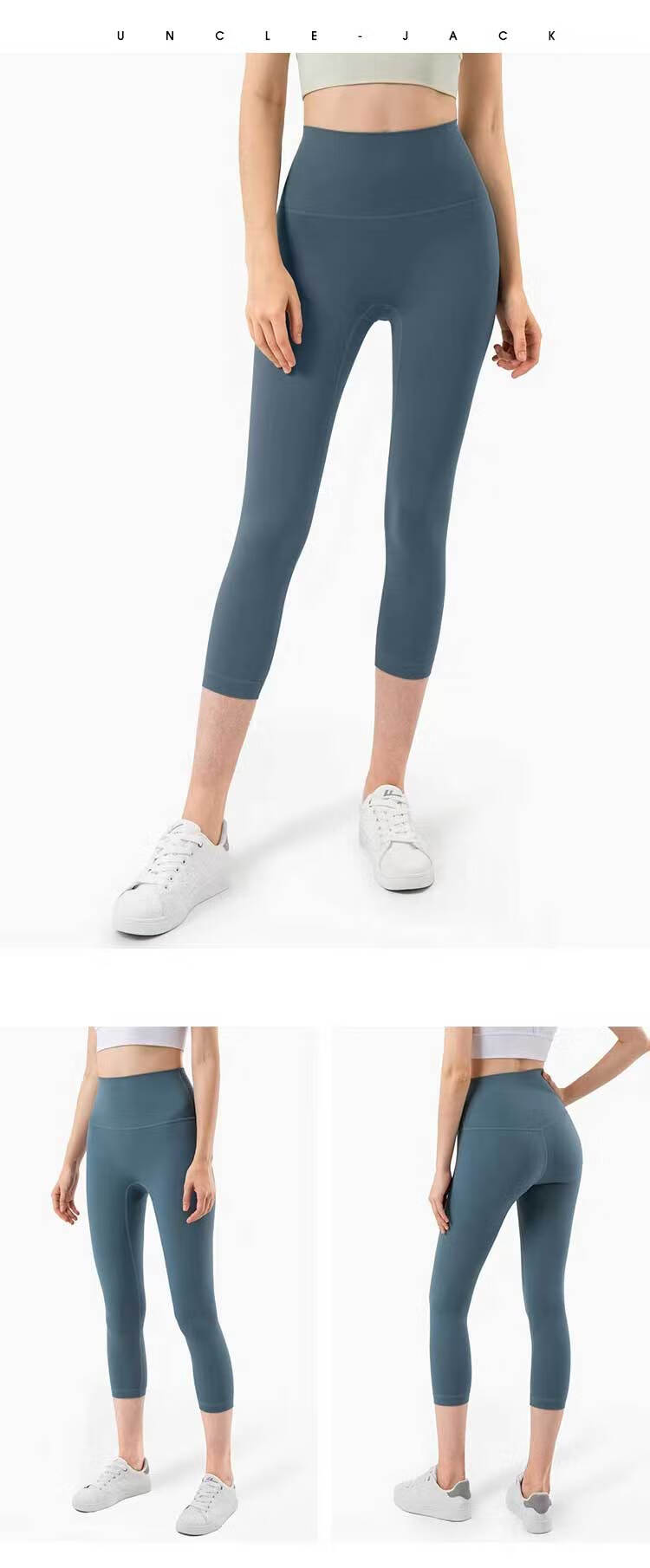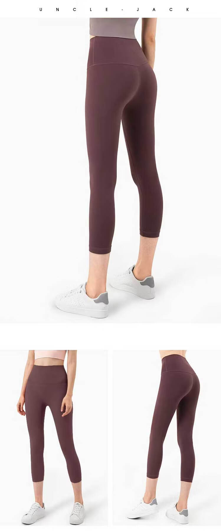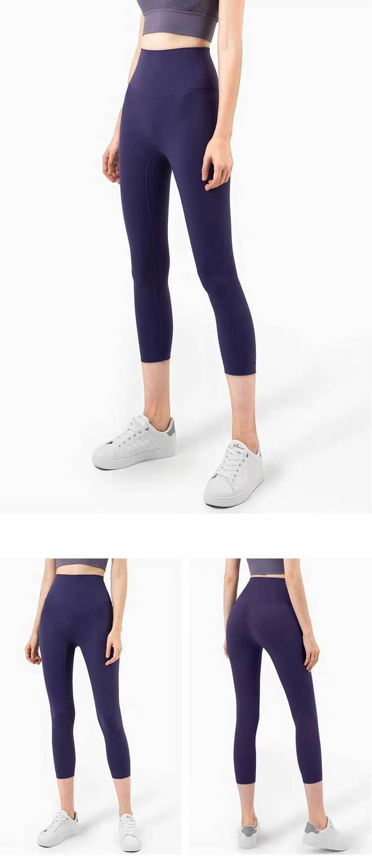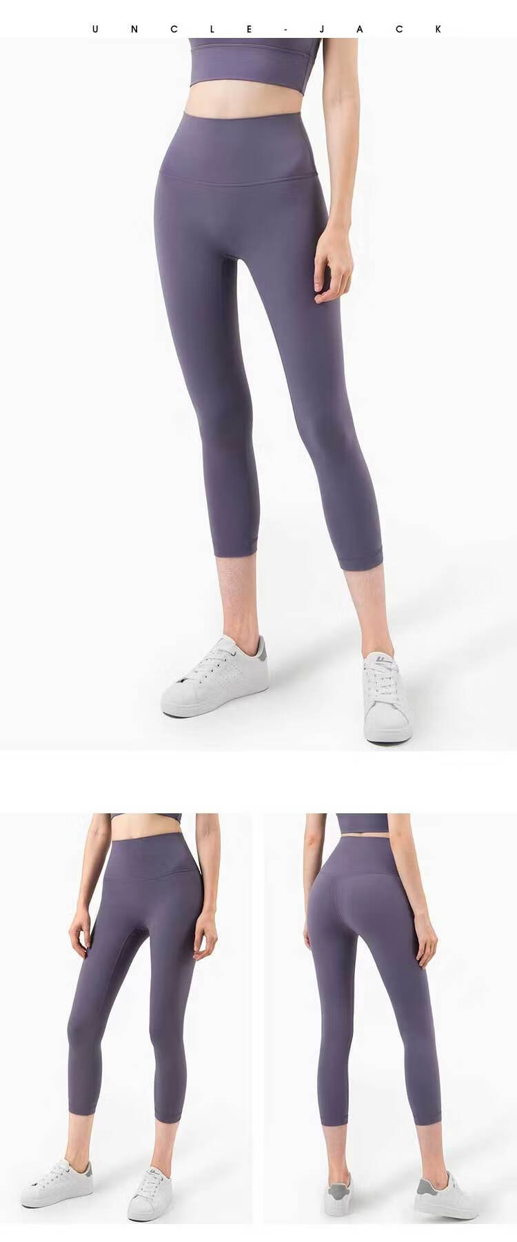 American Yoga Cropped Pants Quick-drying Nude Peach Hip High Waist Stretch Bottom Cycling Pants Pilates Fitness Pants Women Purple Gray (Cropped Pants) M /6 Size 101-115Jin Jin is equal to 0.5 kg