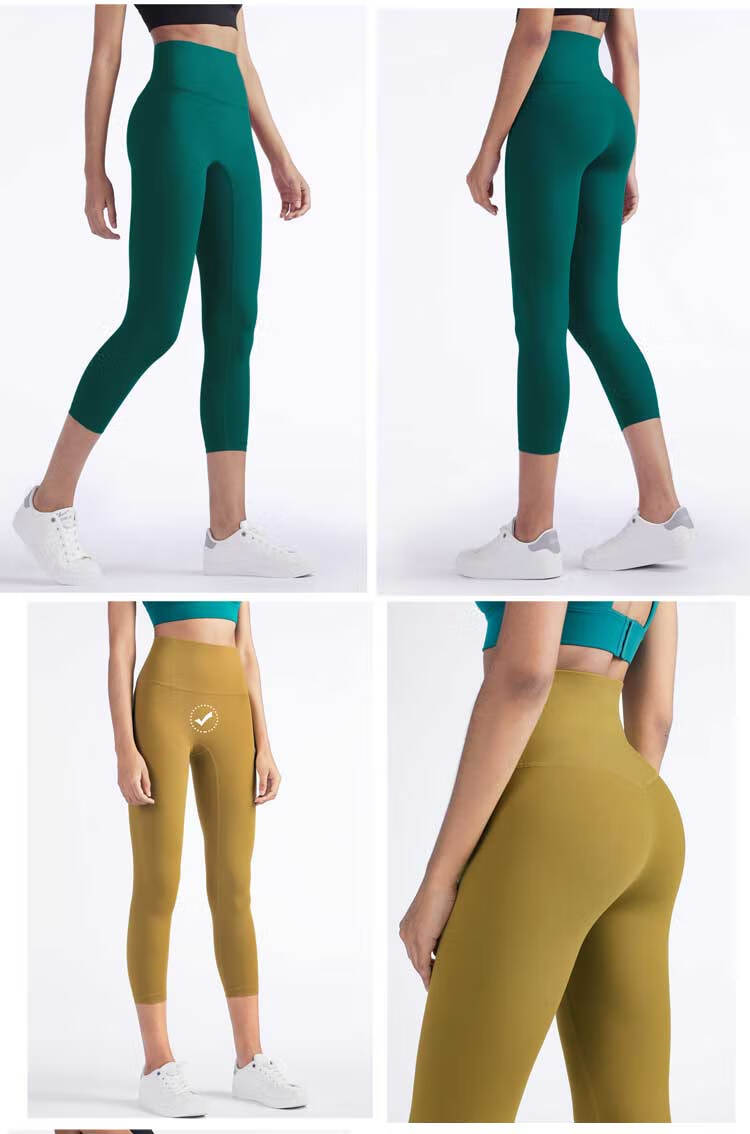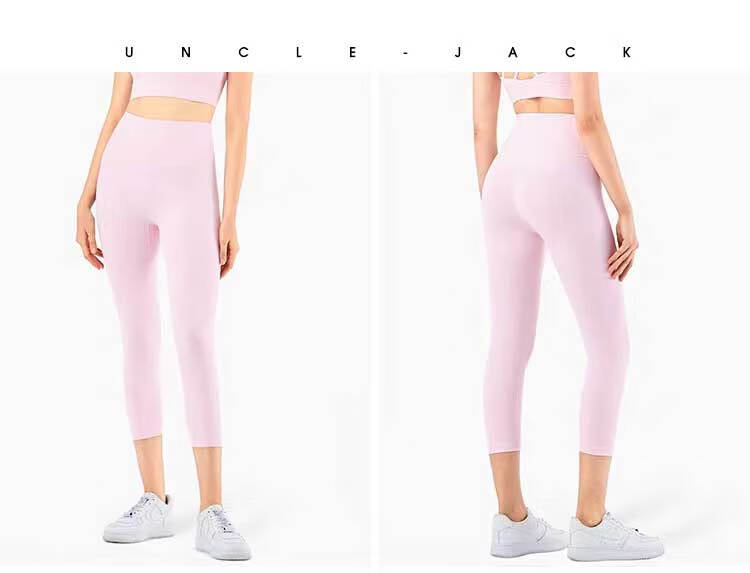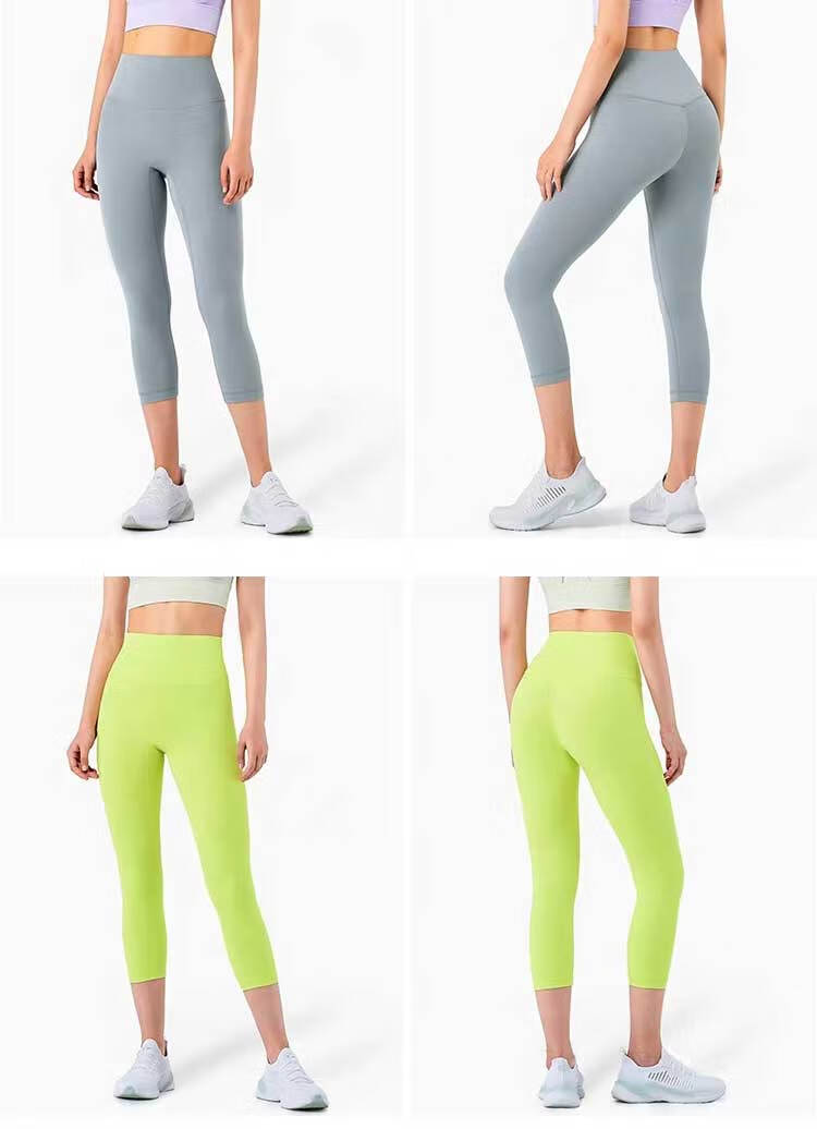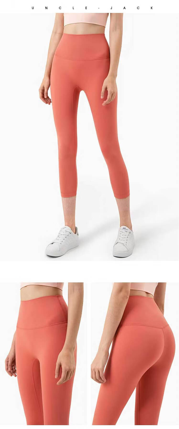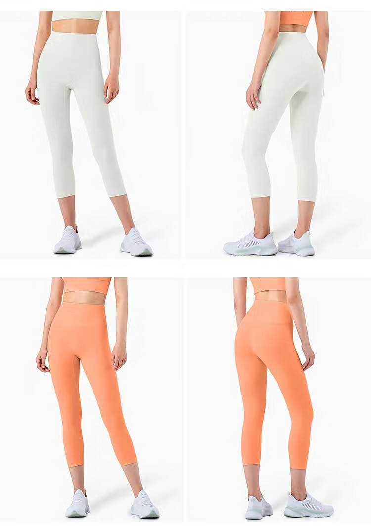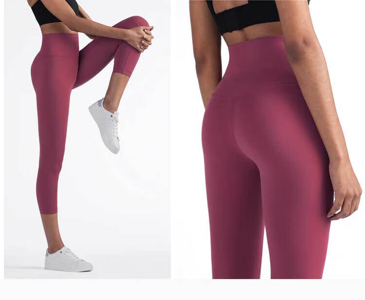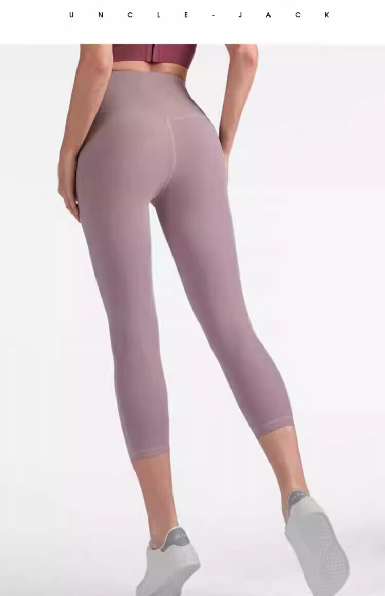 American Yoga Cropped Pants Quick-drying Nude Peach Hip High Waist Stretch Bottom Cycling Pants Pilates Fitness Pants Women Purple Gray (Cropped Pants) M /6 Size 101-115Jin Jin is equal to 0.5 kg